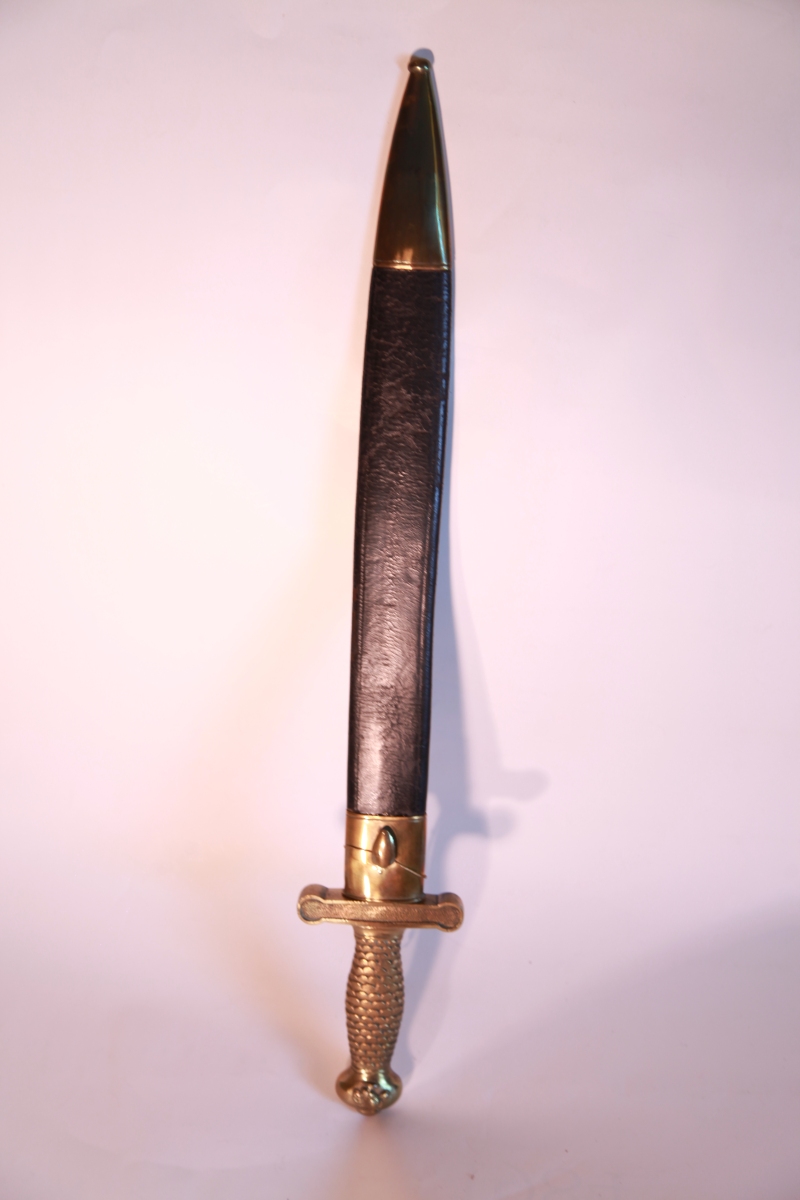 GLAIVE d'Artilleur. Garde au coq et écailles. Fourreau cuir et laiton. Modèle 1831.