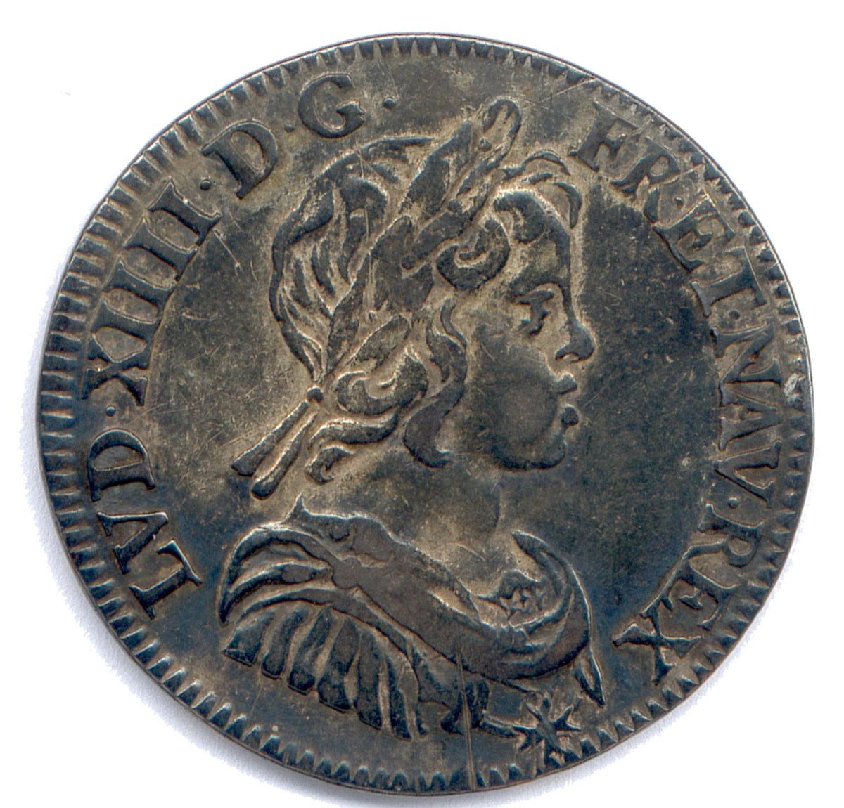Quart décu dargent à la mèche courte 1644 A = Paris (Point). T.B.
