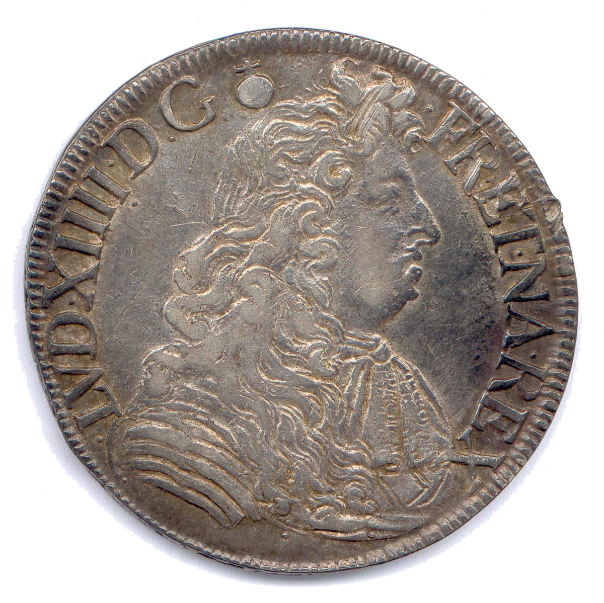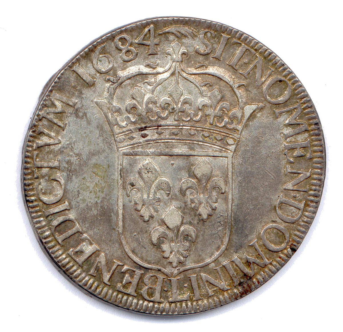 Ecu dargent du Parlement dit à la Cravate 1684 (globe crucigère/palmette) L = Bayonne.