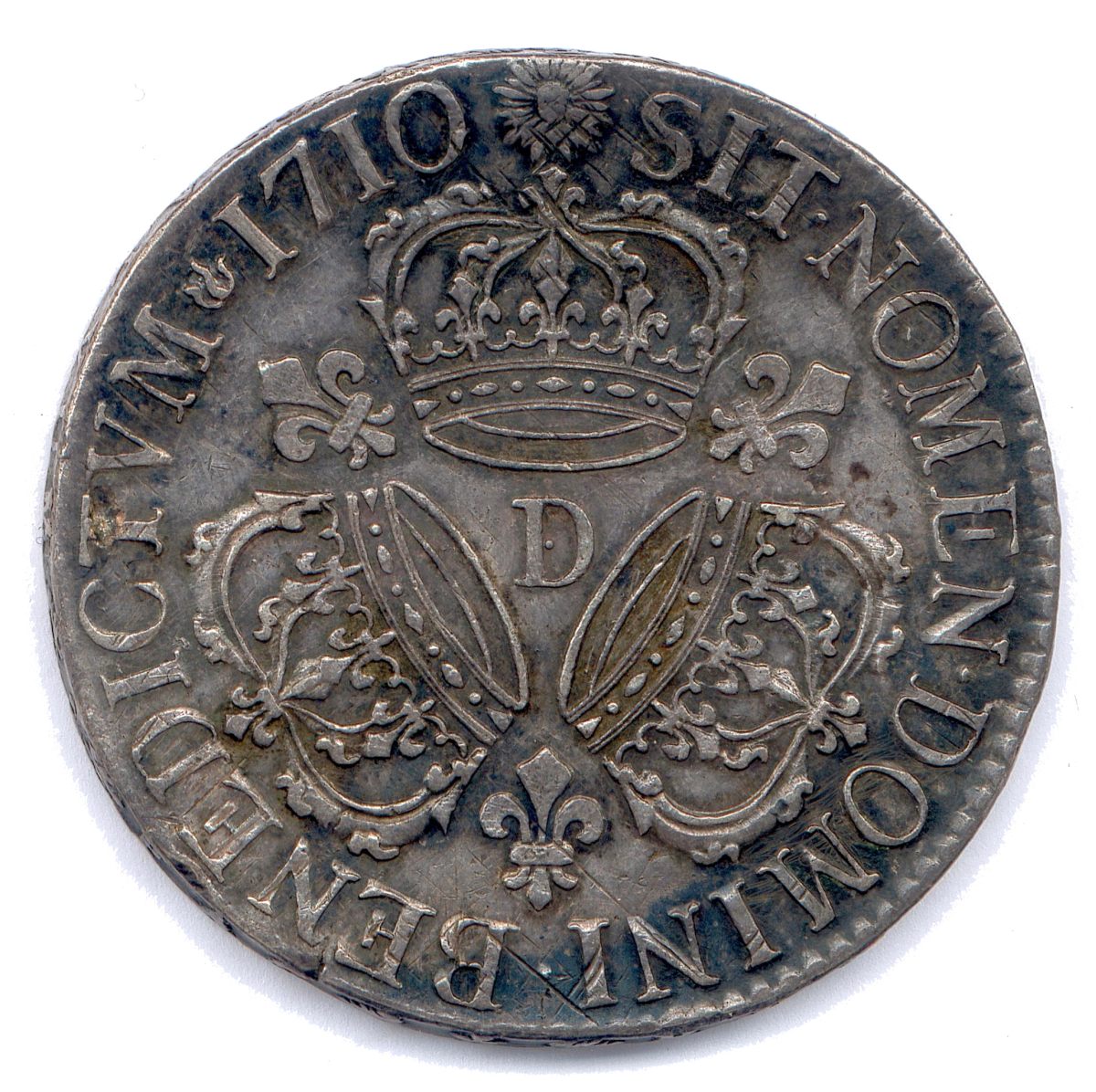 Ecu dargent aux trois couronnes (tête daigle/flamme) D = Lyon.