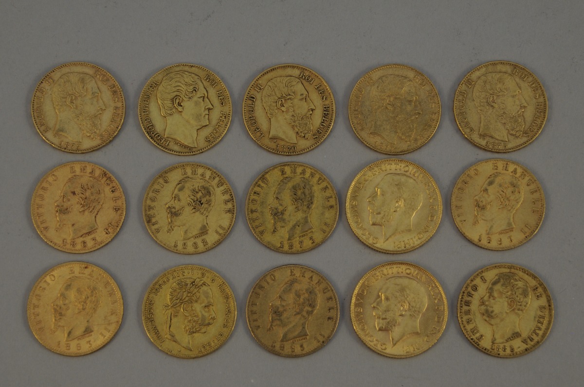 15 MONNAIES or : PIECE LATINE. 20 F. or 7 monnaies - BELGIQUE 20 F. or 5 monnaies - AUTRICHE 20 FL. or 1 monnaie - SOUVERAINS or 2 monnaies Georges V. B.