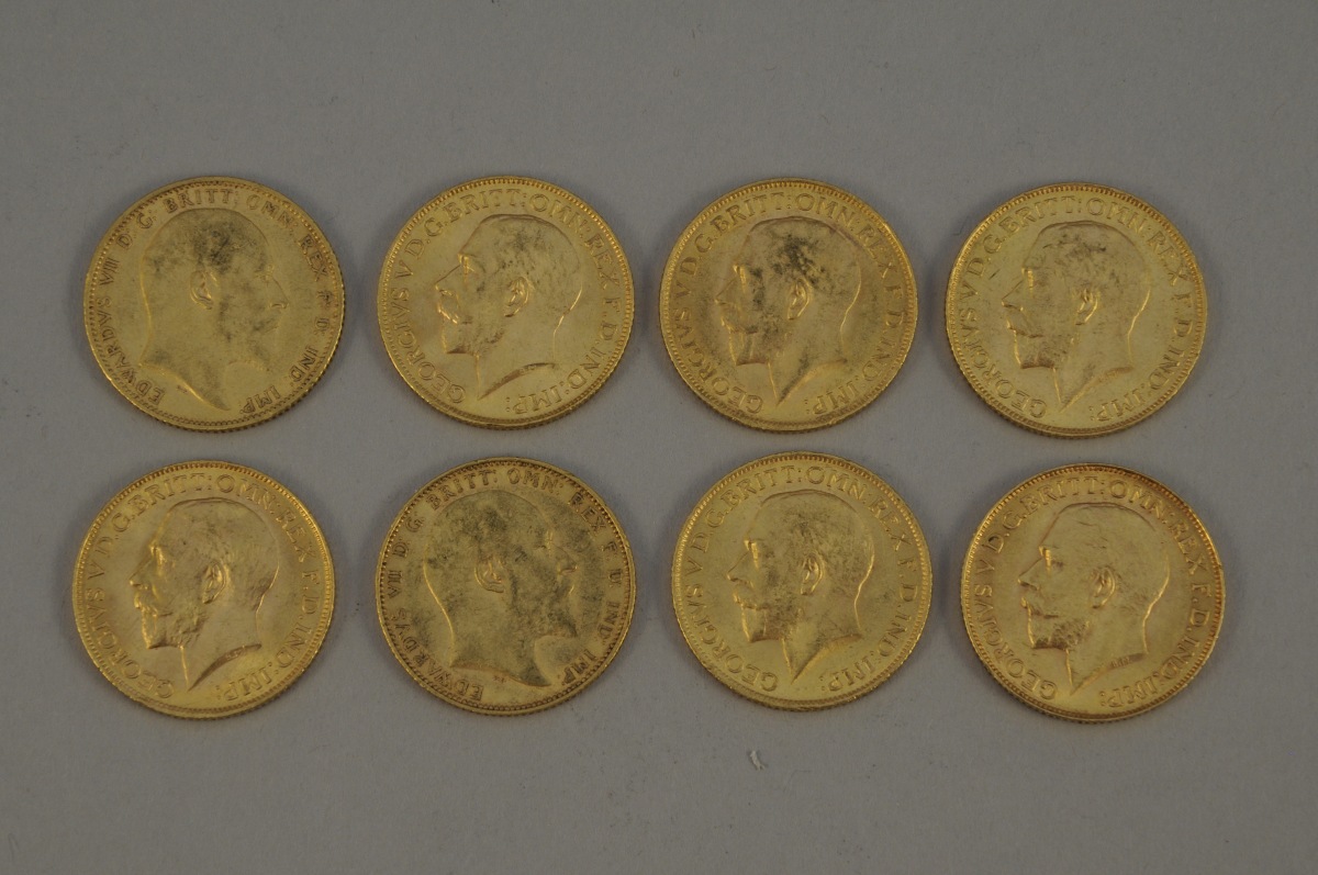 GRANDE BRETAGNE. 8 pièces Souverain or : 2 x 1902, 2 x 1911, 4 x 1912. TTB