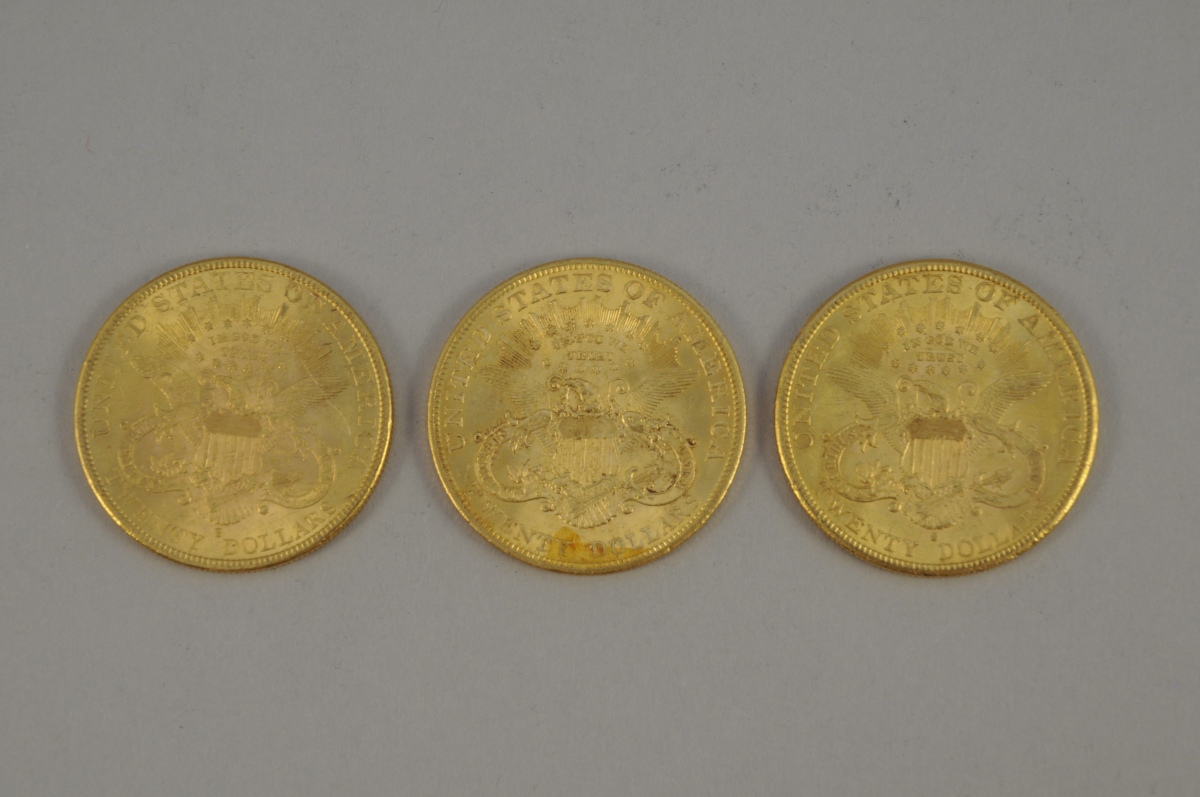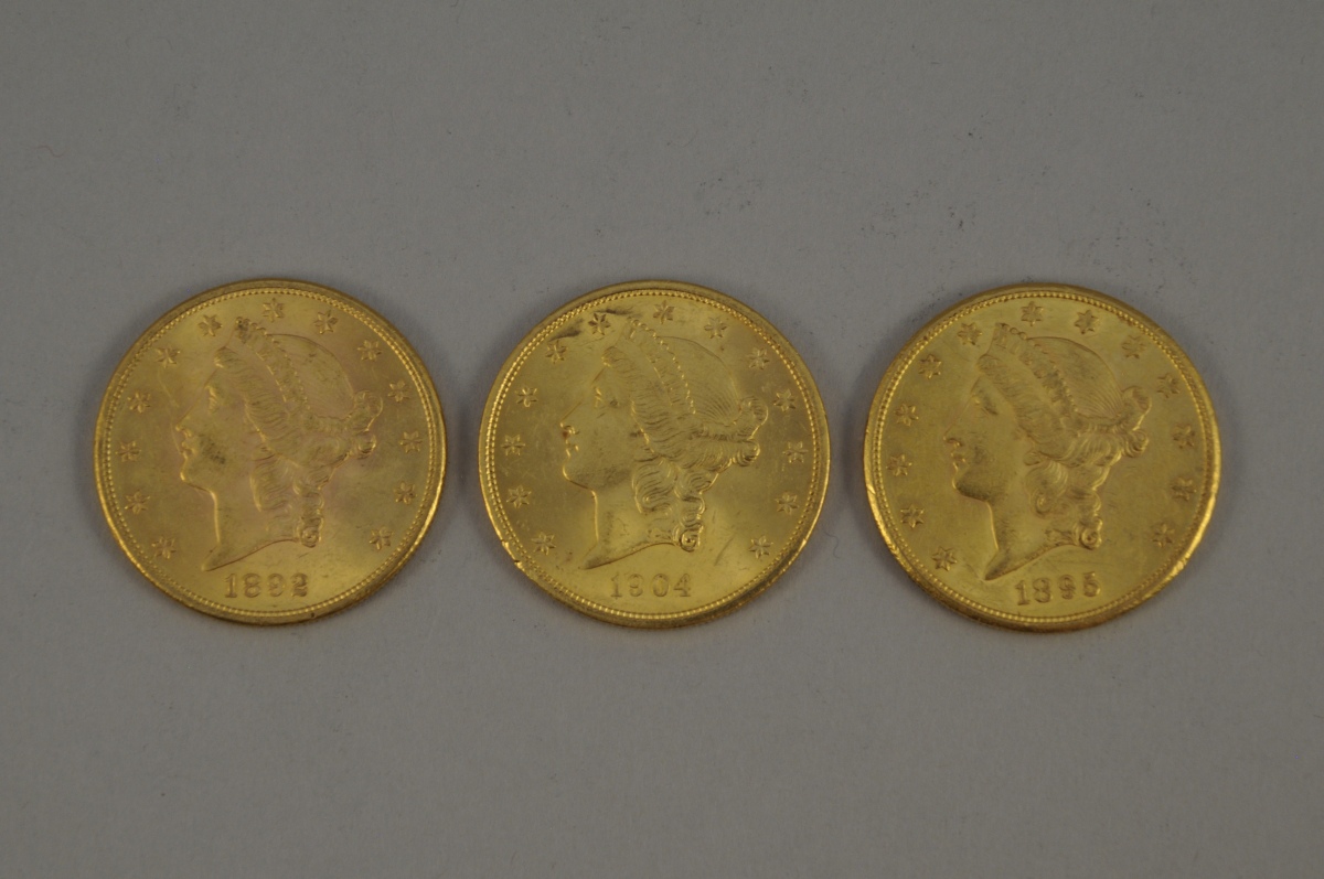 ÉTATS-UNIS. 3 pièces de 20 $ or (1892, 1895, 1904)....