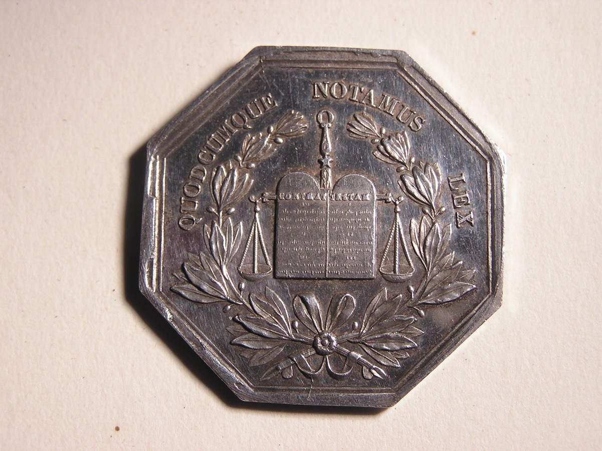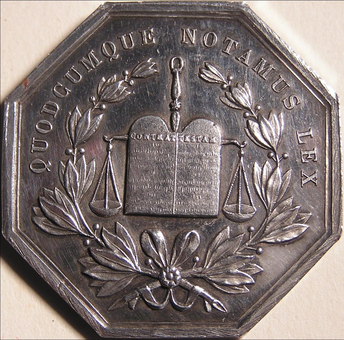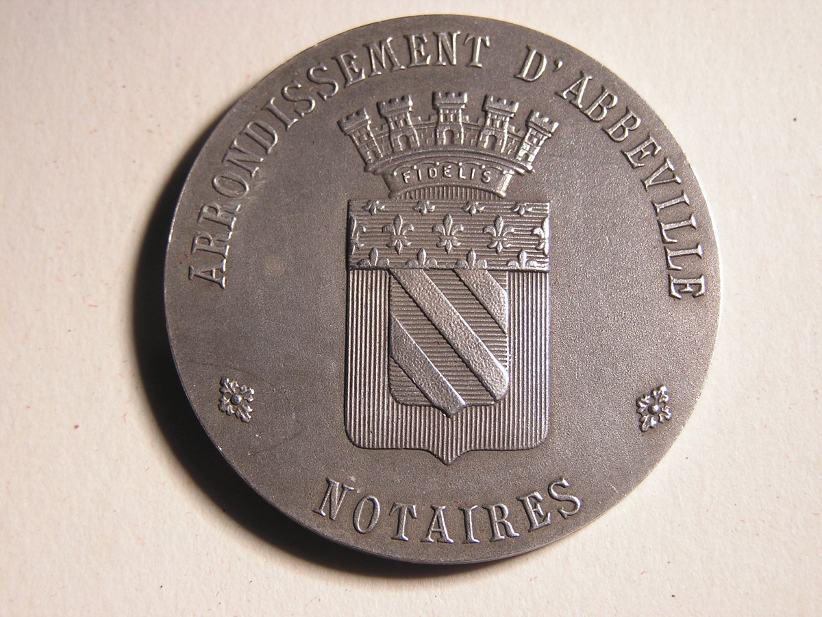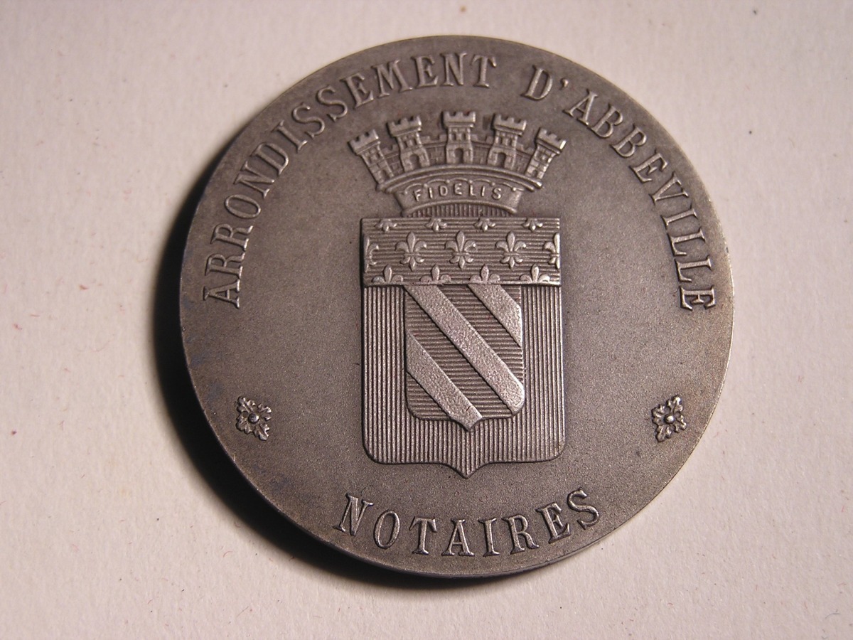 ABBEVILLE. 7 Jetons de notaires en argent, de forme octogonale et circulaire.