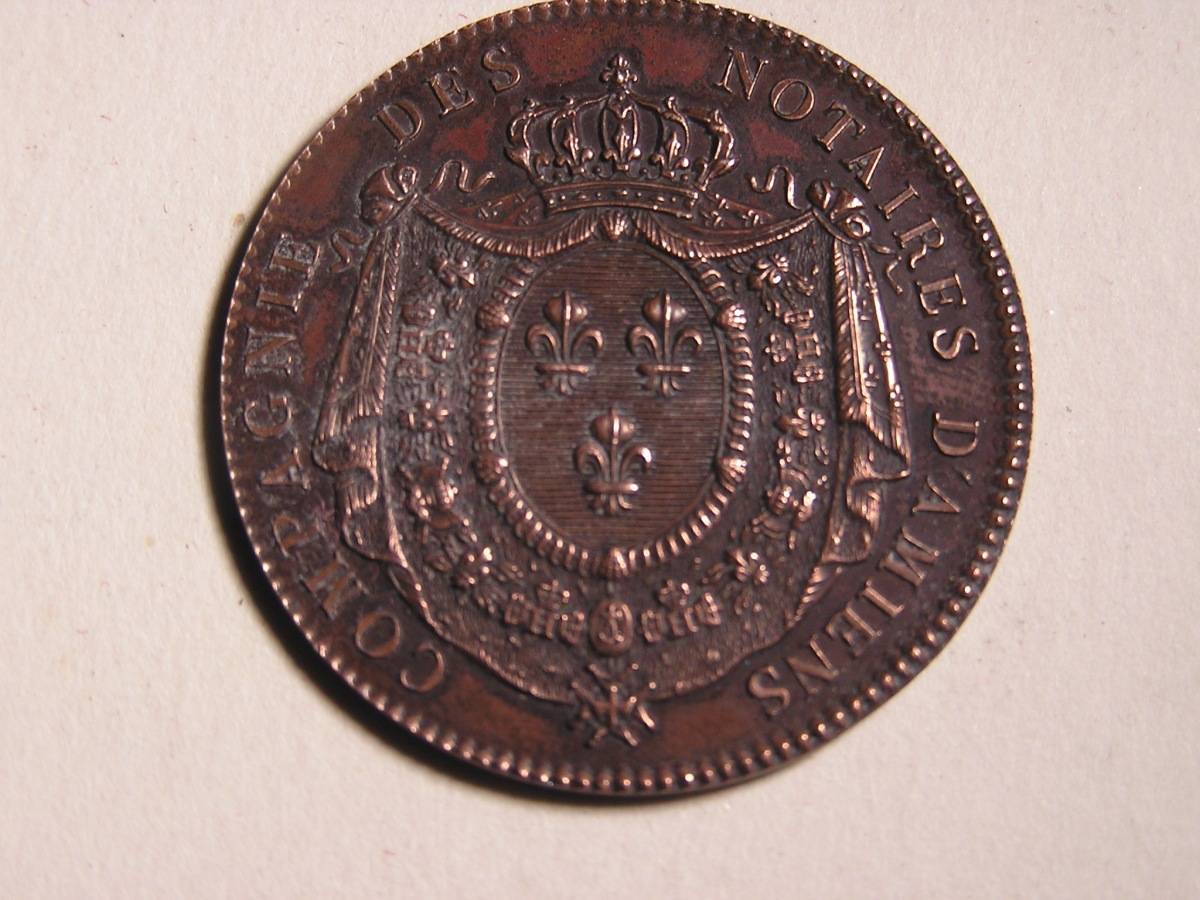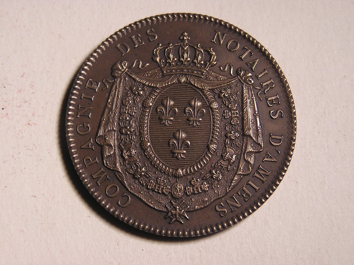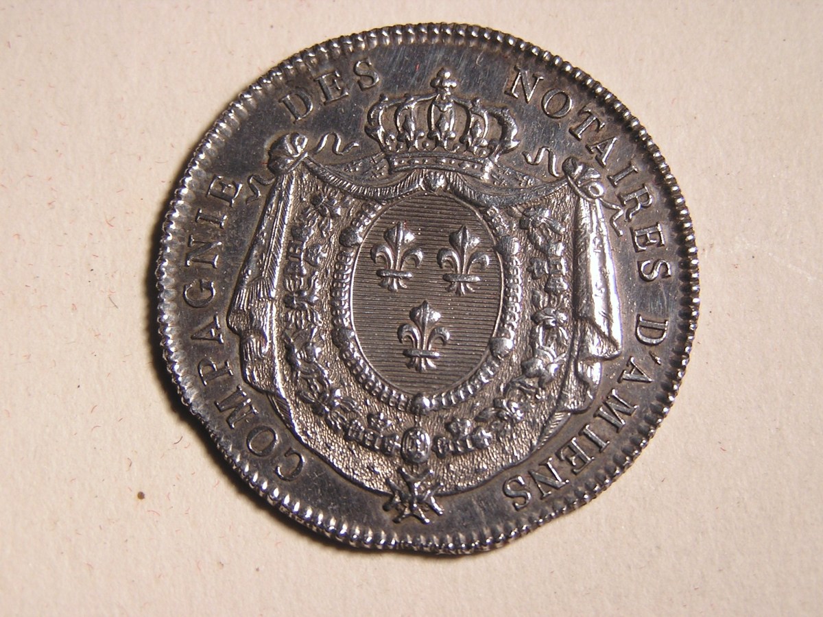 AMIENS. 12 Jetons de notaires en argent, en bronze et en cuivre, de forme octogonale et ronde.