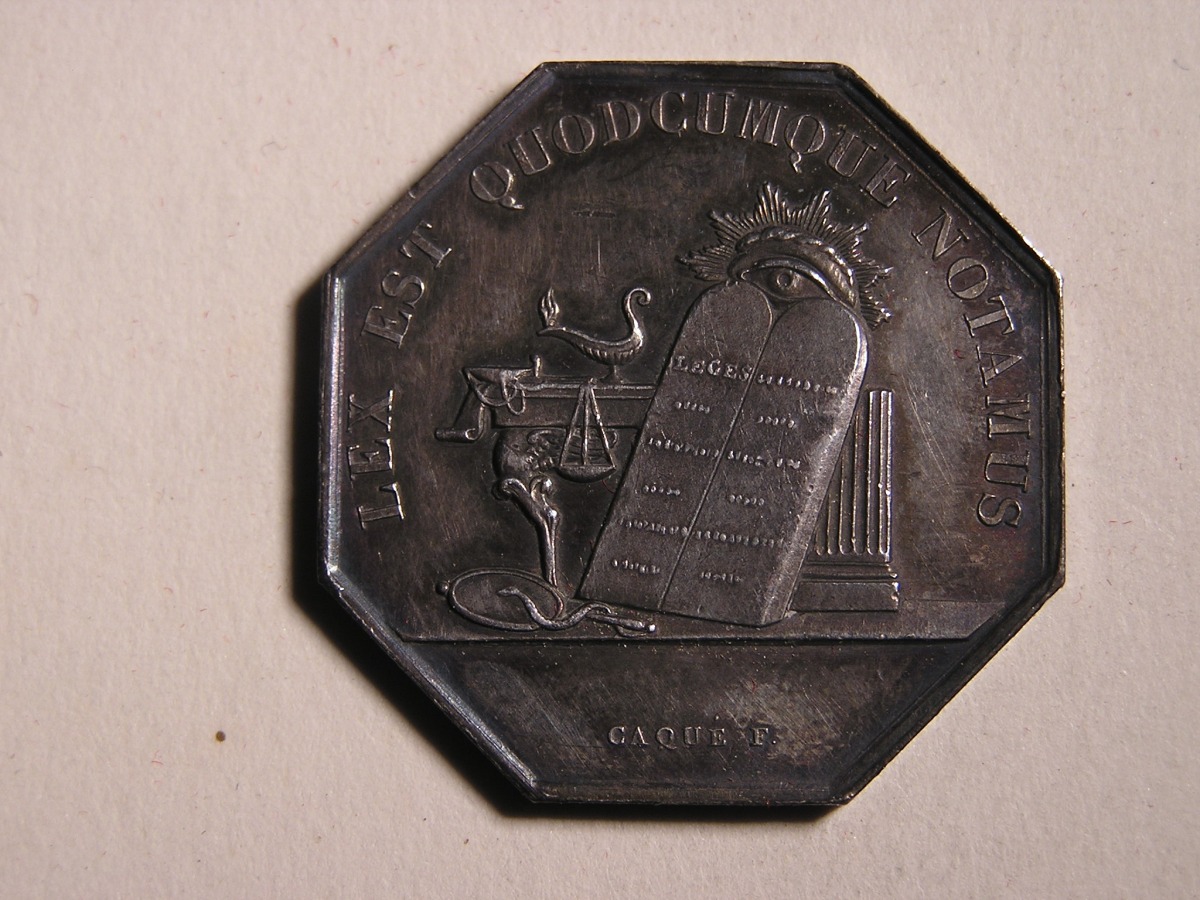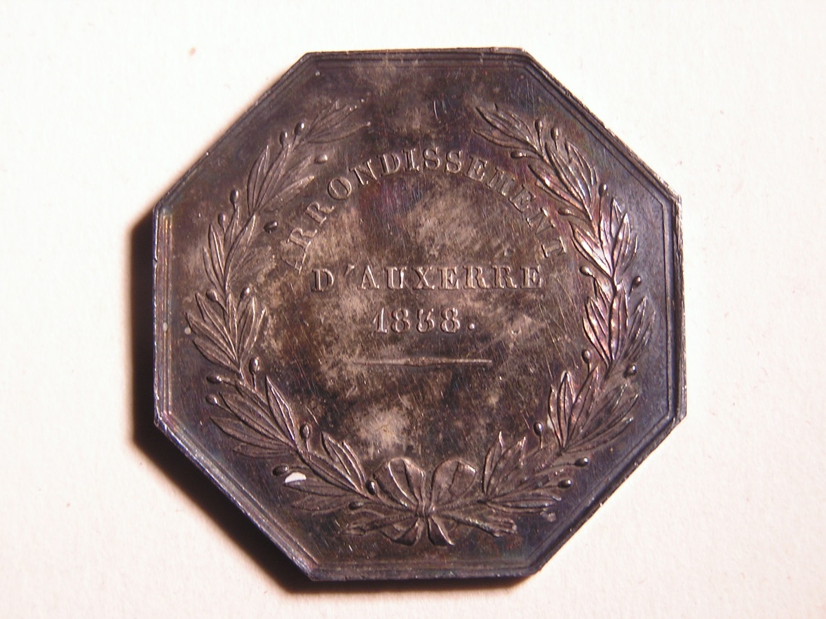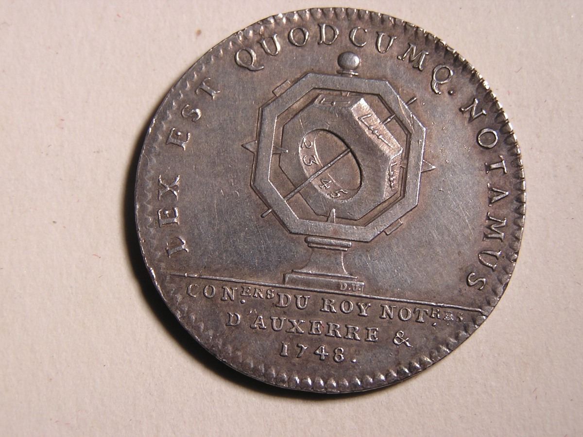AUXERRE. 3 Jetons de notaires en argent, de forme octogonale et ronde .