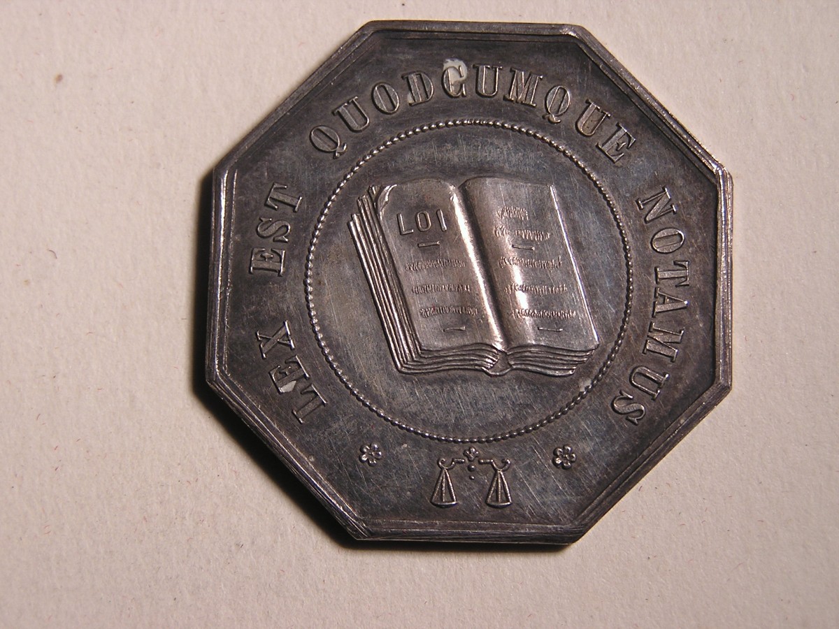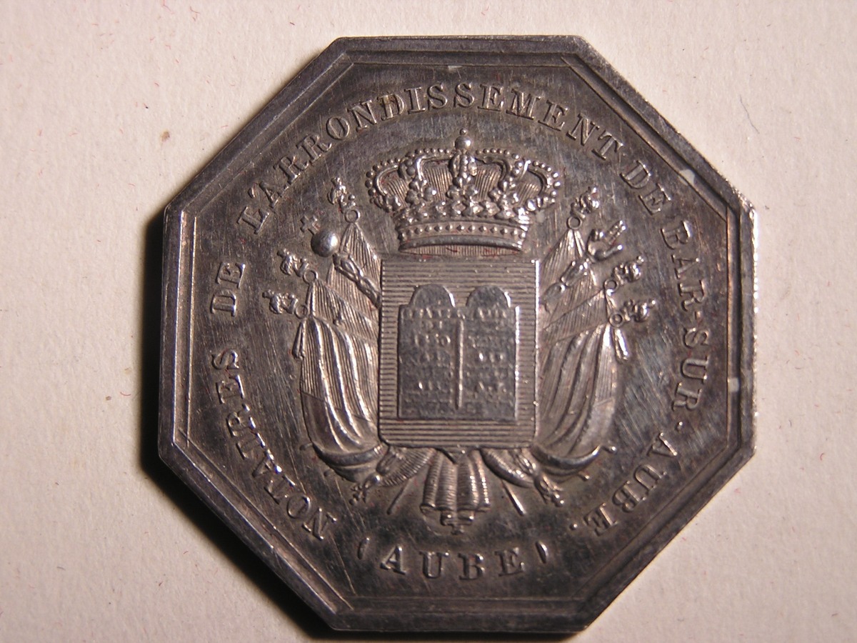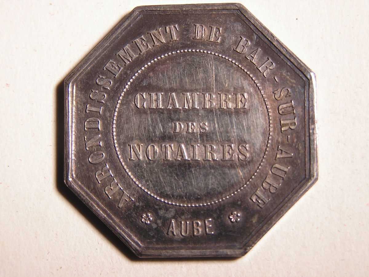 BAR SUR AUBE. 2 Jetons de notaires en argent, de forme octogonale .