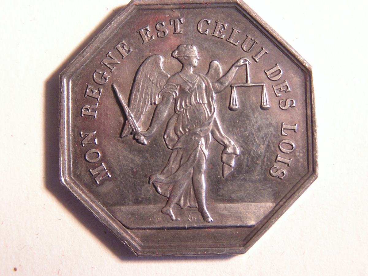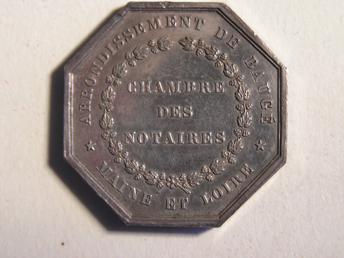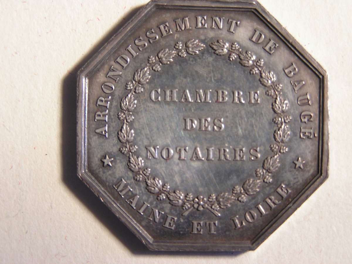 BAUGE. 2 Jetons de notaires en argent, de forme octogonale.