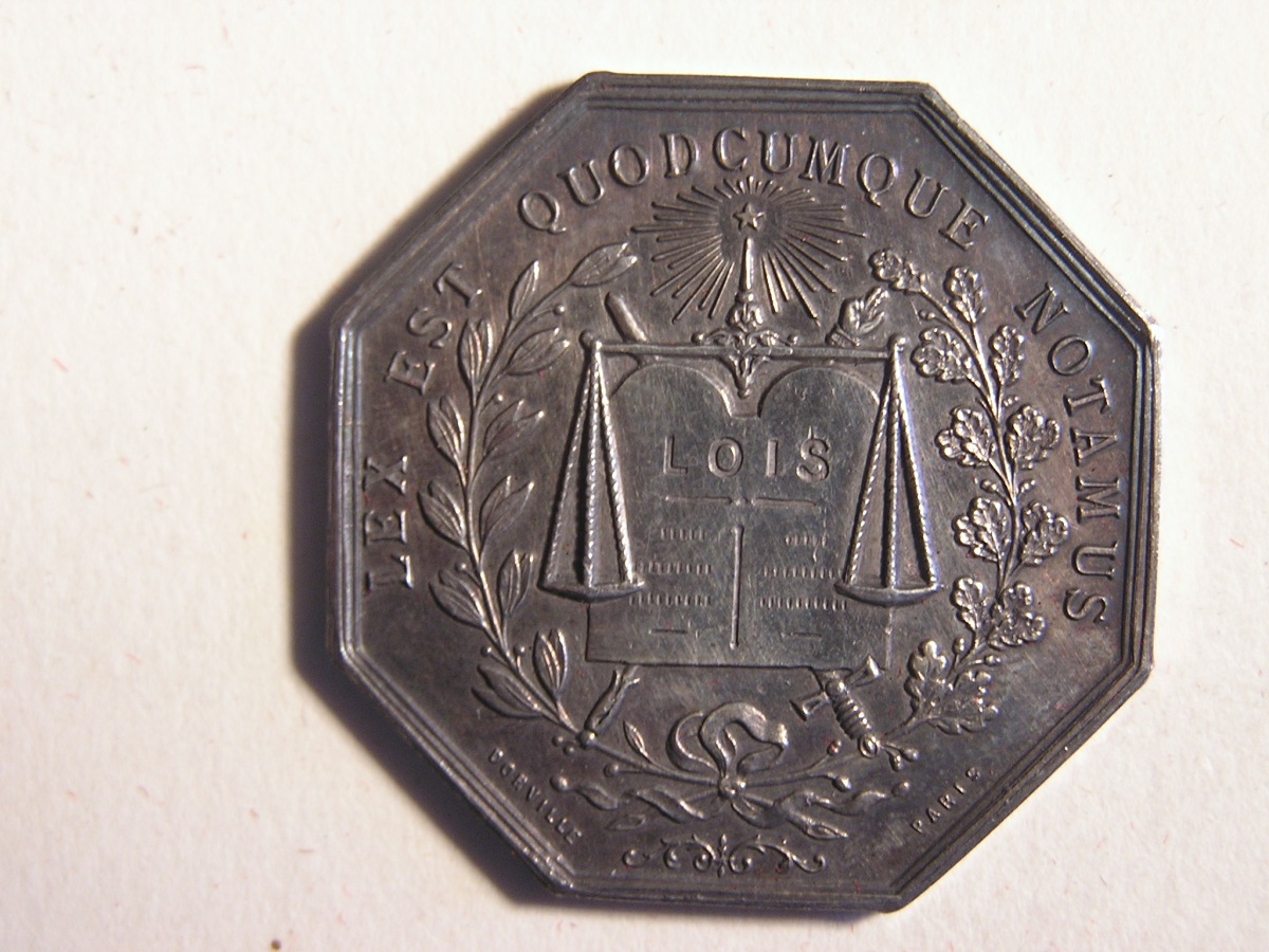 BAZAS. 1 Jeton de notaire en argent, de forme octogonale.