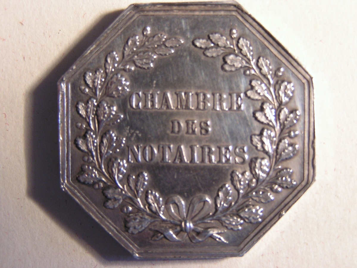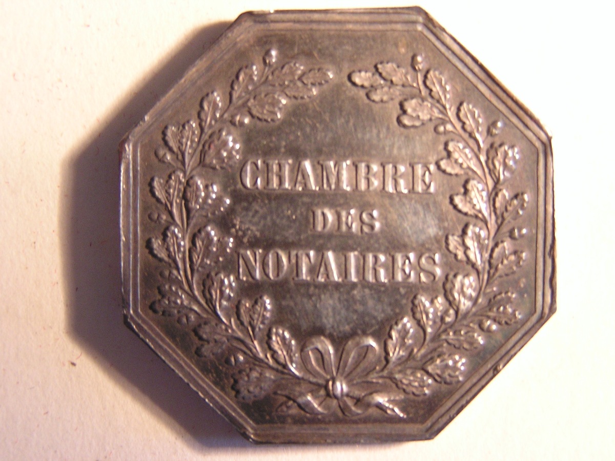 BEAUNE. 2 Jetons de notaires en argent, de forme octogonale.