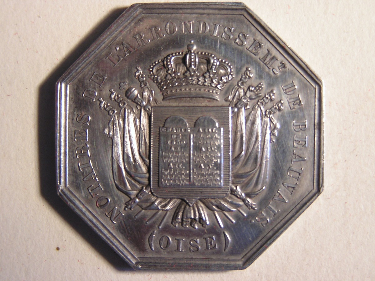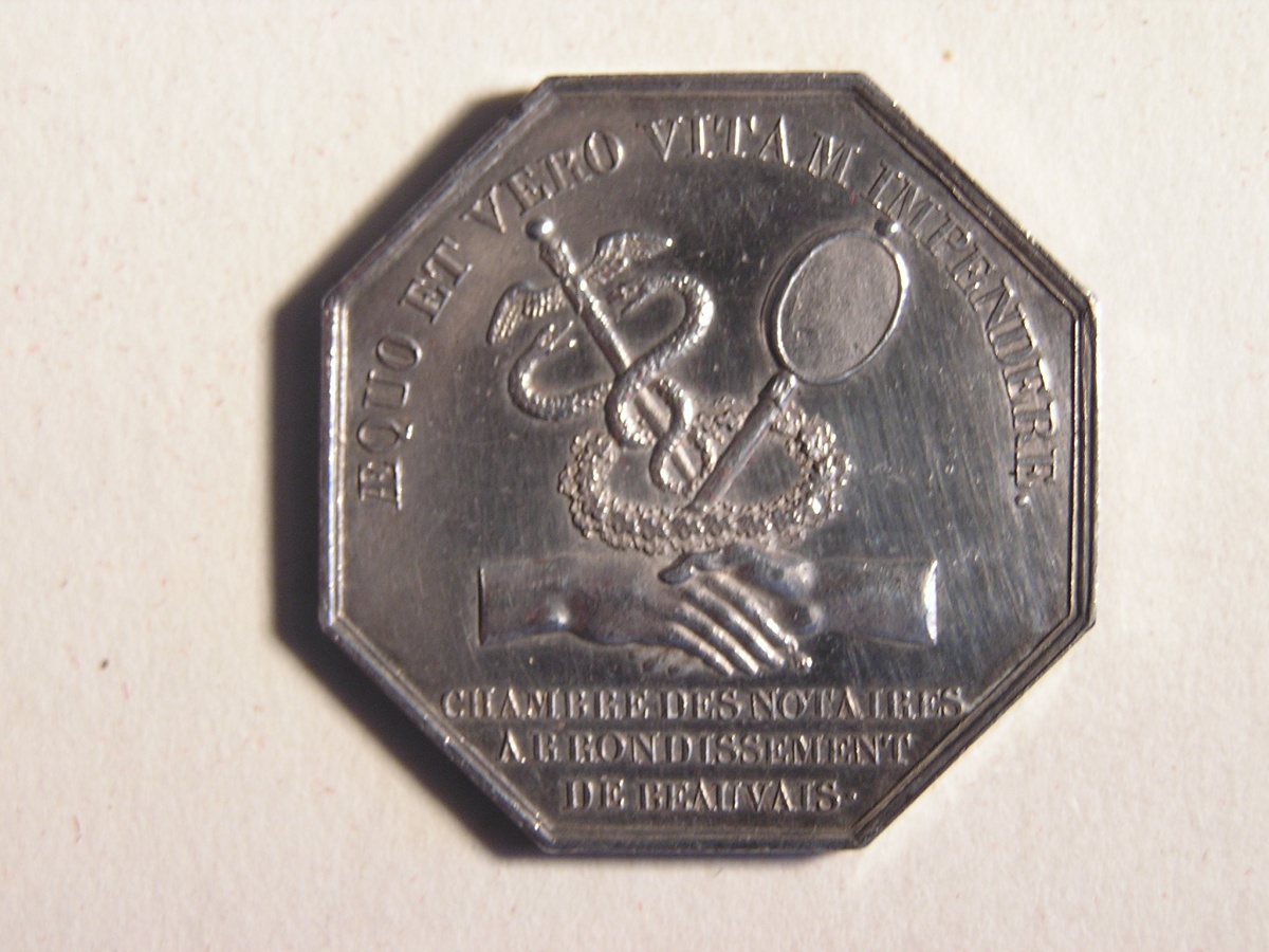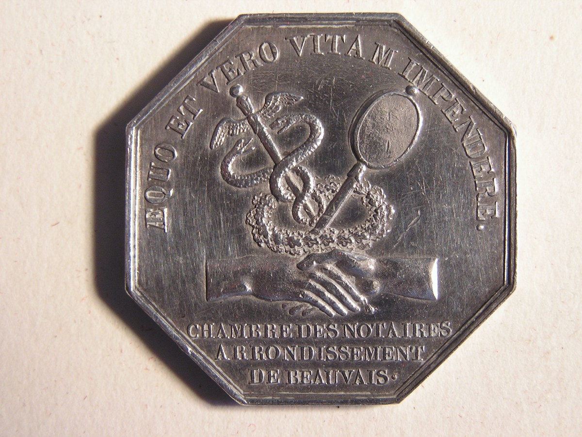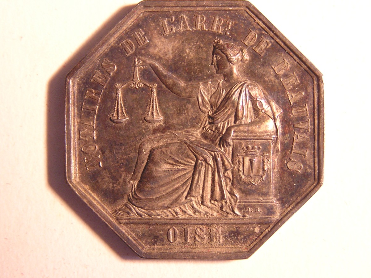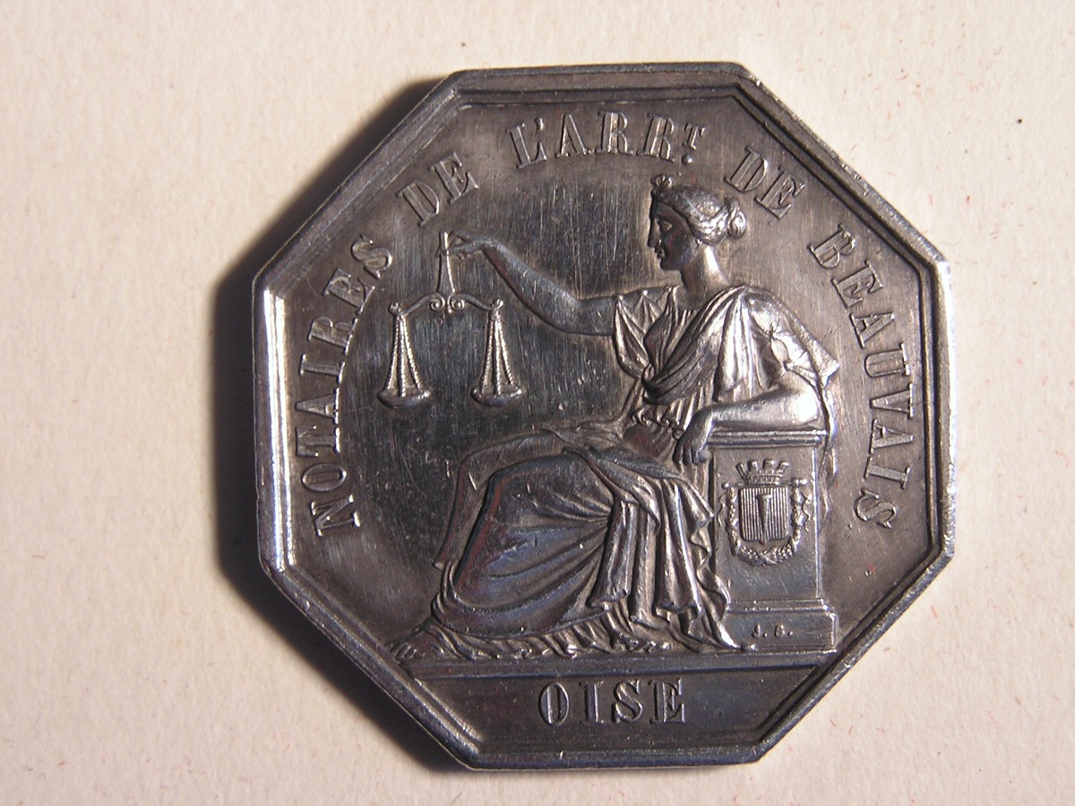 BEAUVAIS. 6 Jetons de notaires en argent, de forme octogonale.