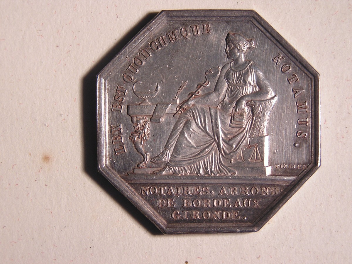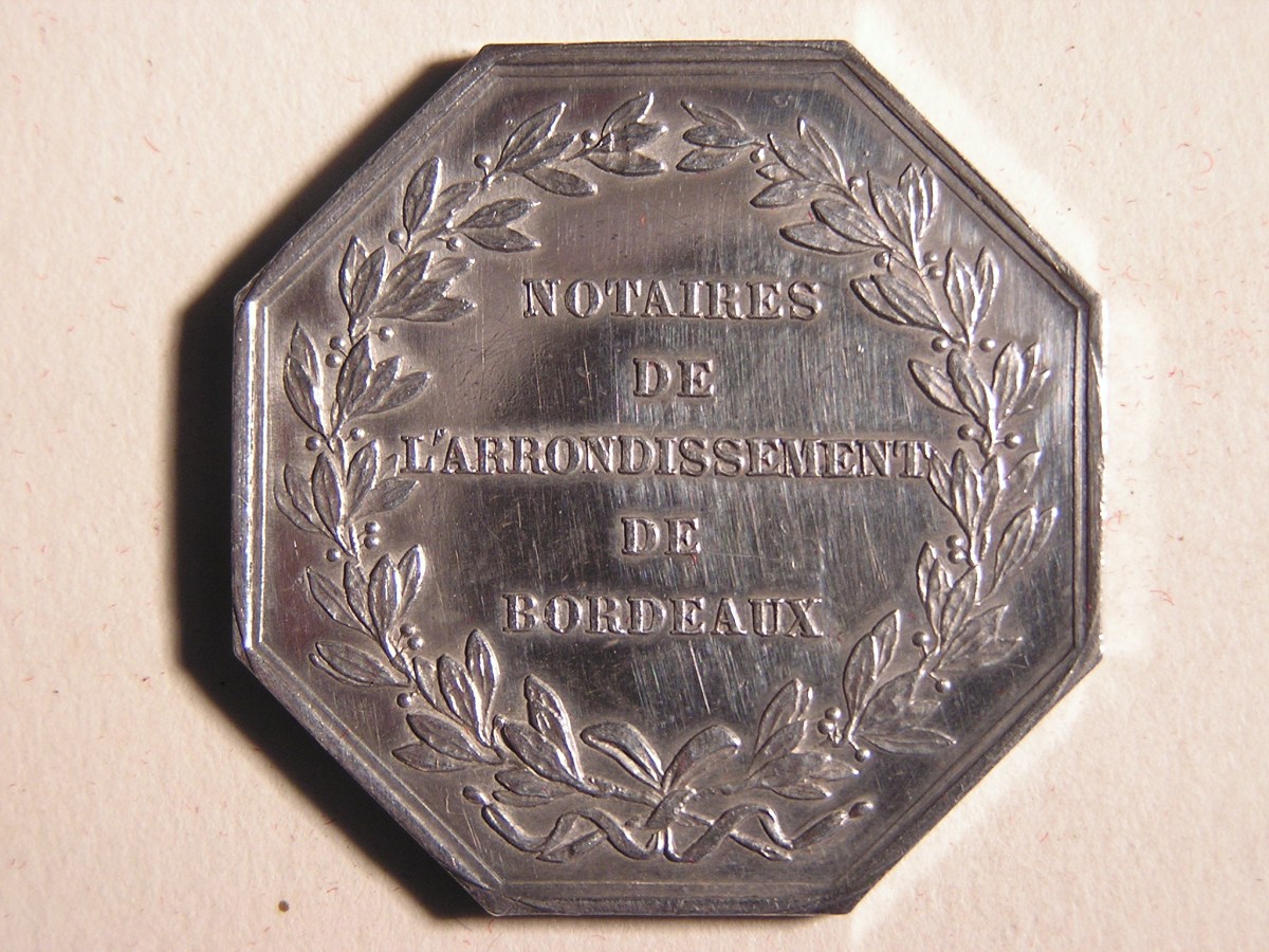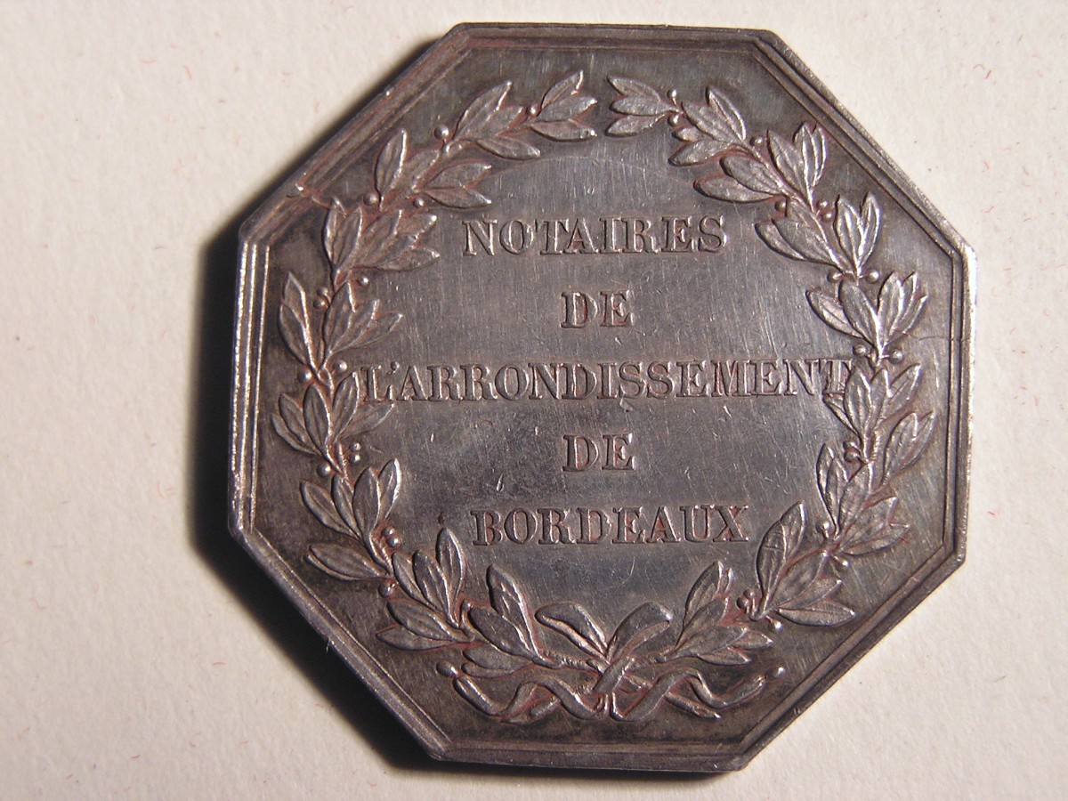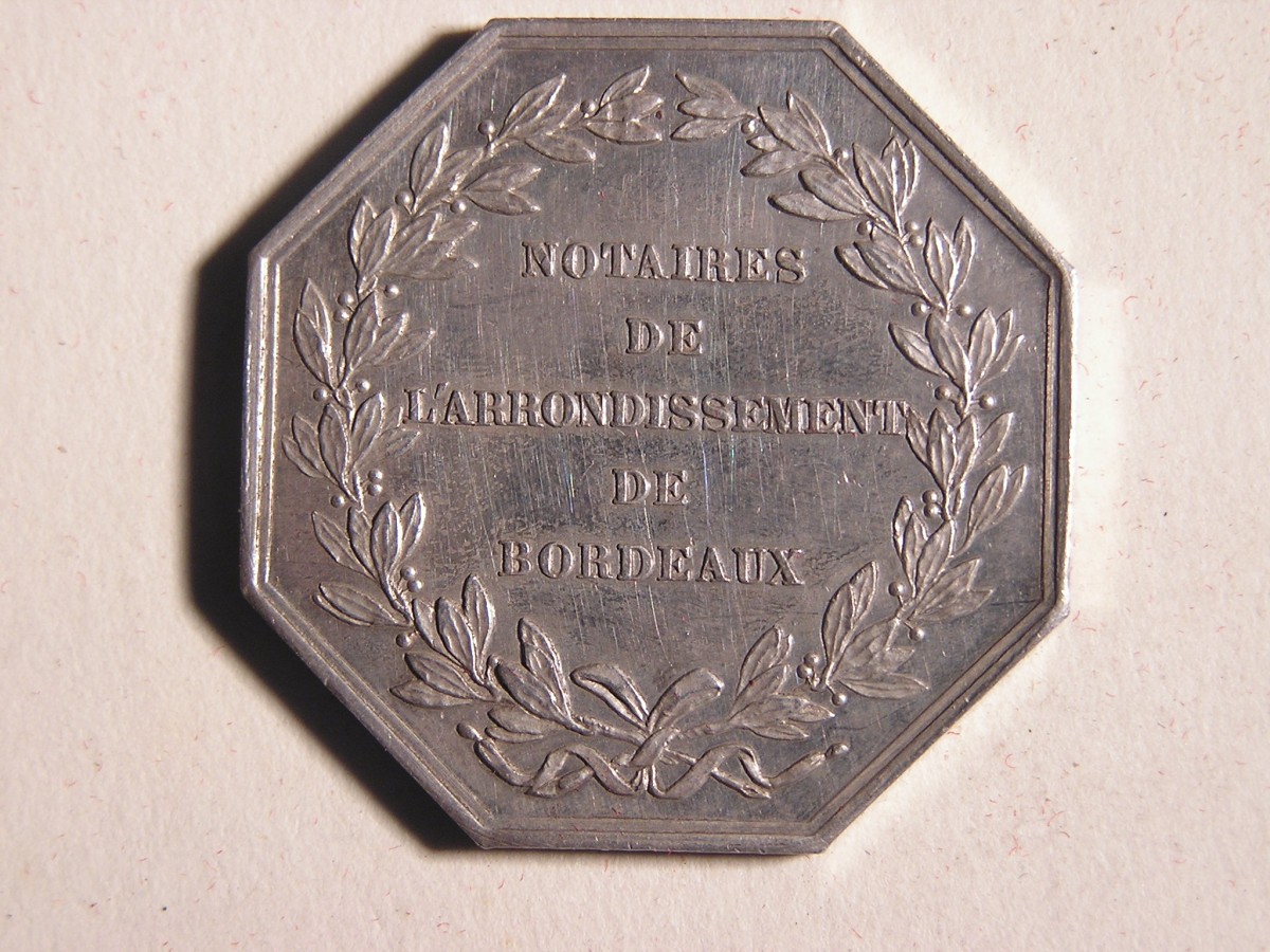 BORDEAUX. 10 Jetons de notaires en argent et en cuivre, de formes octogonale, ronde et circulaire.