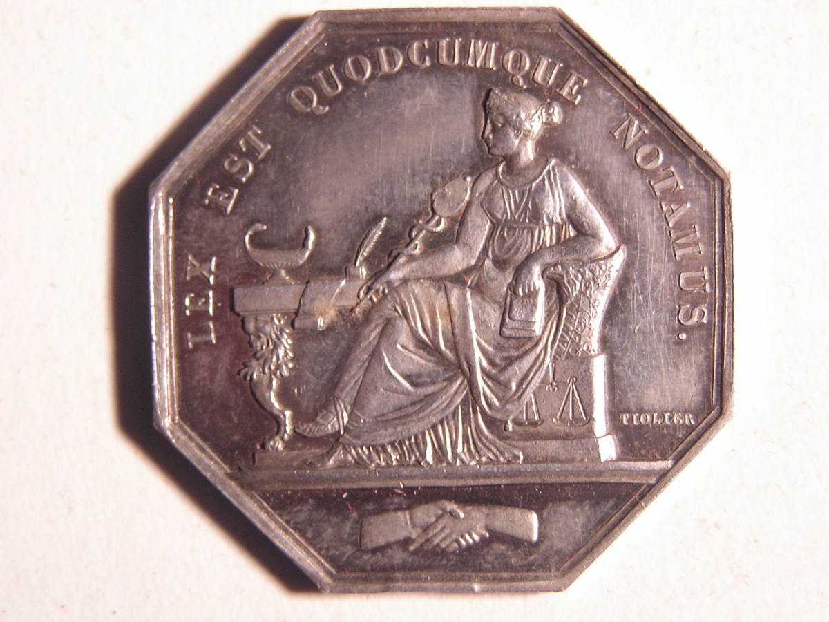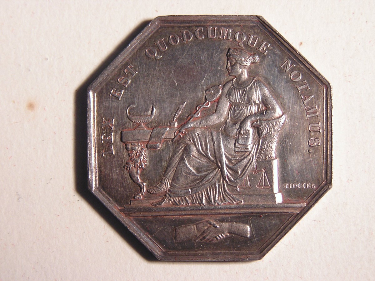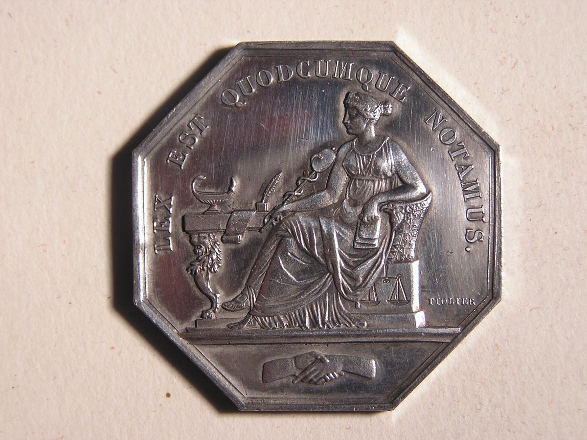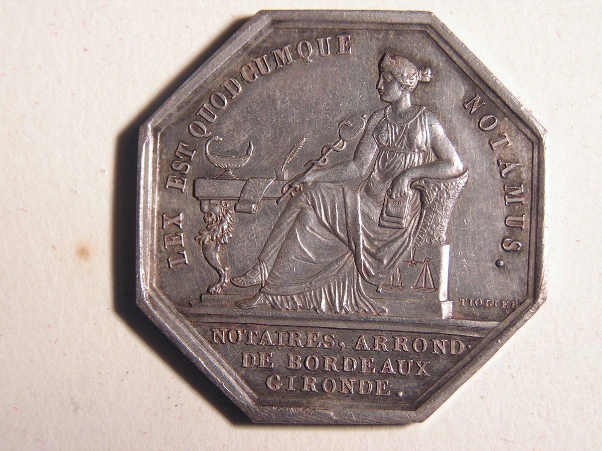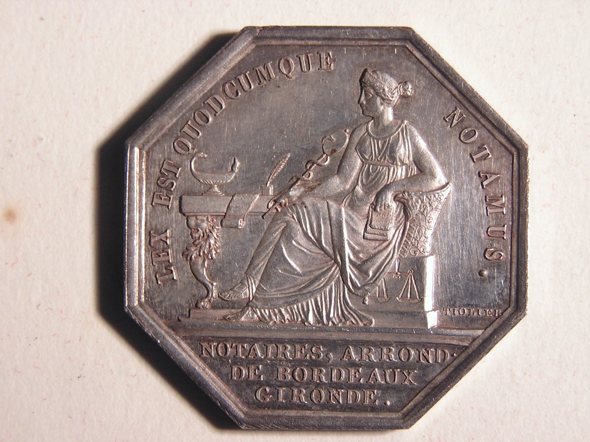 BORDEAUX. 10 Jetons de notaires en argent et en cuivre, de formes octogonale, ronde et circulaire.