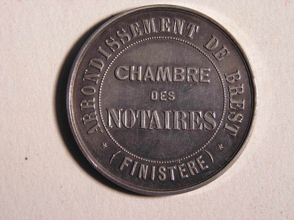 BREST. 1 Jeton de notaire en argent, de forme ronde.