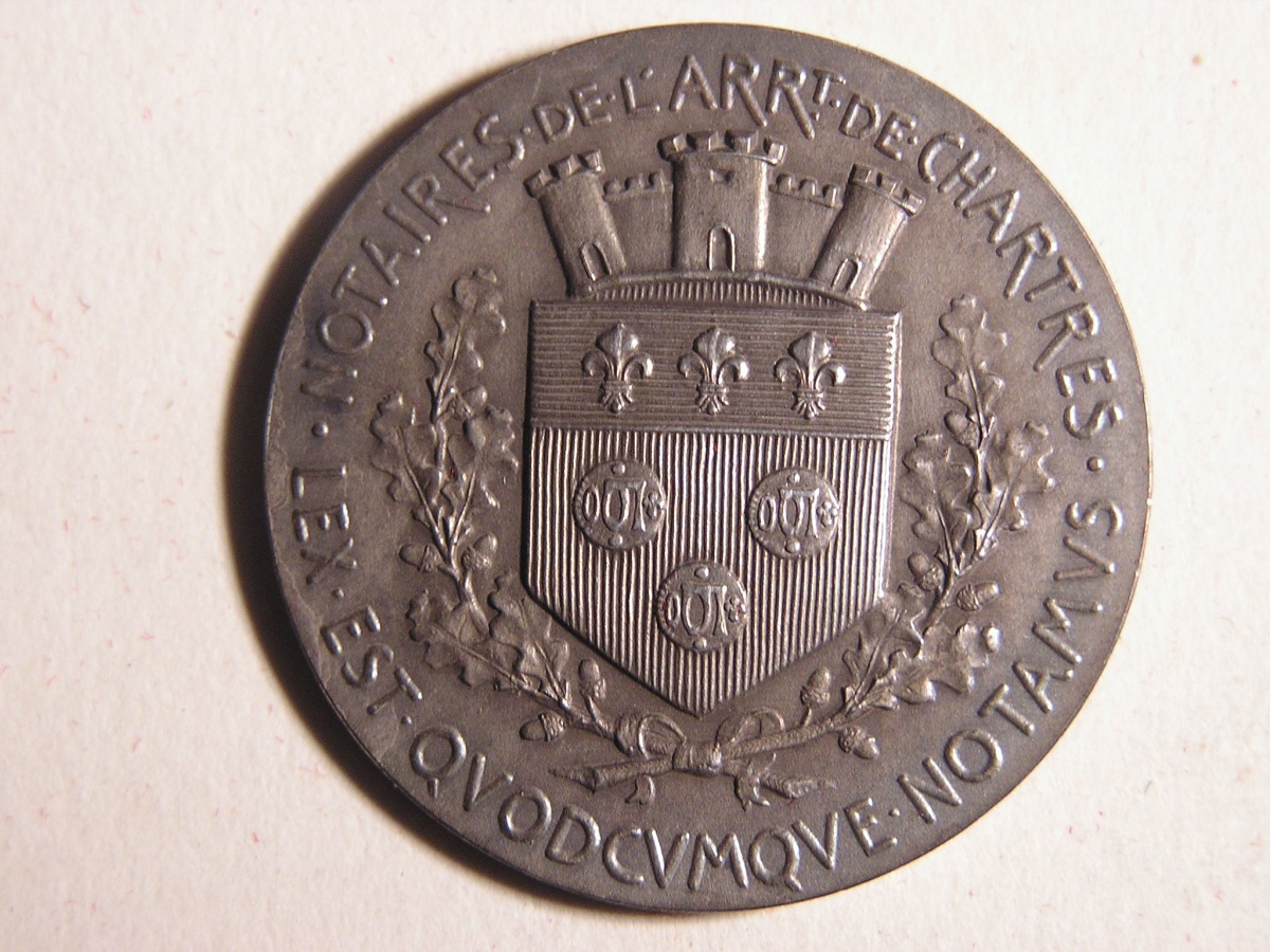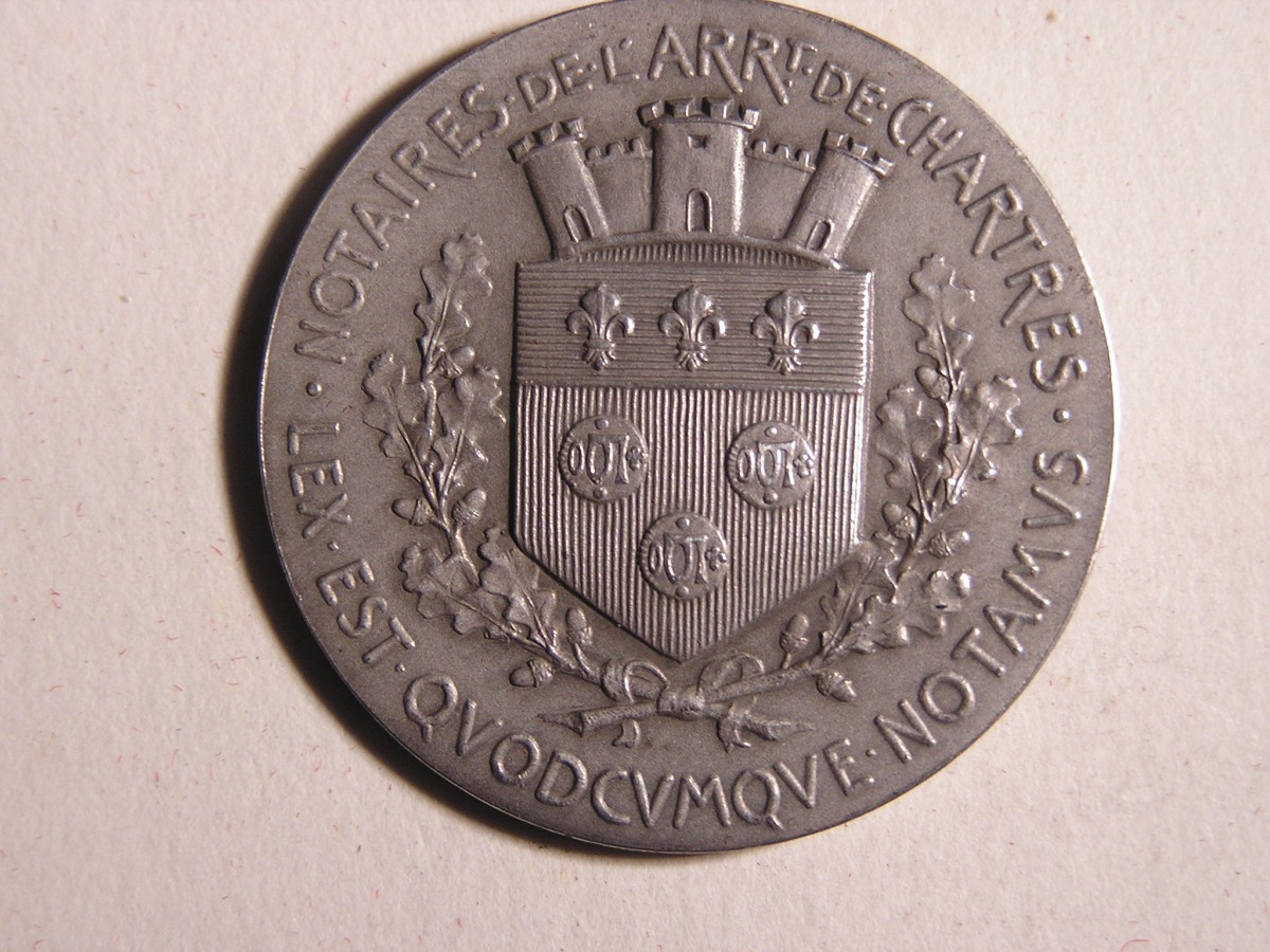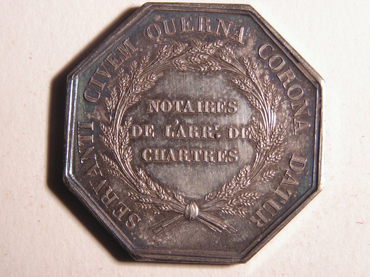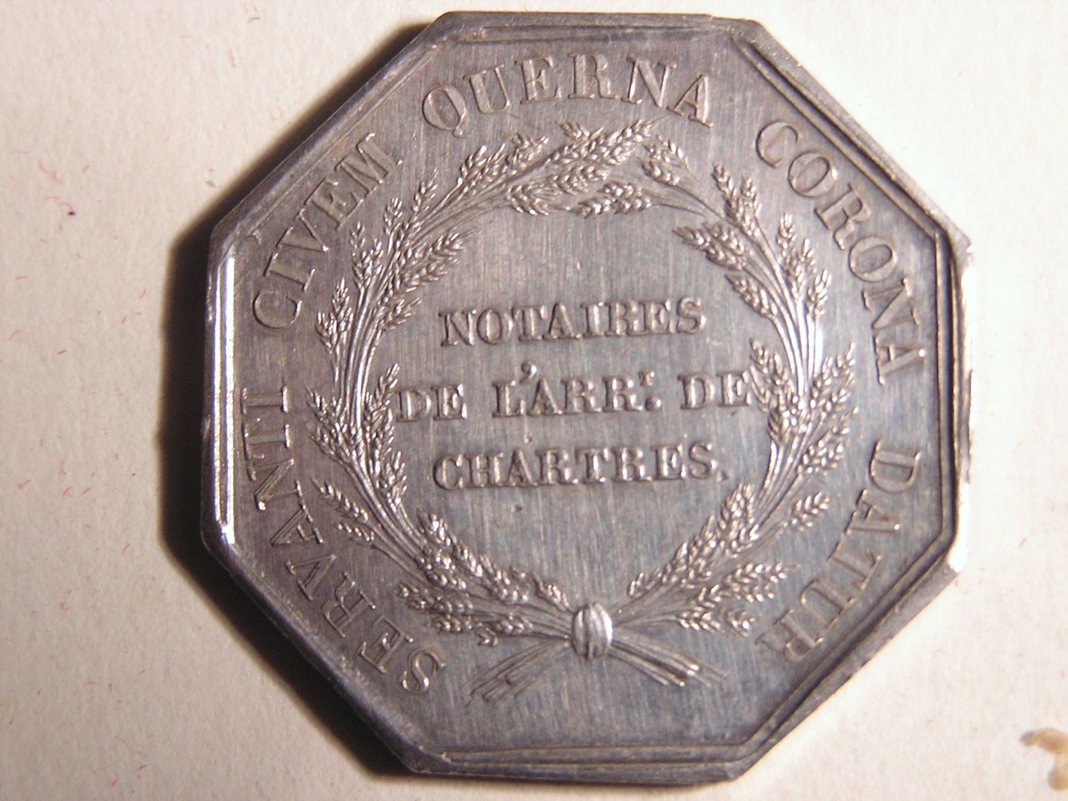 CHARTRES. 7 Jetons de notaires en argent, de forme octogonale et ronde.