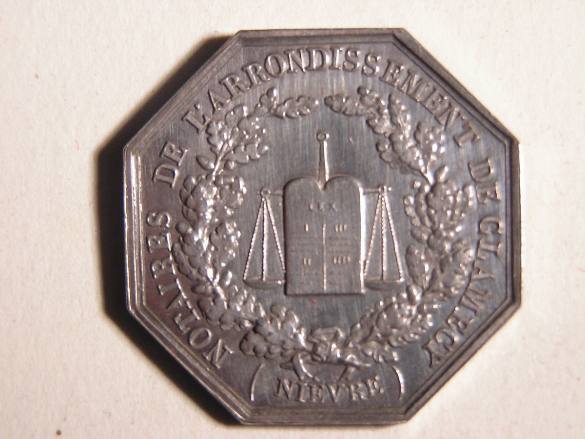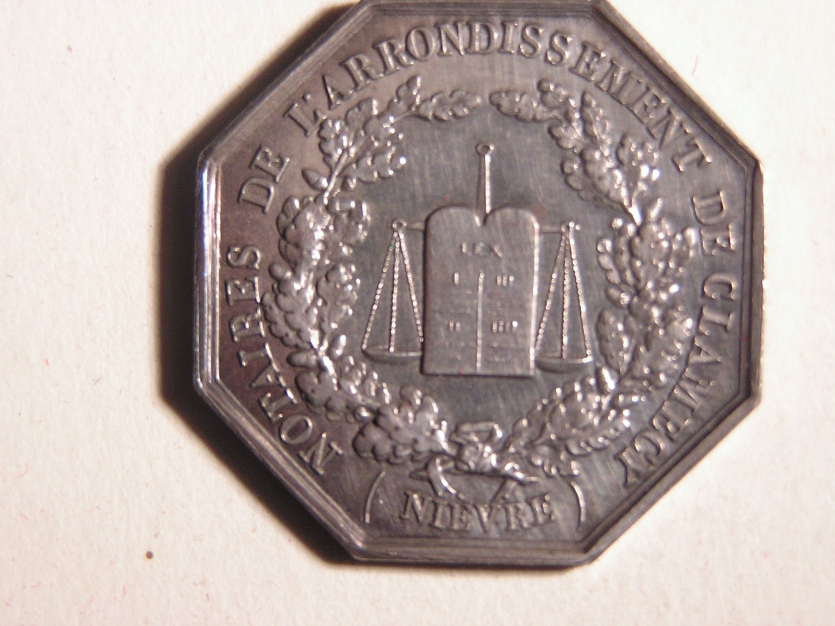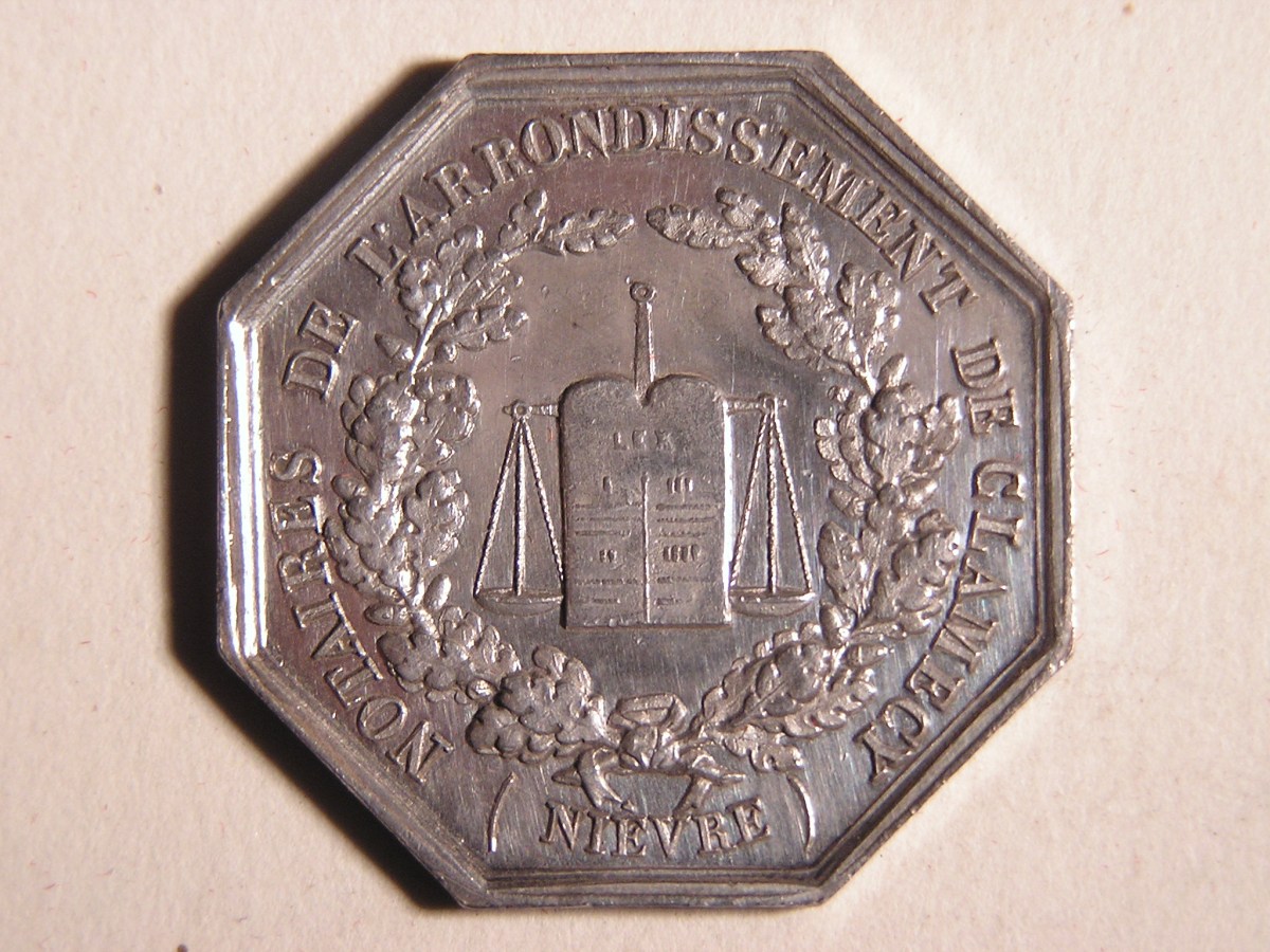 CLAMECY. 5 Jetons de notaires en argent, de forme octogonale.