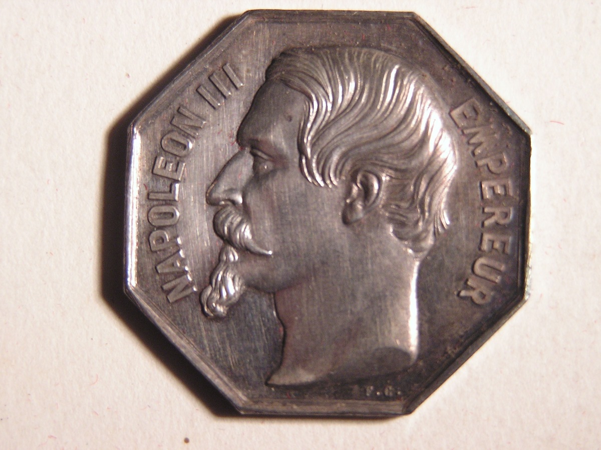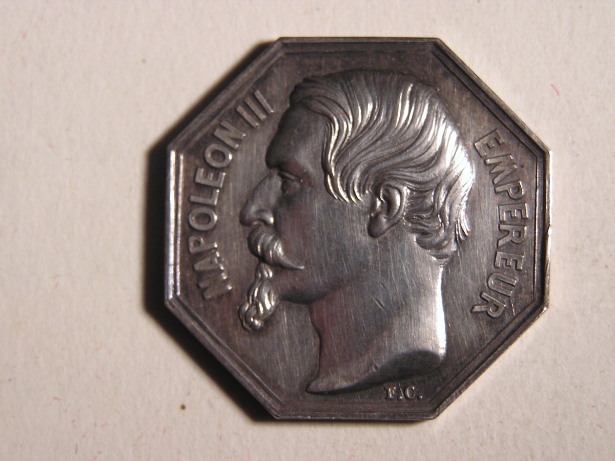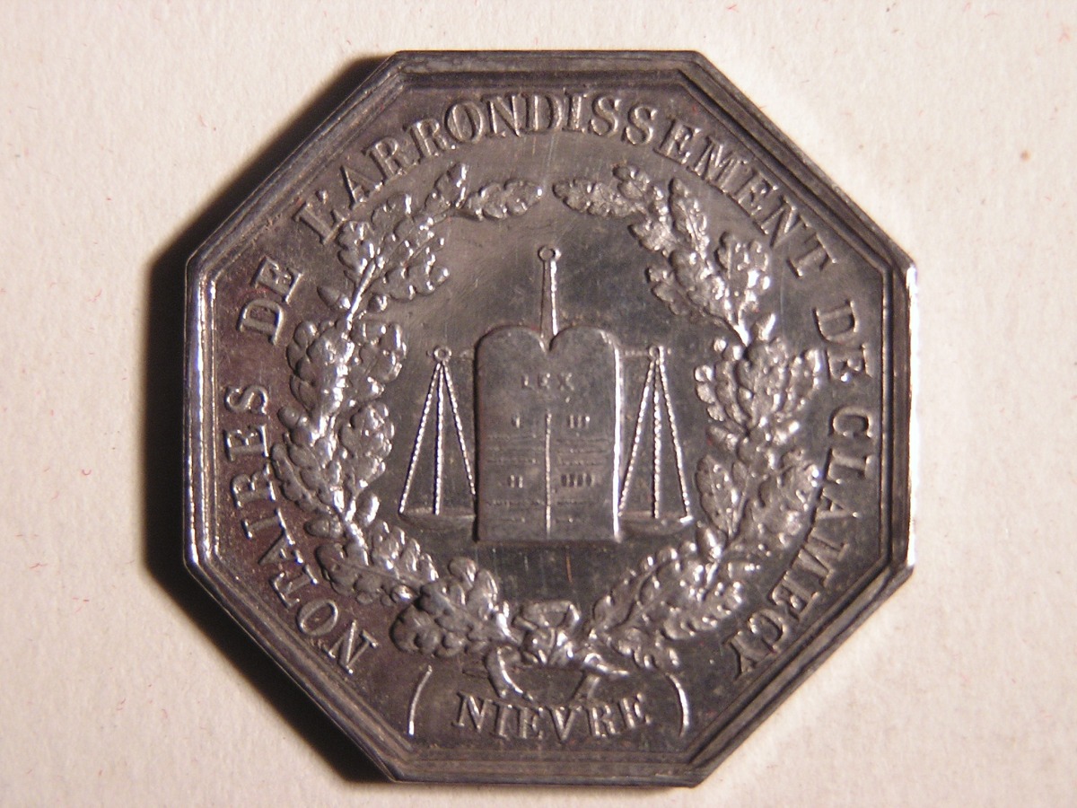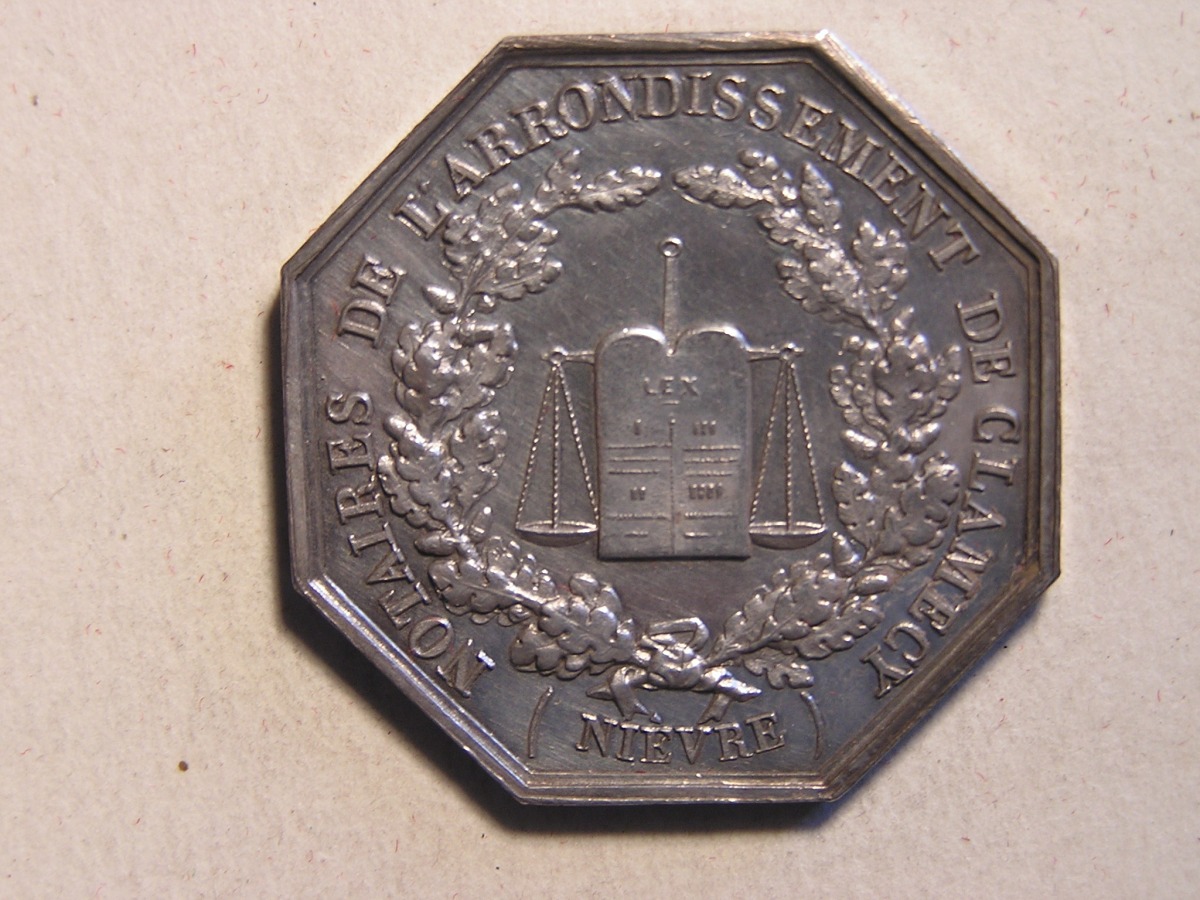 CLAMECY. 5 Jetons de notaires en argent, de forme octogonale.