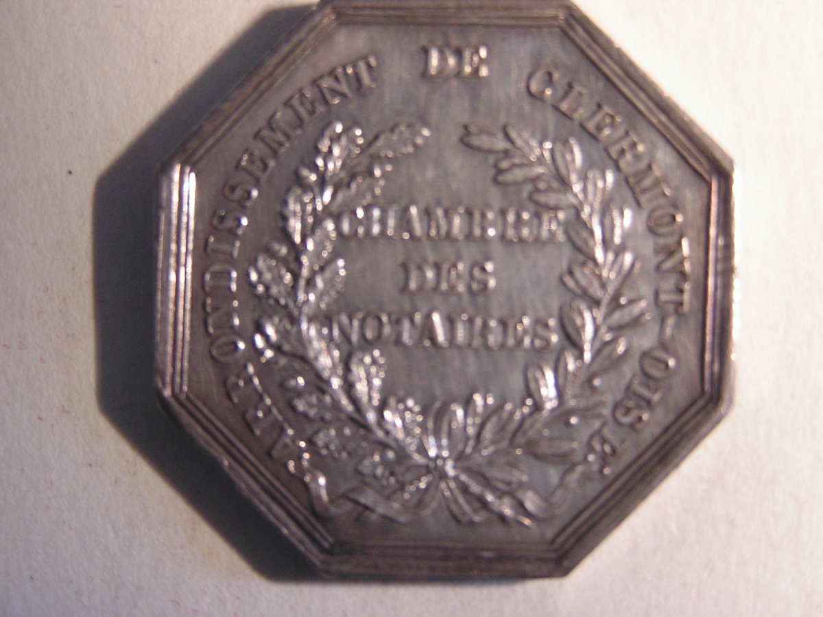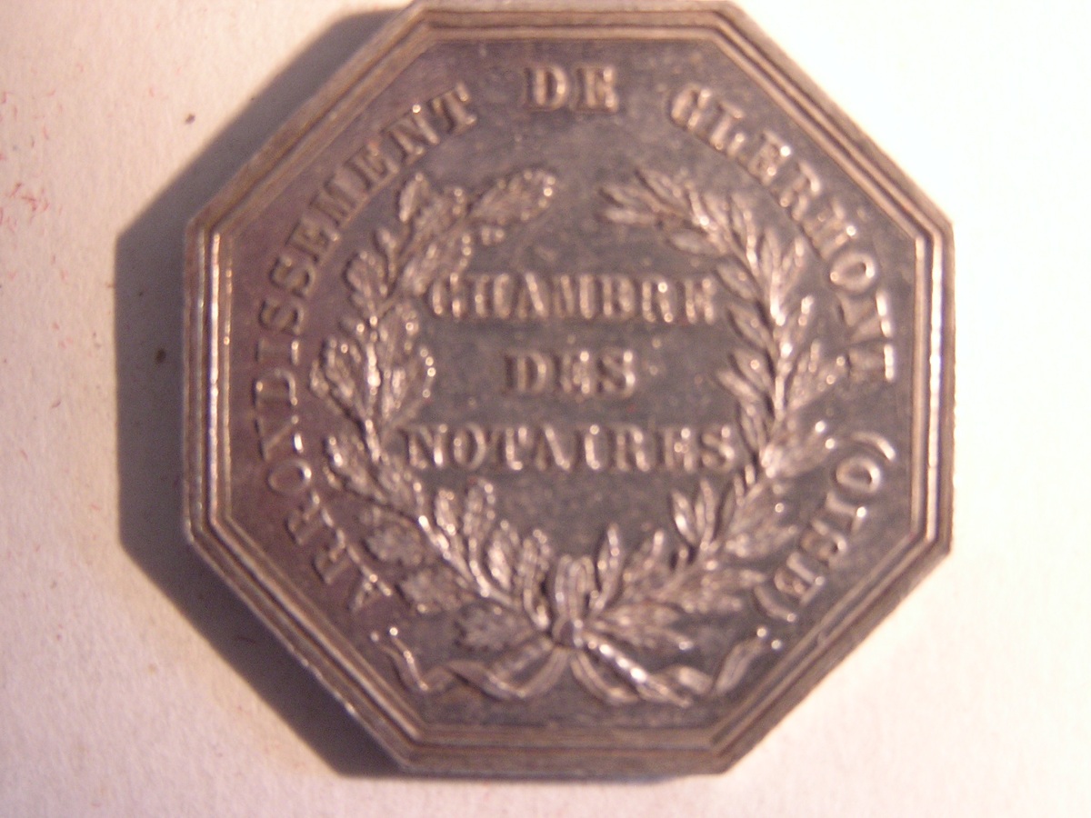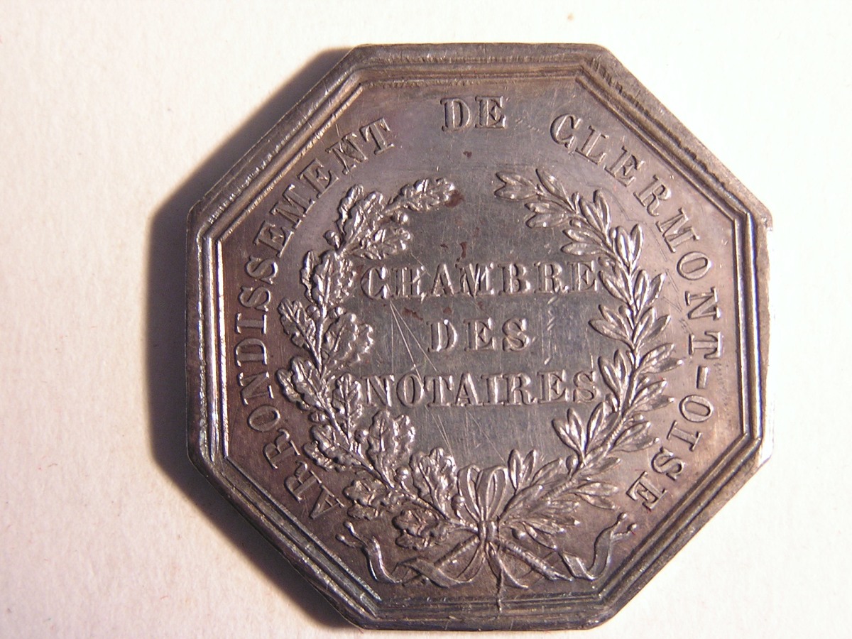 CLERMONT. 6 Jetons de notaires en argent, de forme octogonale.