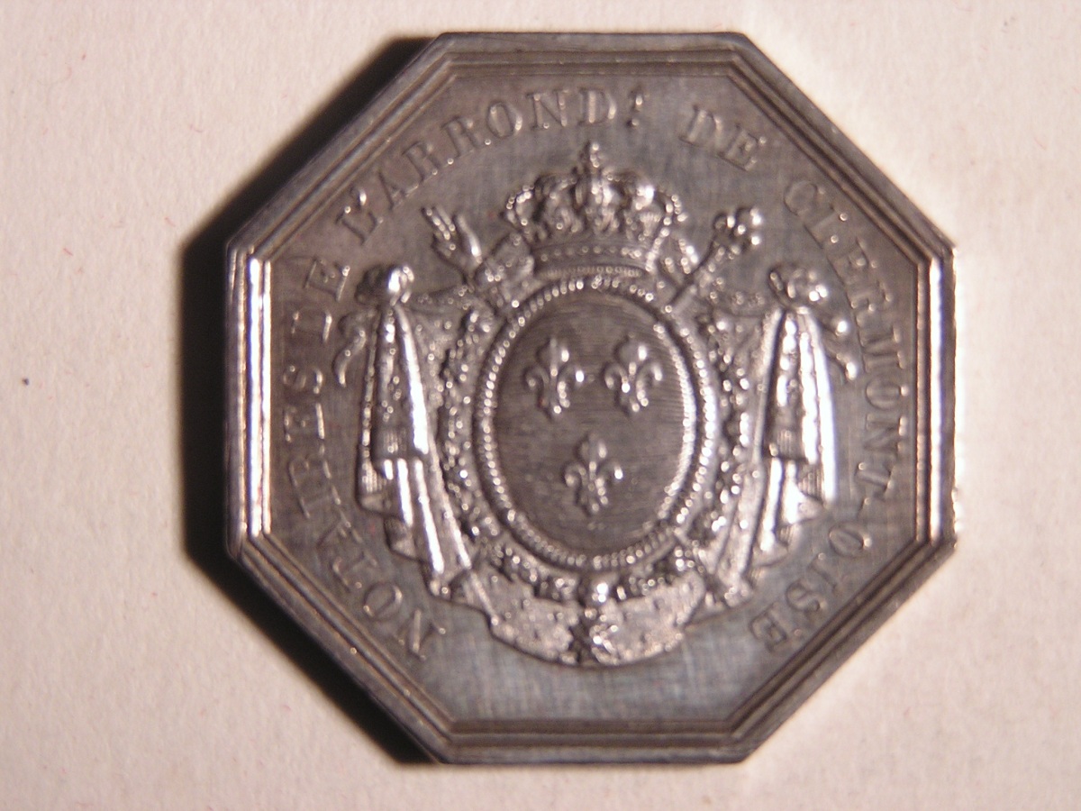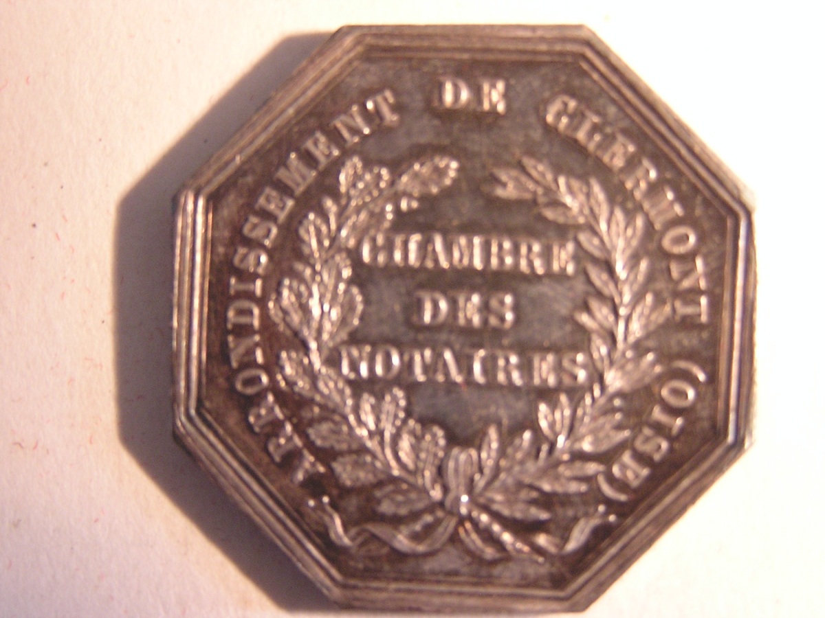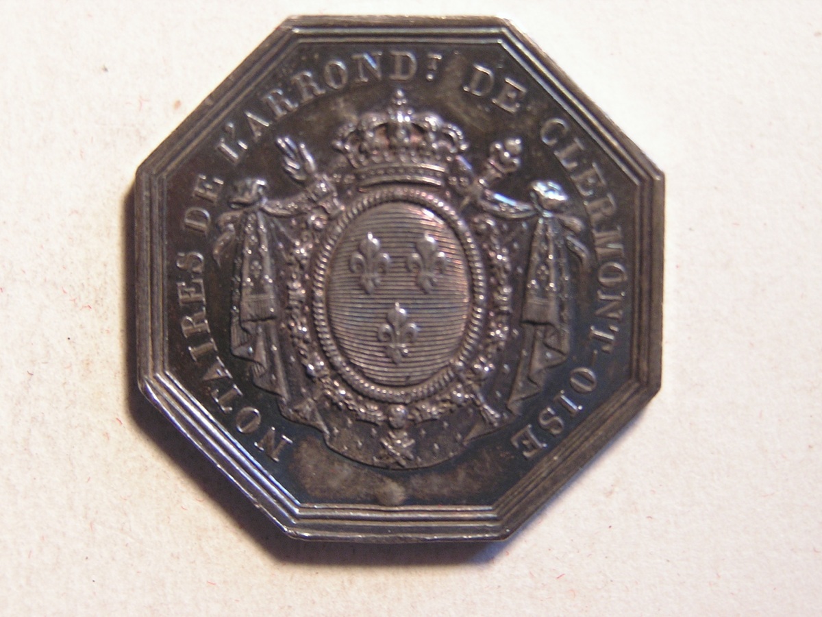 CLERMONT. 6 Jetons de notaires en argent, de forme octogonale.