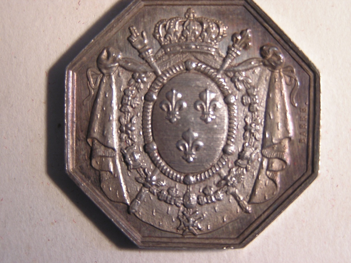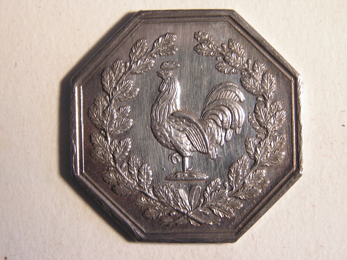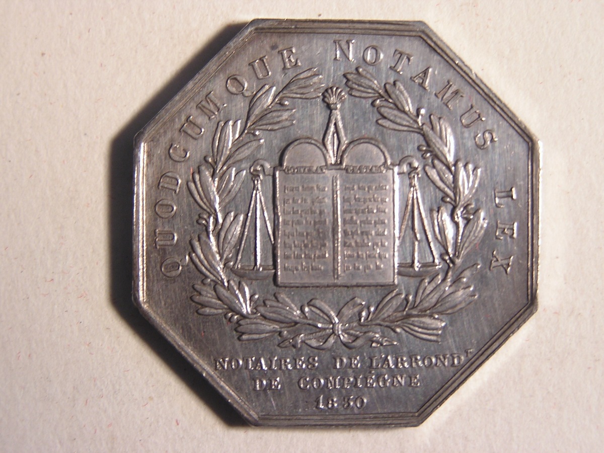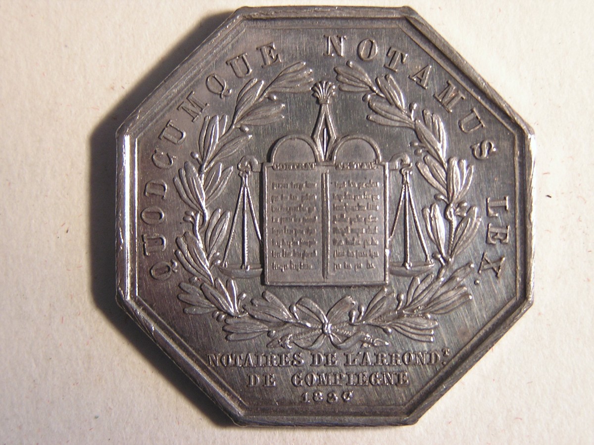 COMPIEGNE. 4 Jetons de notaires en argent, de forme octogonale.