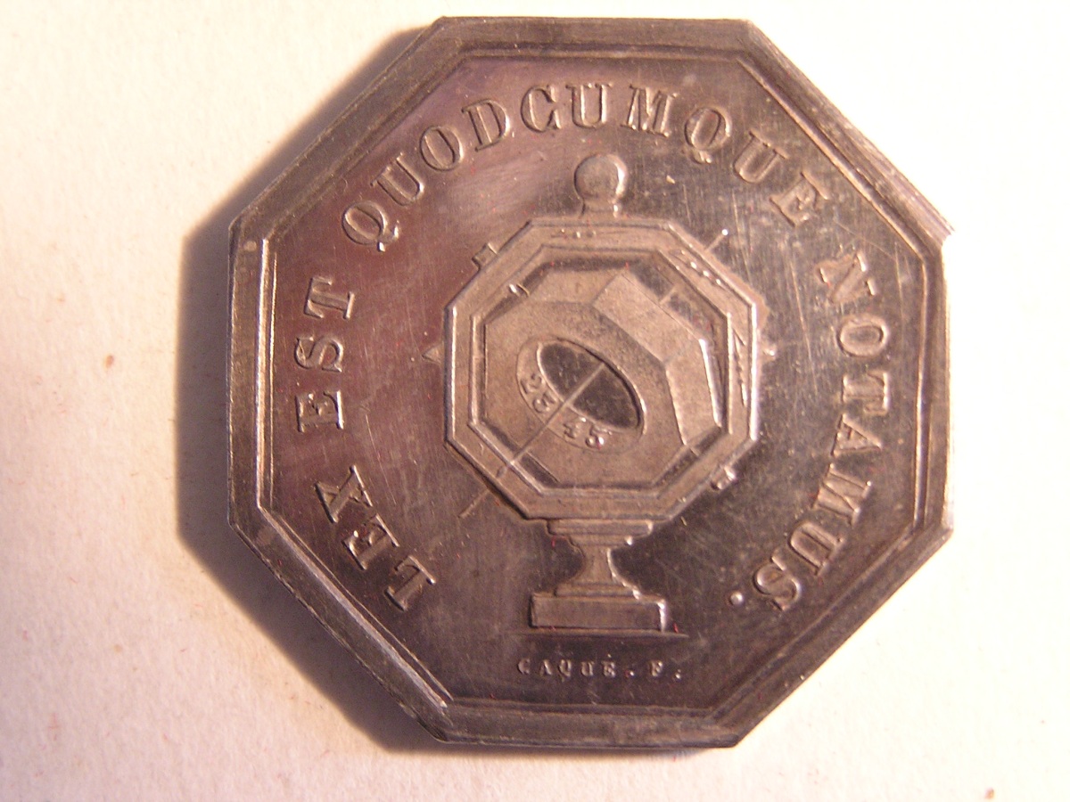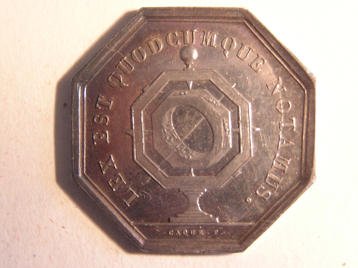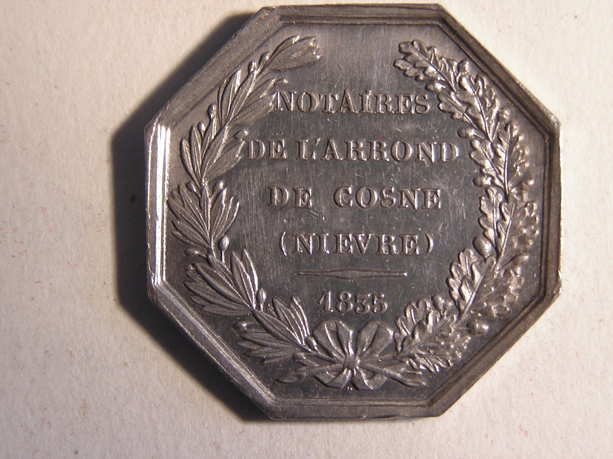 COSNE. 2 Jetons de notaires en argent, de forme octogonale.