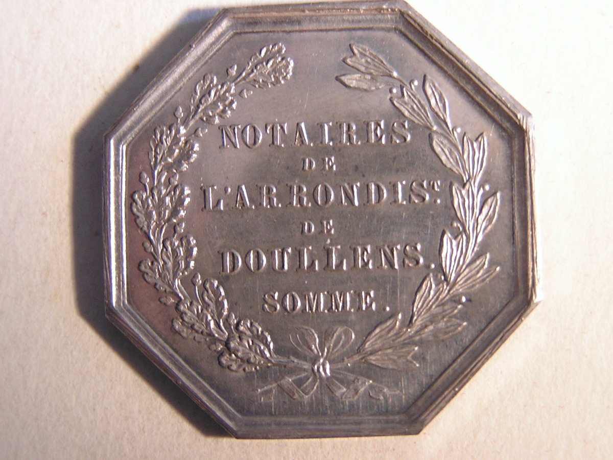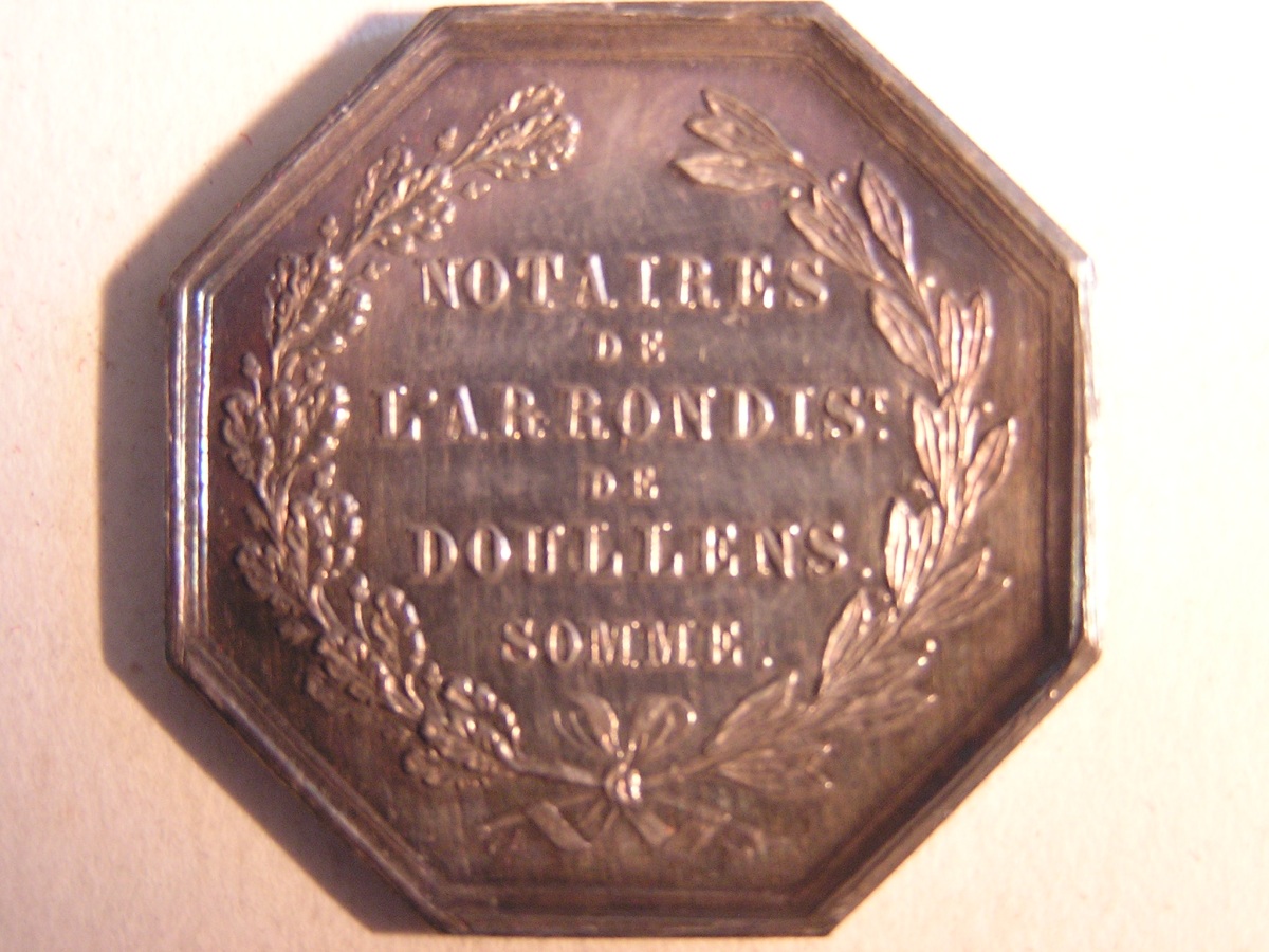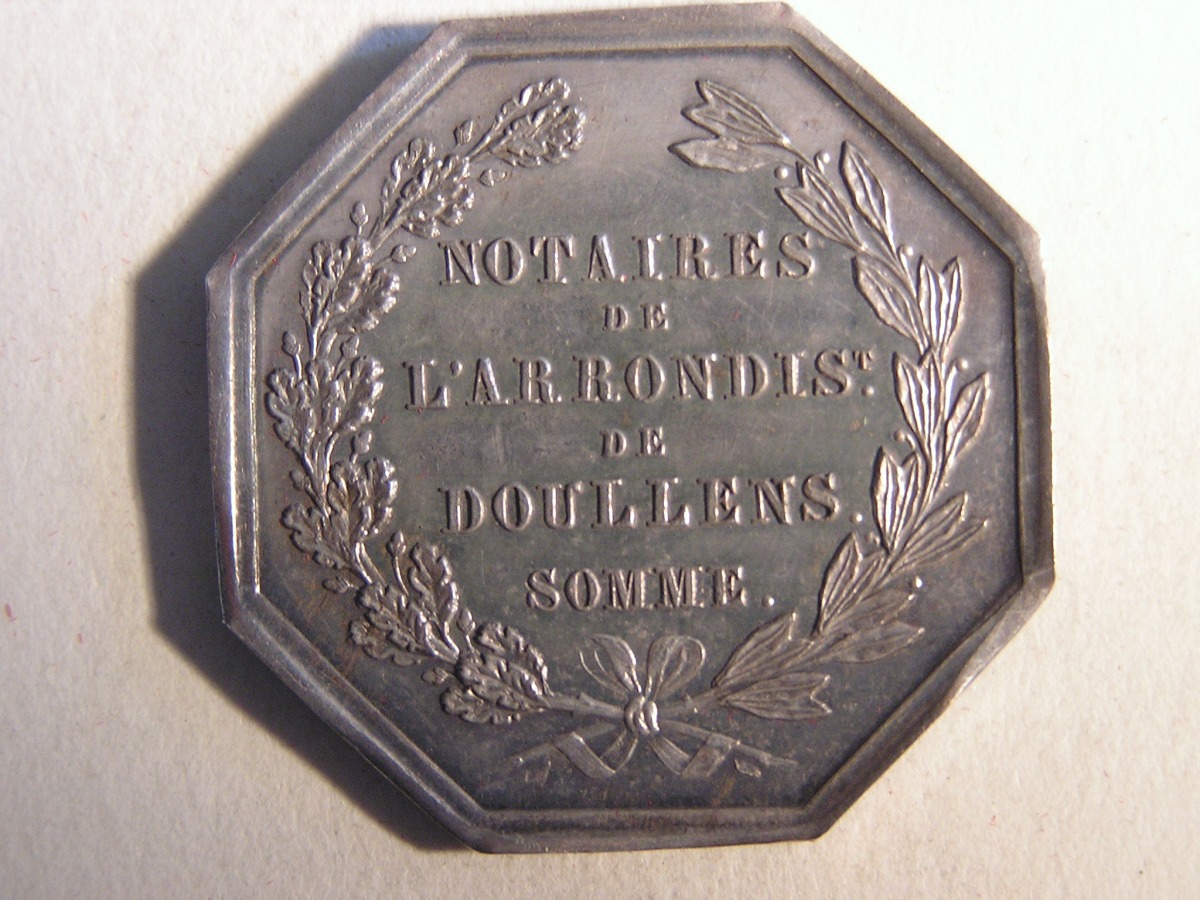 DOULLENS. 4 Jetons de notaires en argent, de forme octogonale.