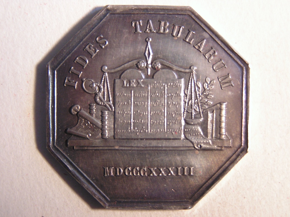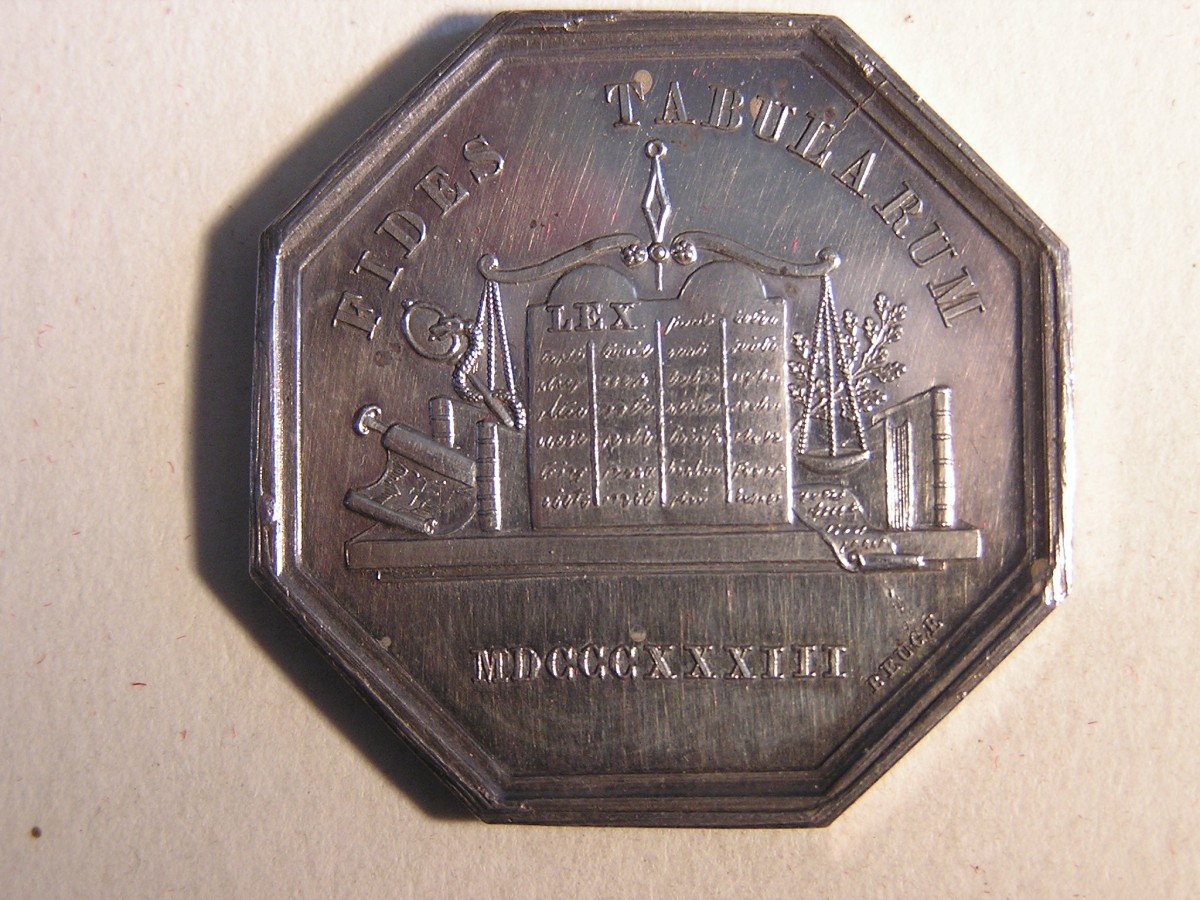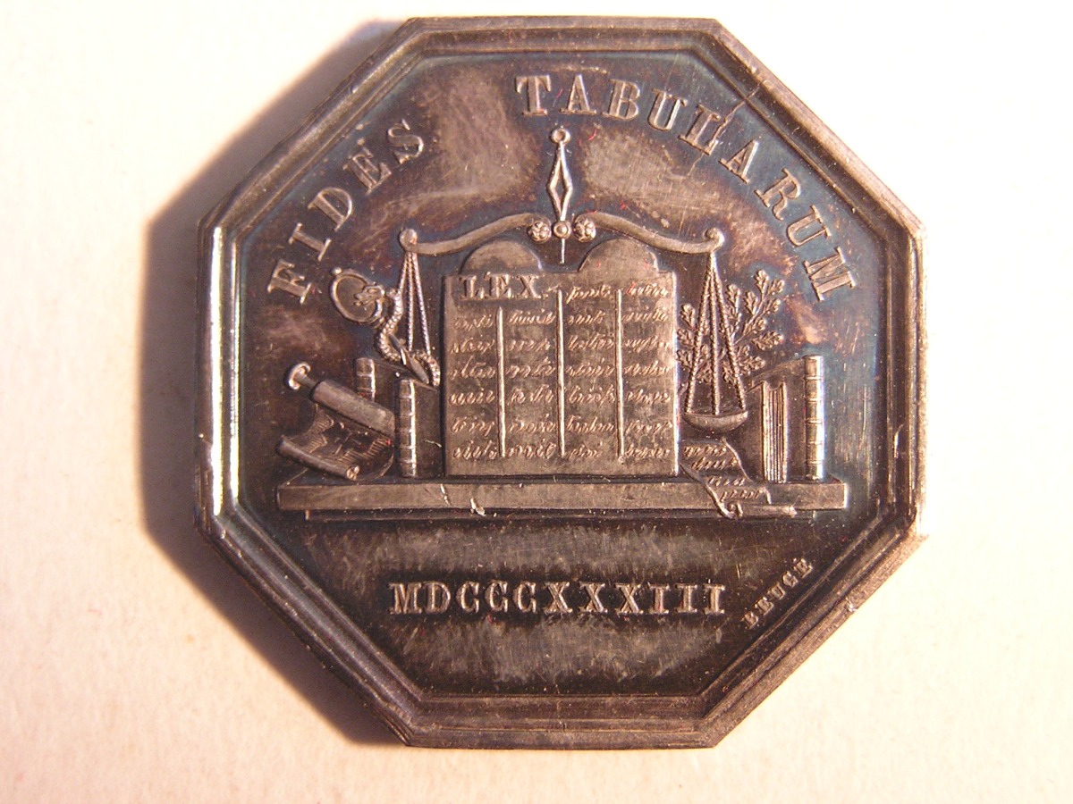 DOULLENS. 4 Jetons de notaires en argent, de forme octogonale.