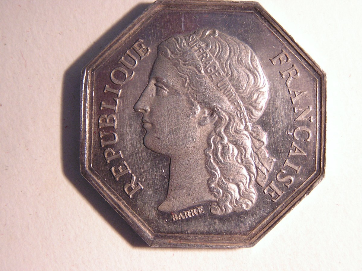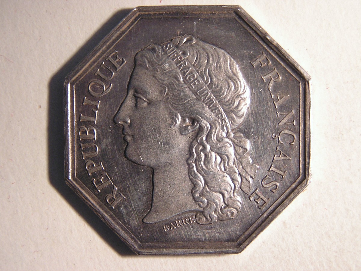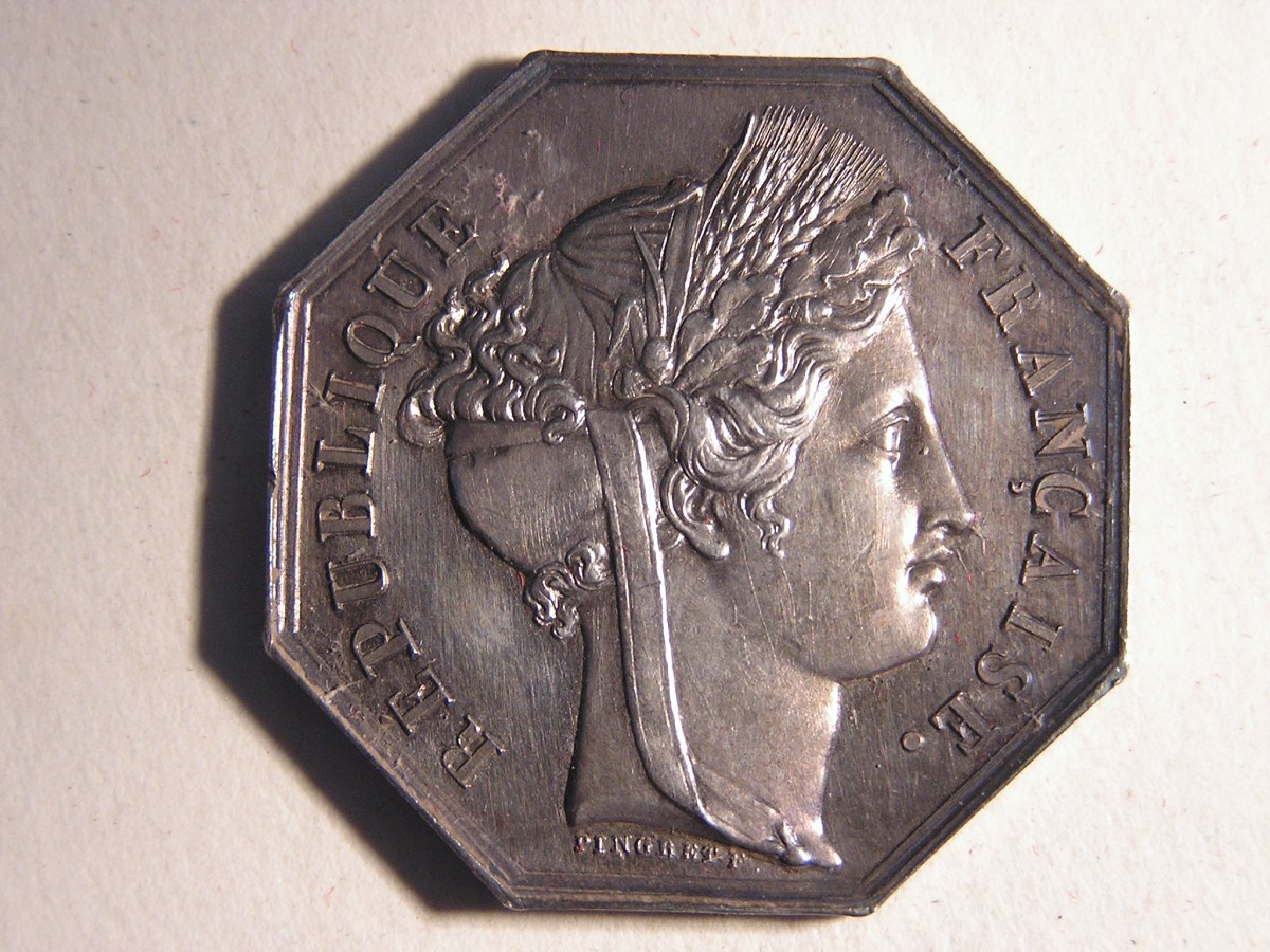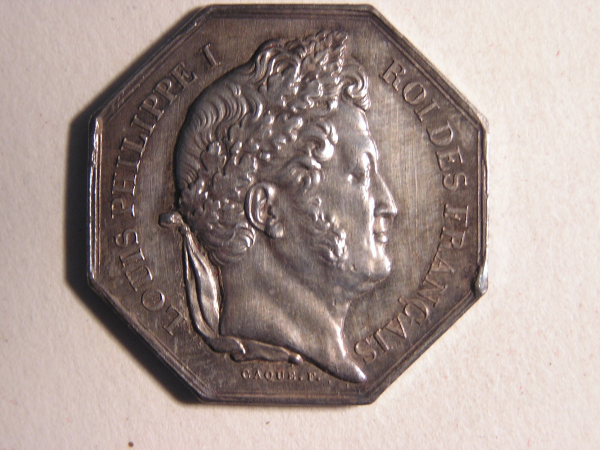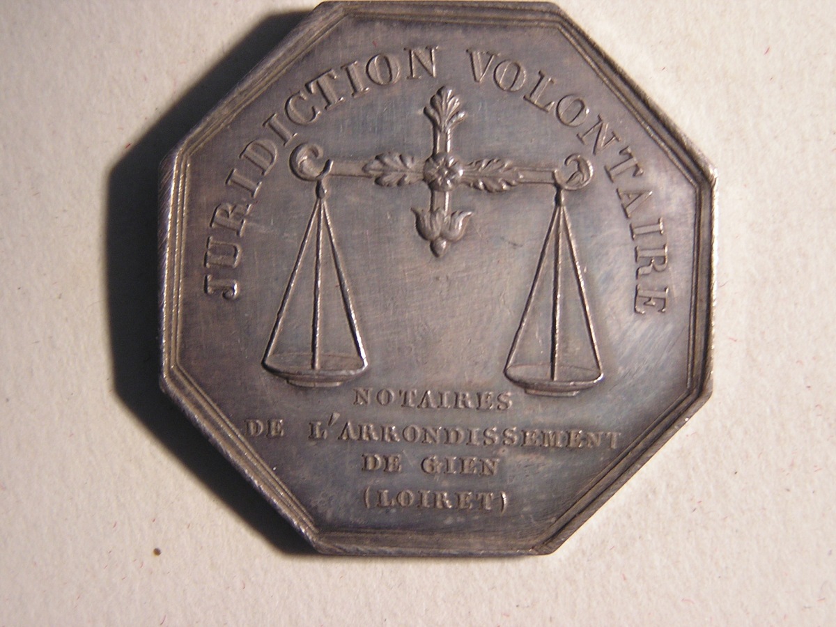 GIEN. 5 Jetons de notaires en argent, de forme octogonale.