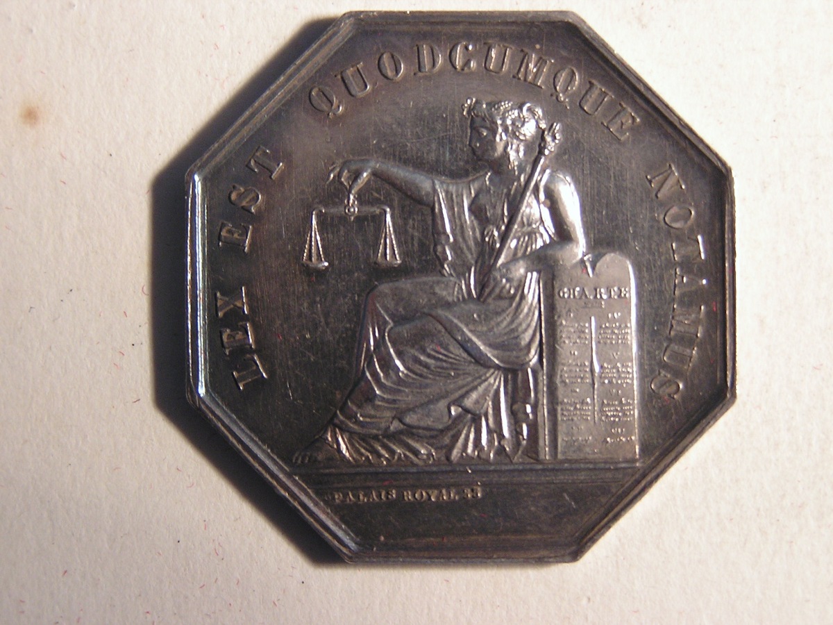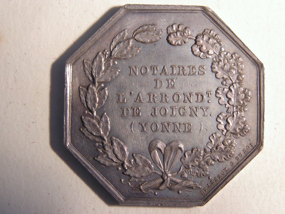 JOIGNY. 1 Jeton de notaire en argent, de forme octogonale.