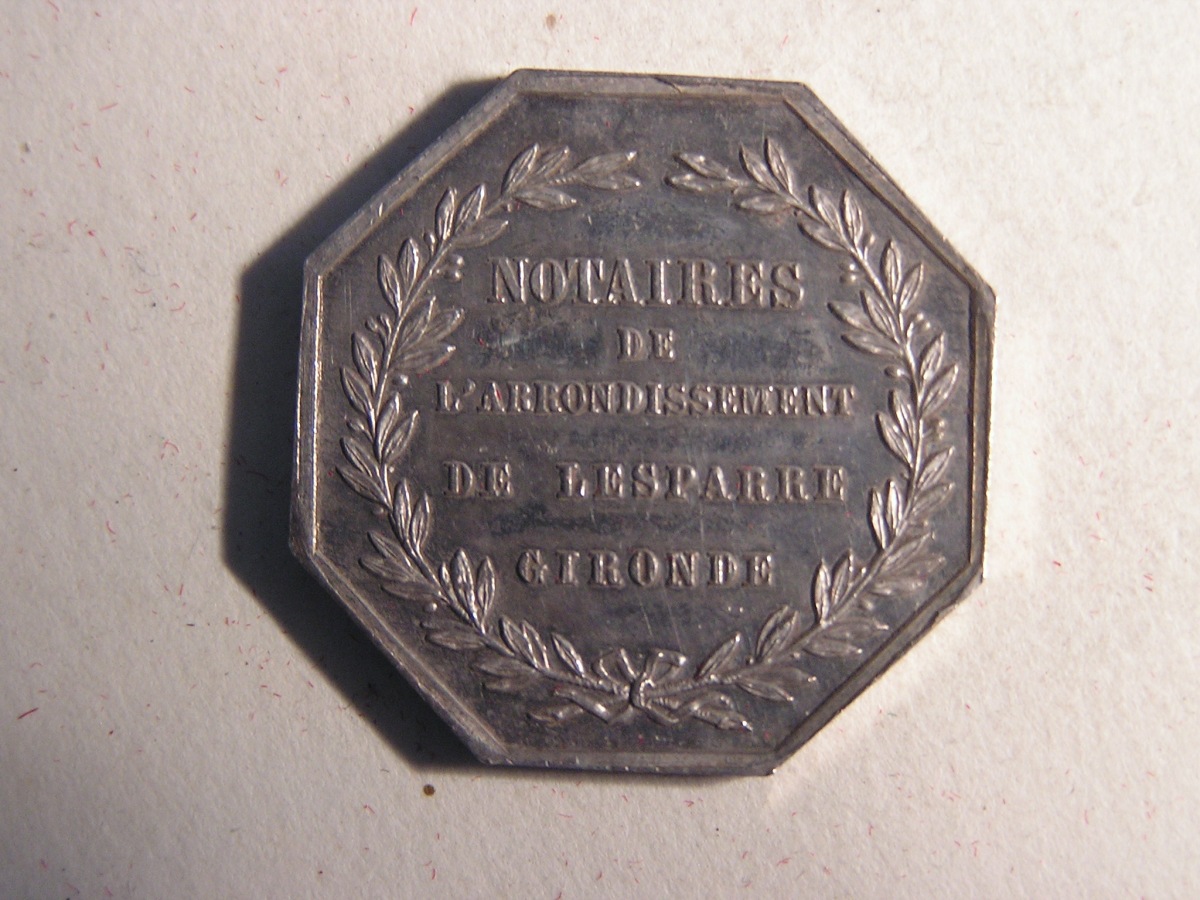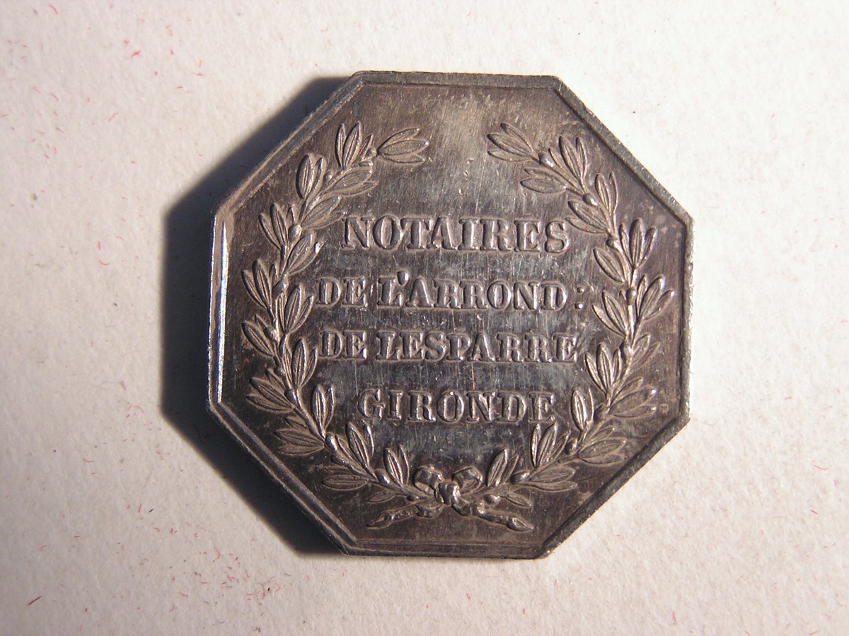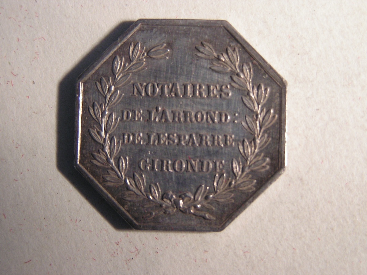 LESPARRE. 3 Jetons de notaires en argent, de forme octogonale.