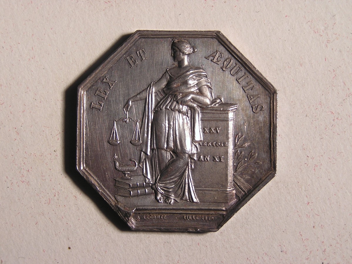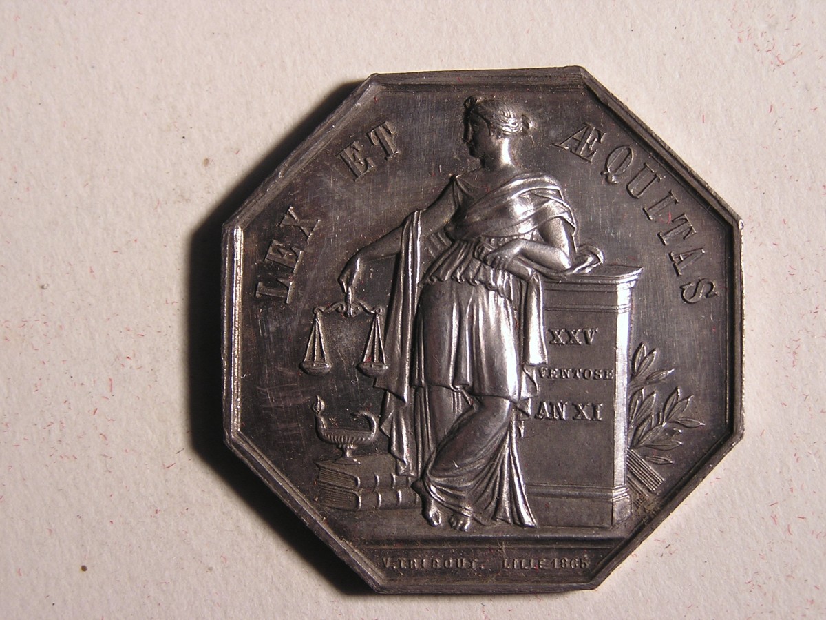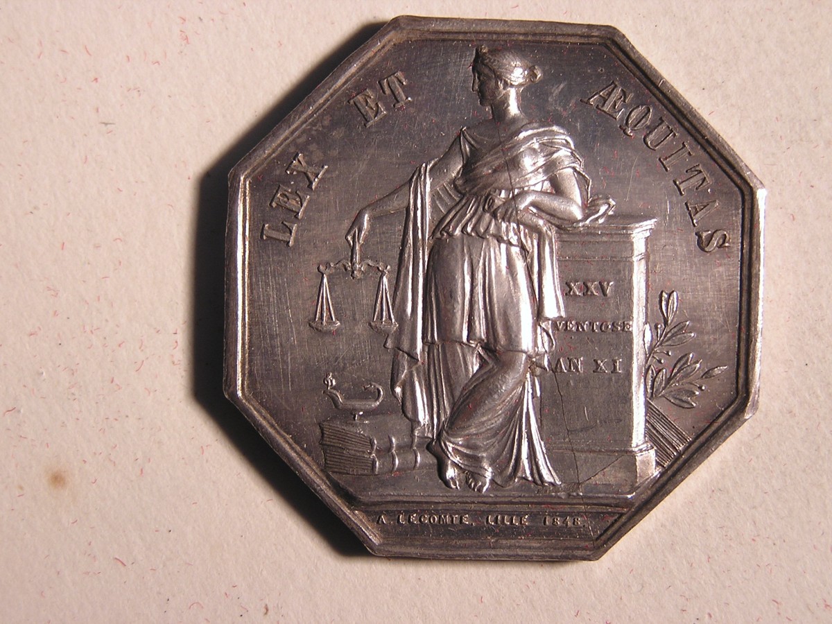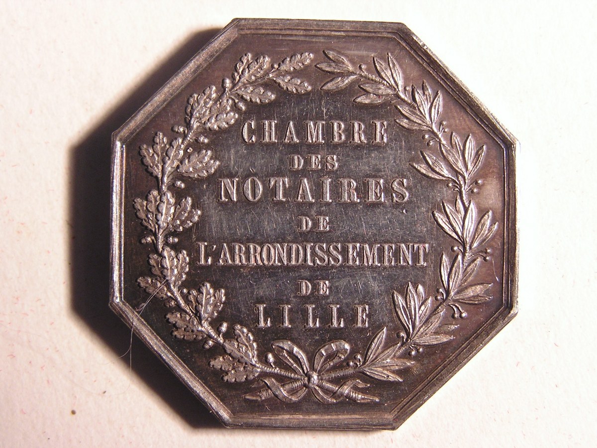 LILLE. 6 Jetons de notaires en argent, de forme octogonale.