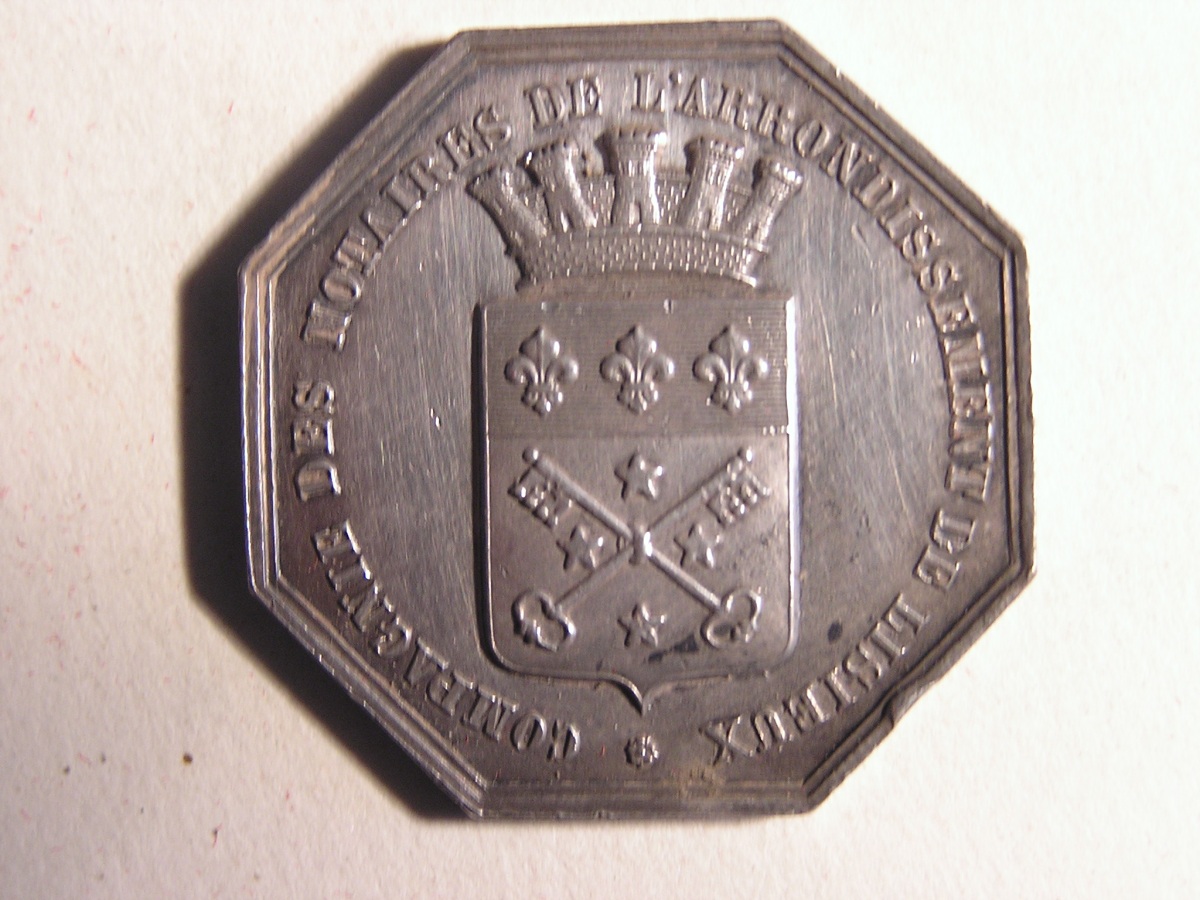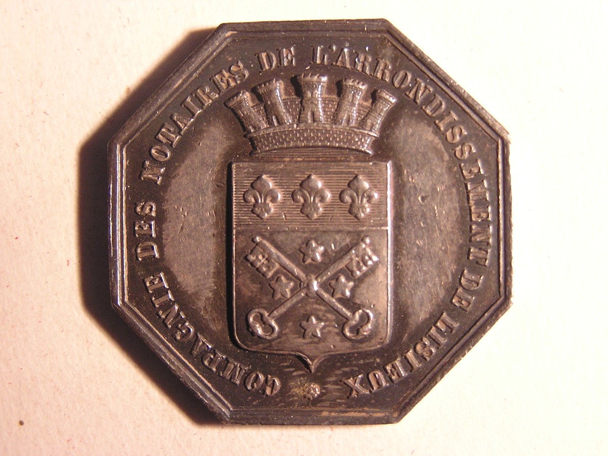 LISIEUX. 2 Jetons de notaires en argent, de forme octogonale.