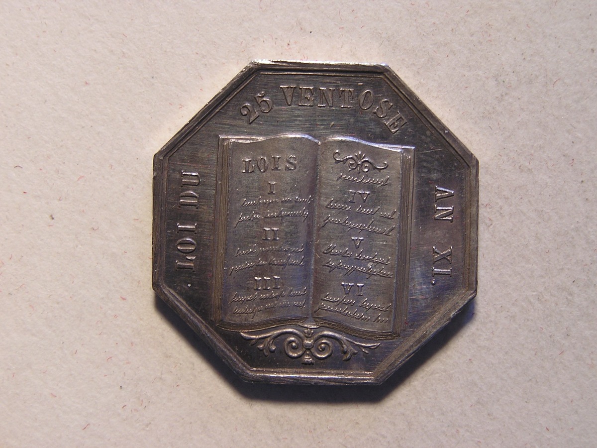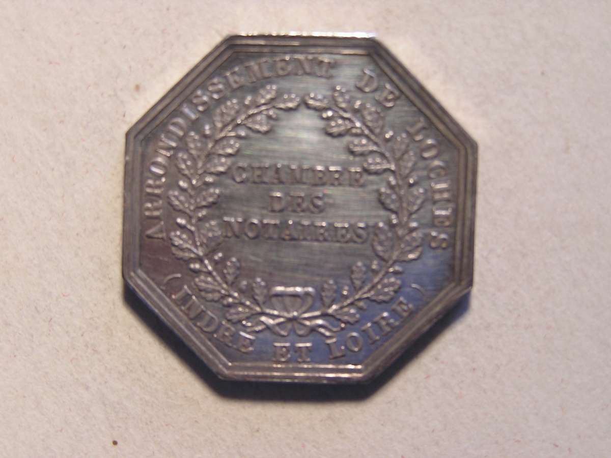 LOCHES. 1 Jeton de notaire en argent, de forme octogonale.