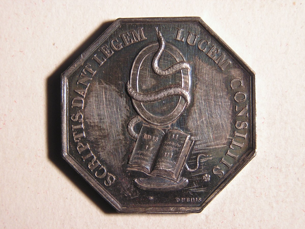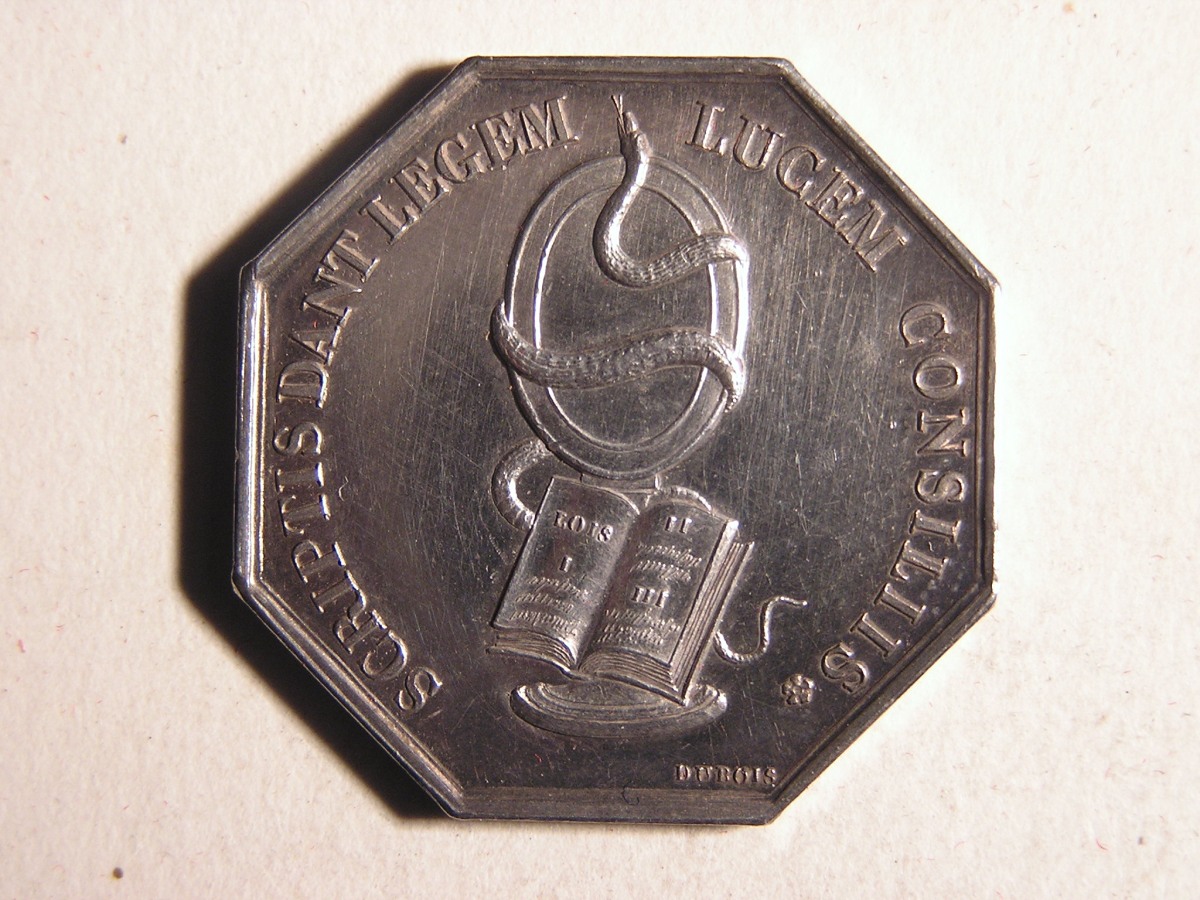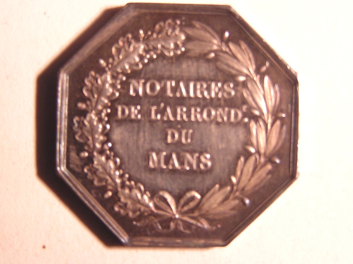 LE MANS. 2 Jetons de notaires en argent, de forme octogonale.