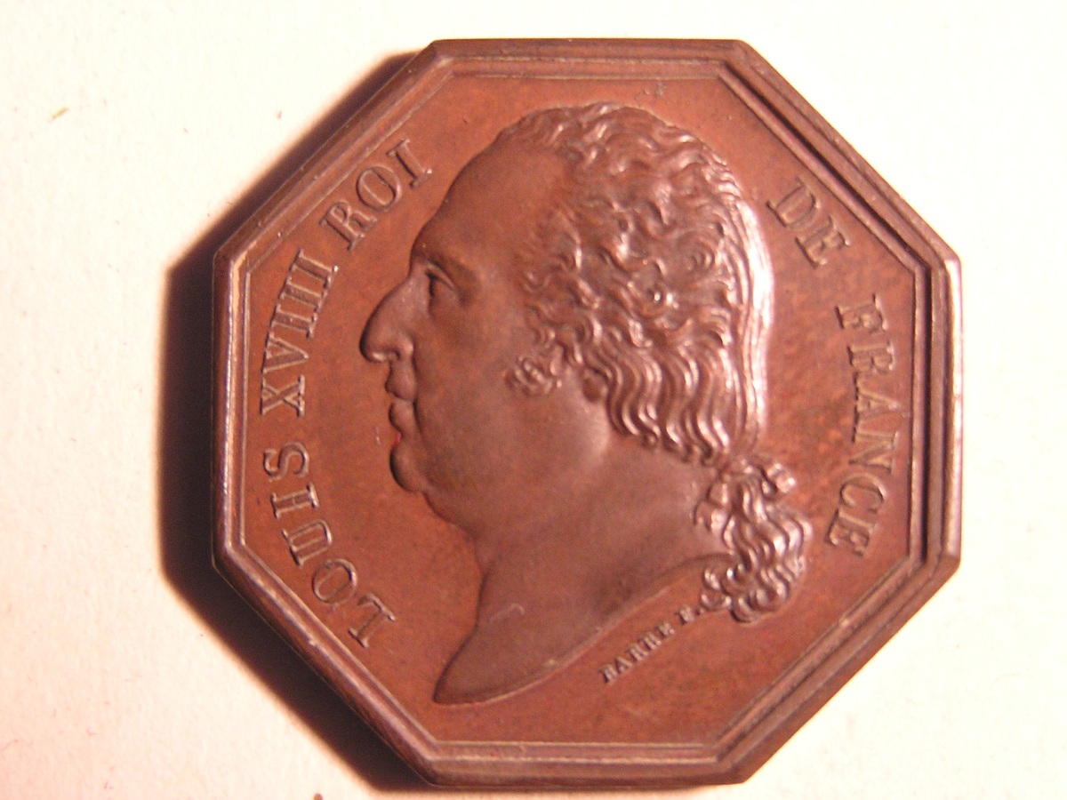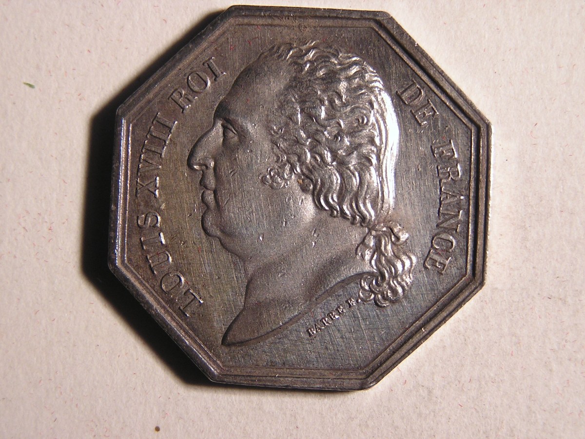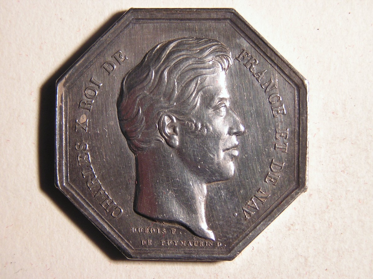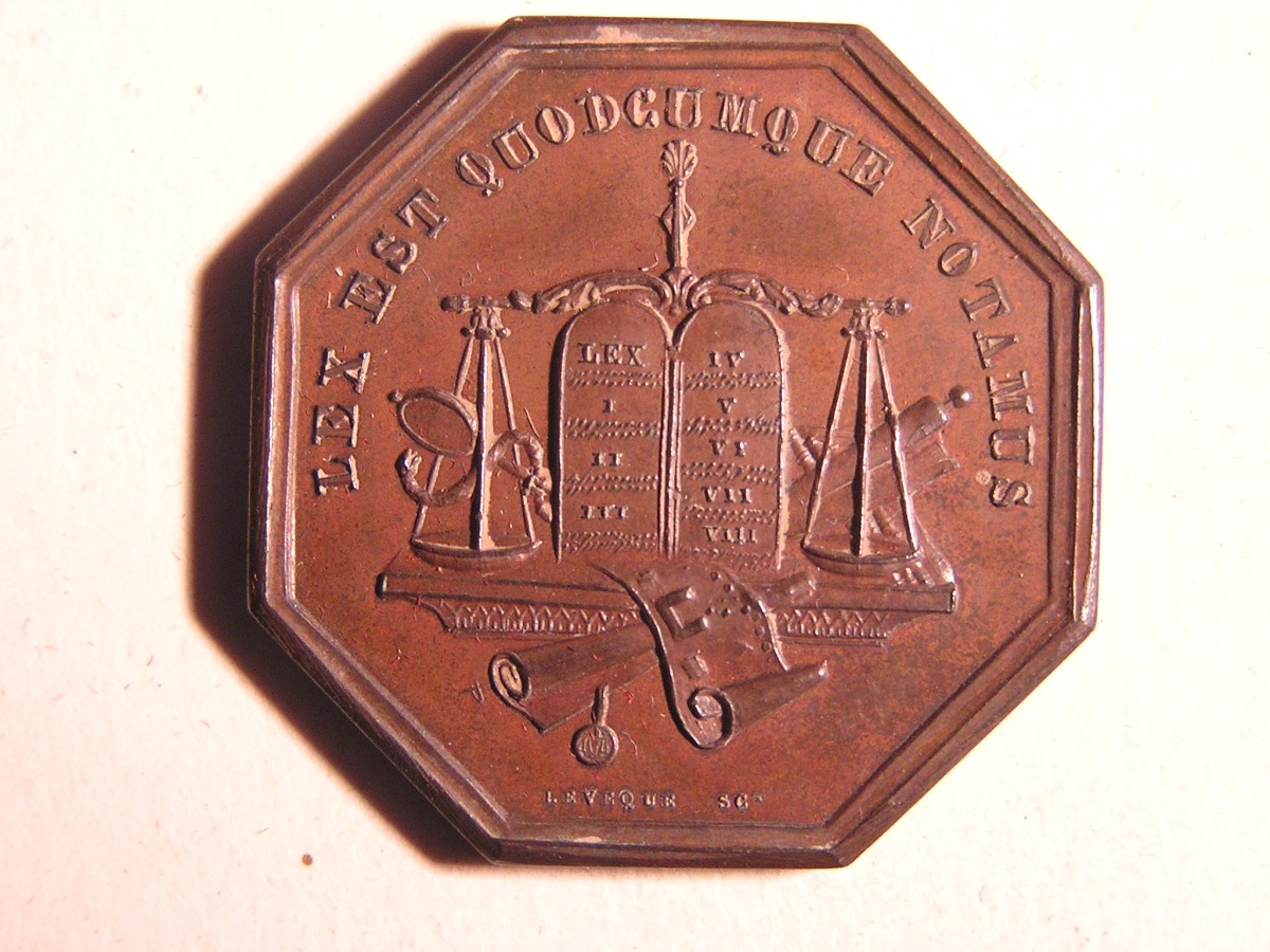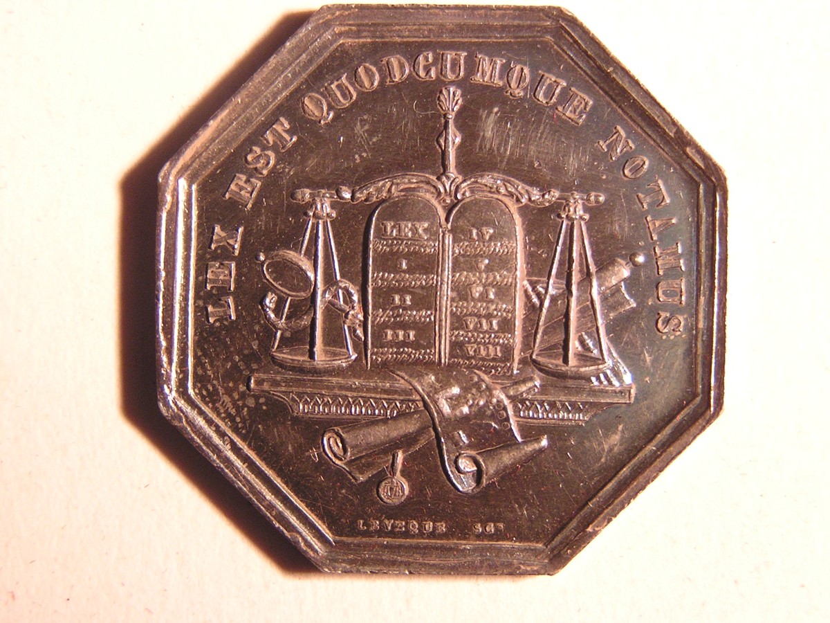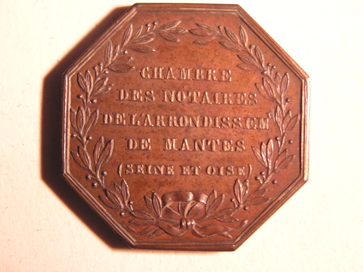 MANTES. 7 Jetons de notaires en argent et cuivre, de forme octogonale.