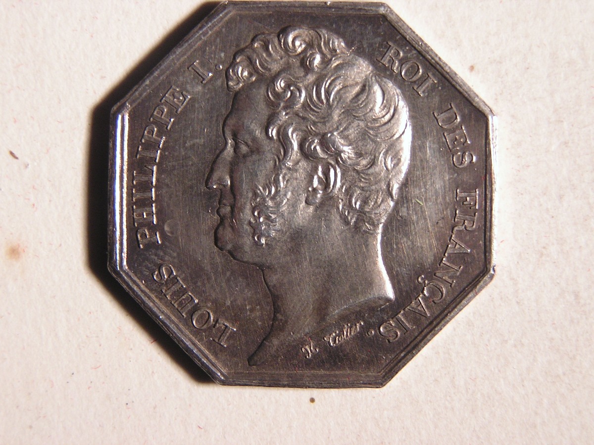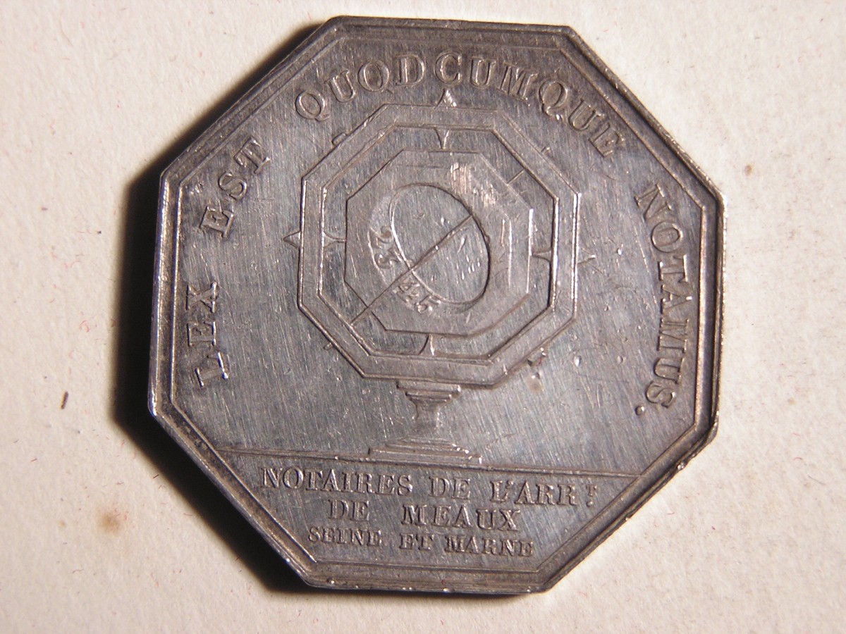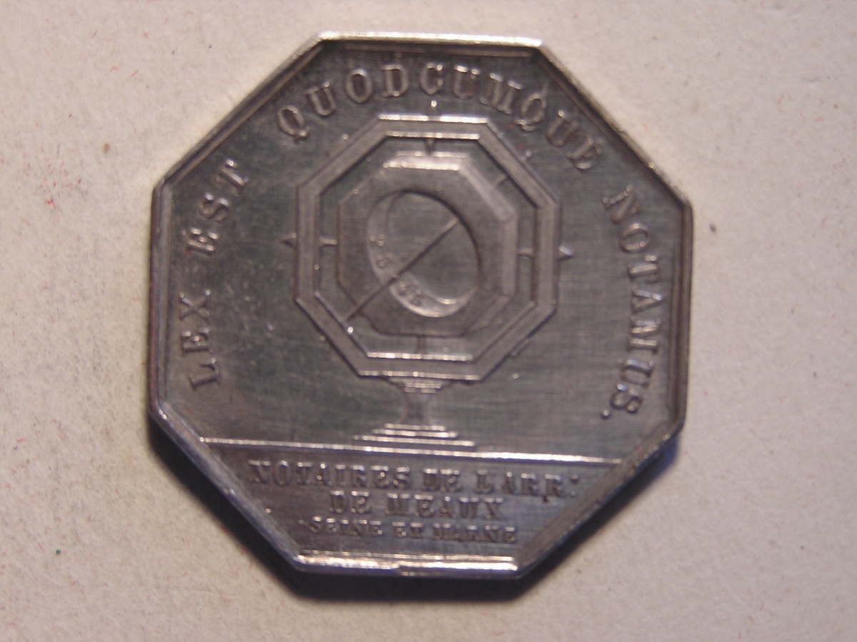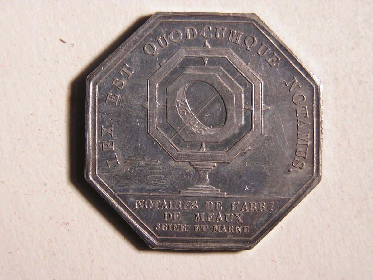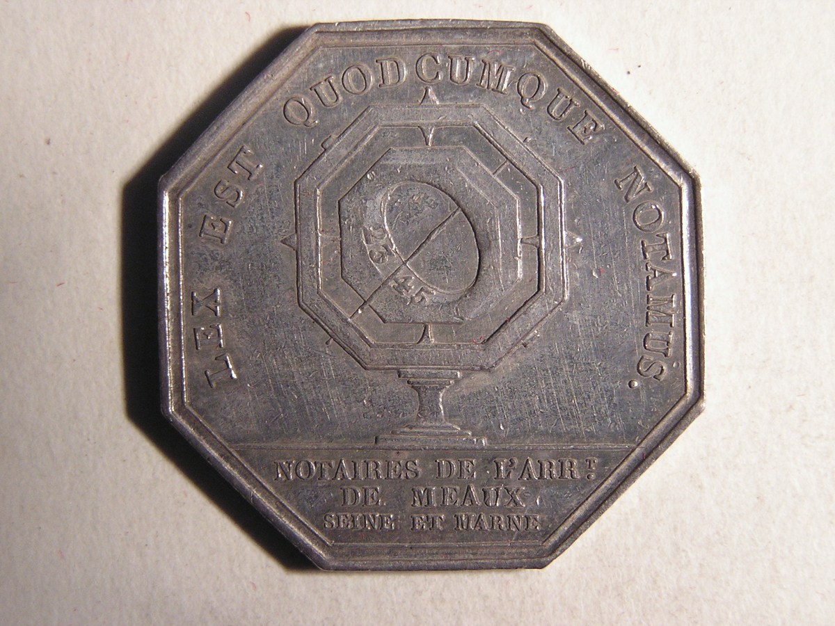 MEAUX. 5 Jetons de notaires en argent, de forme octogonale et ronde.