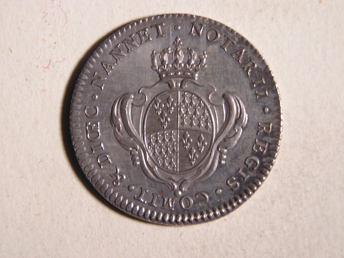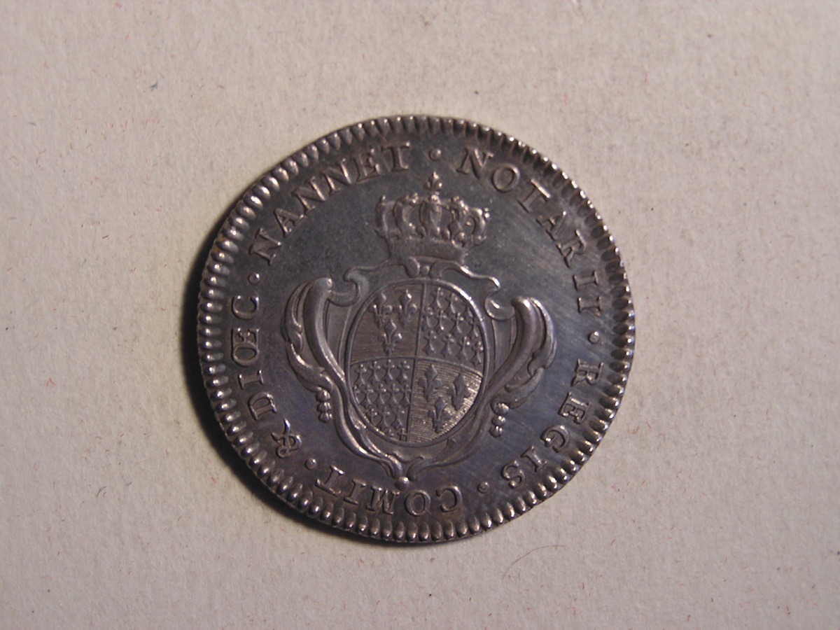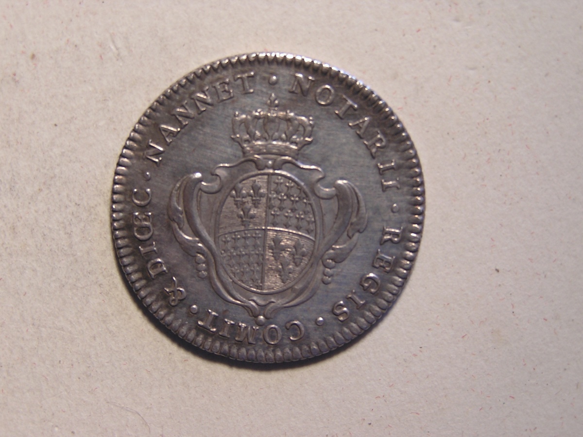 NANTES. 6 Jetons de notaires en argent, de forme ronde.