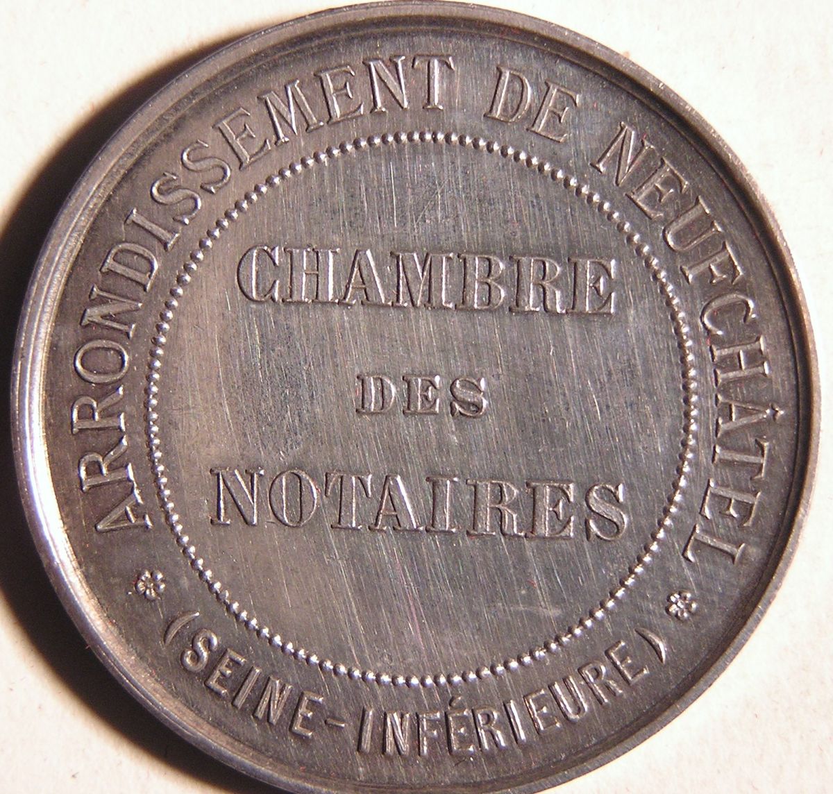 NEUFCHATEL. 4 Jetons de notaires en argent, de forme ronde.