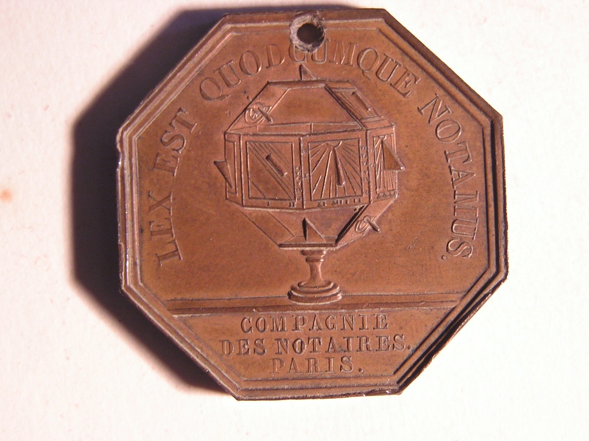 PARIS. 28 Jetons de notaires en argent et cuivre, de forme octogonale, ronde et circulaire.