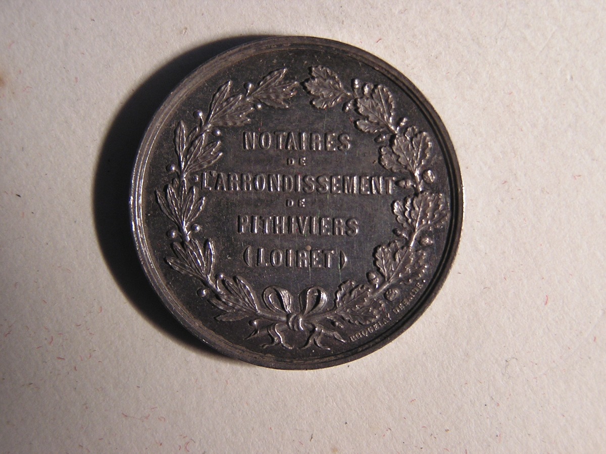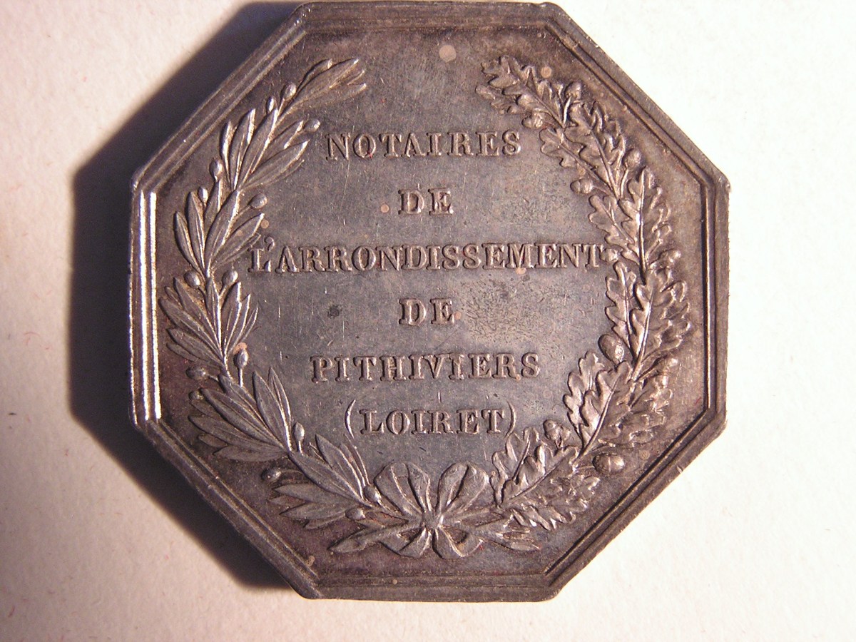 PITHIVIERS. 2 Jetons de notaires en argent, de forme octogonale et ronde.