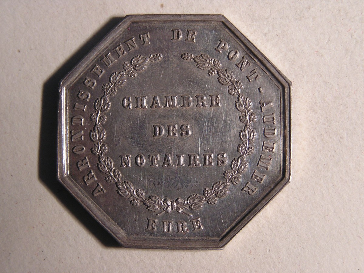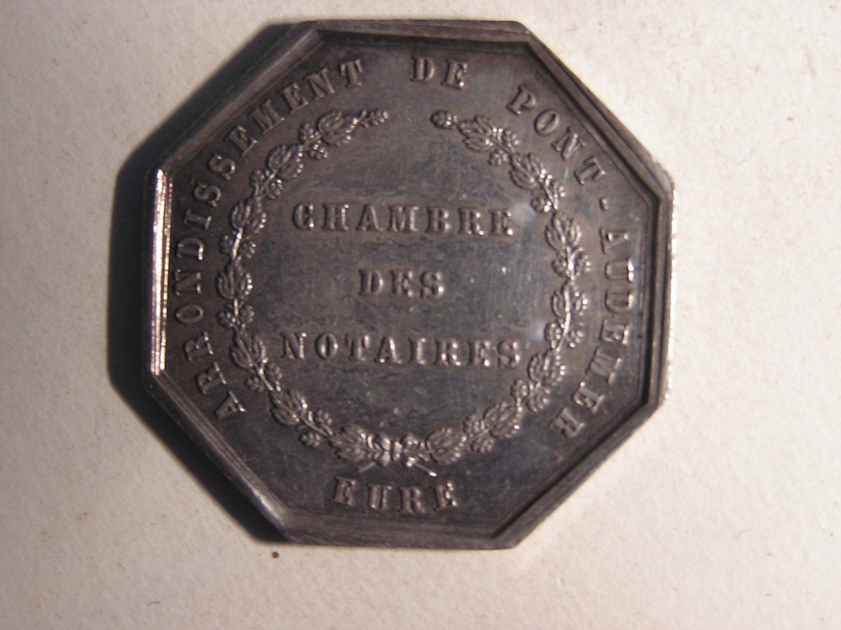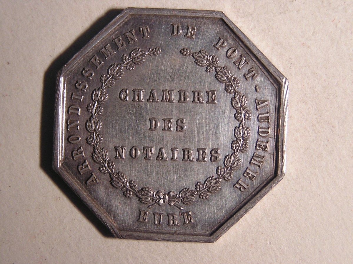 PONT-AUDEMER. 3 Jetons de notaires en argent, de forme octogonale.