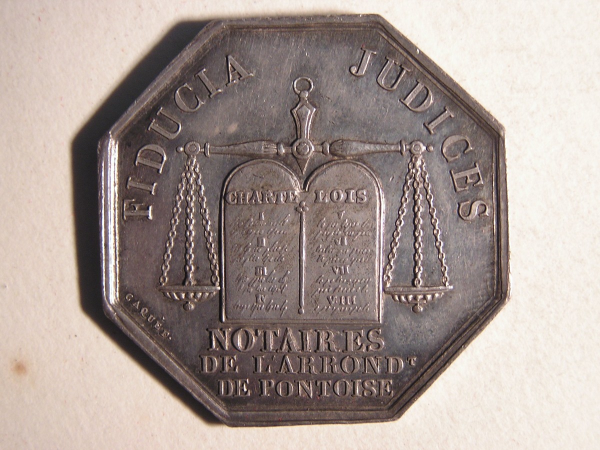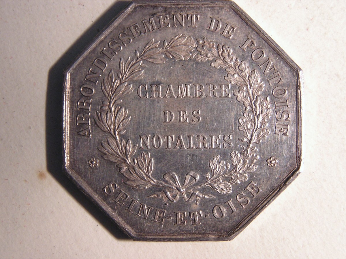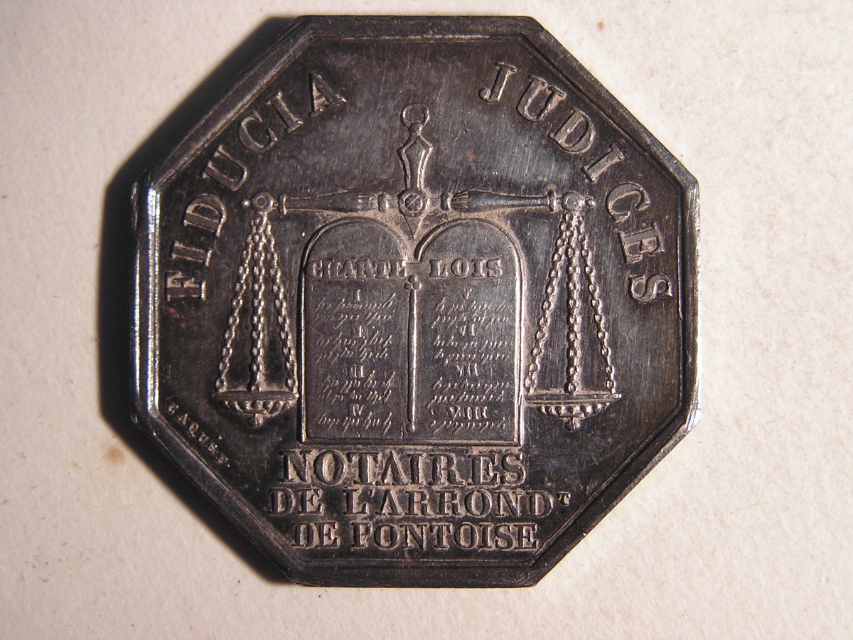 PONTOISE. 7 Jetons de notaires en argent, de forme octogonale.