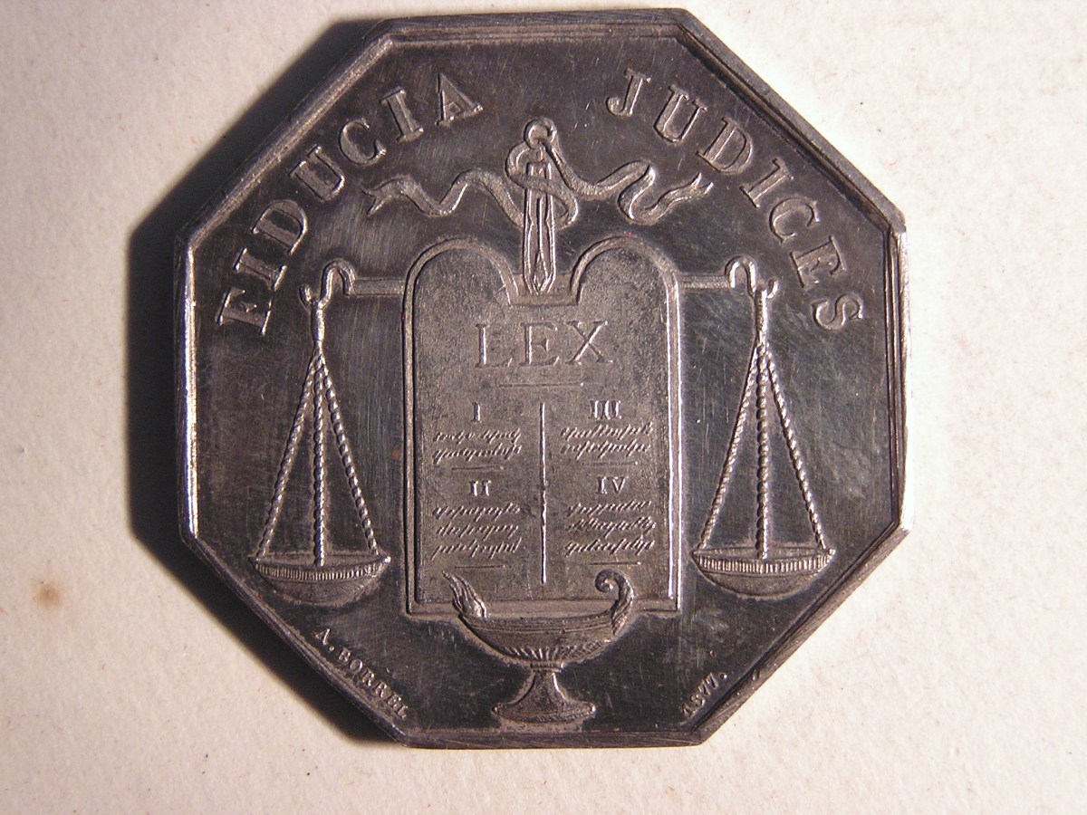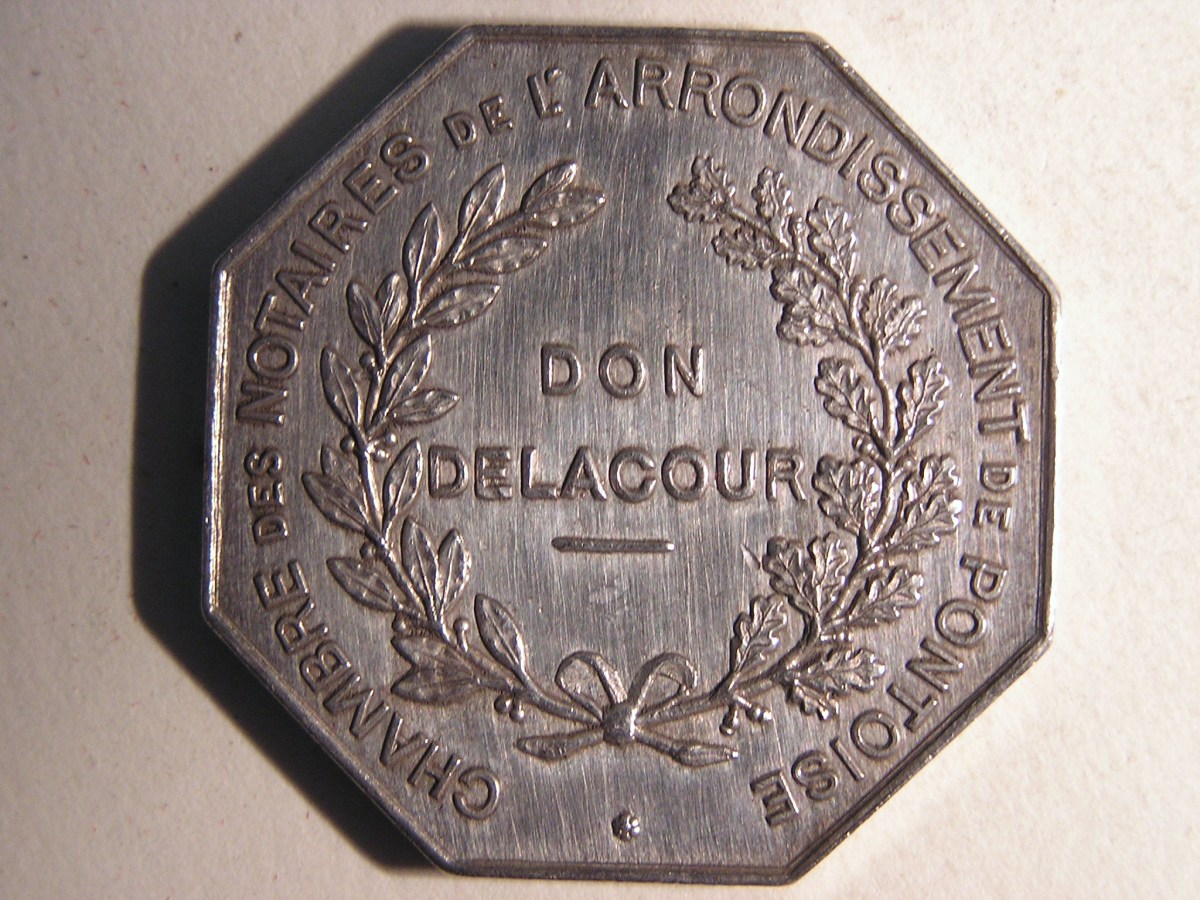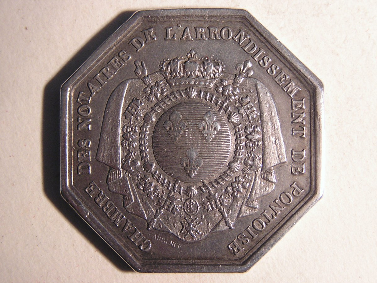PONTOISE. 7 Jetons de notaires en argent, de forme octogonale.
