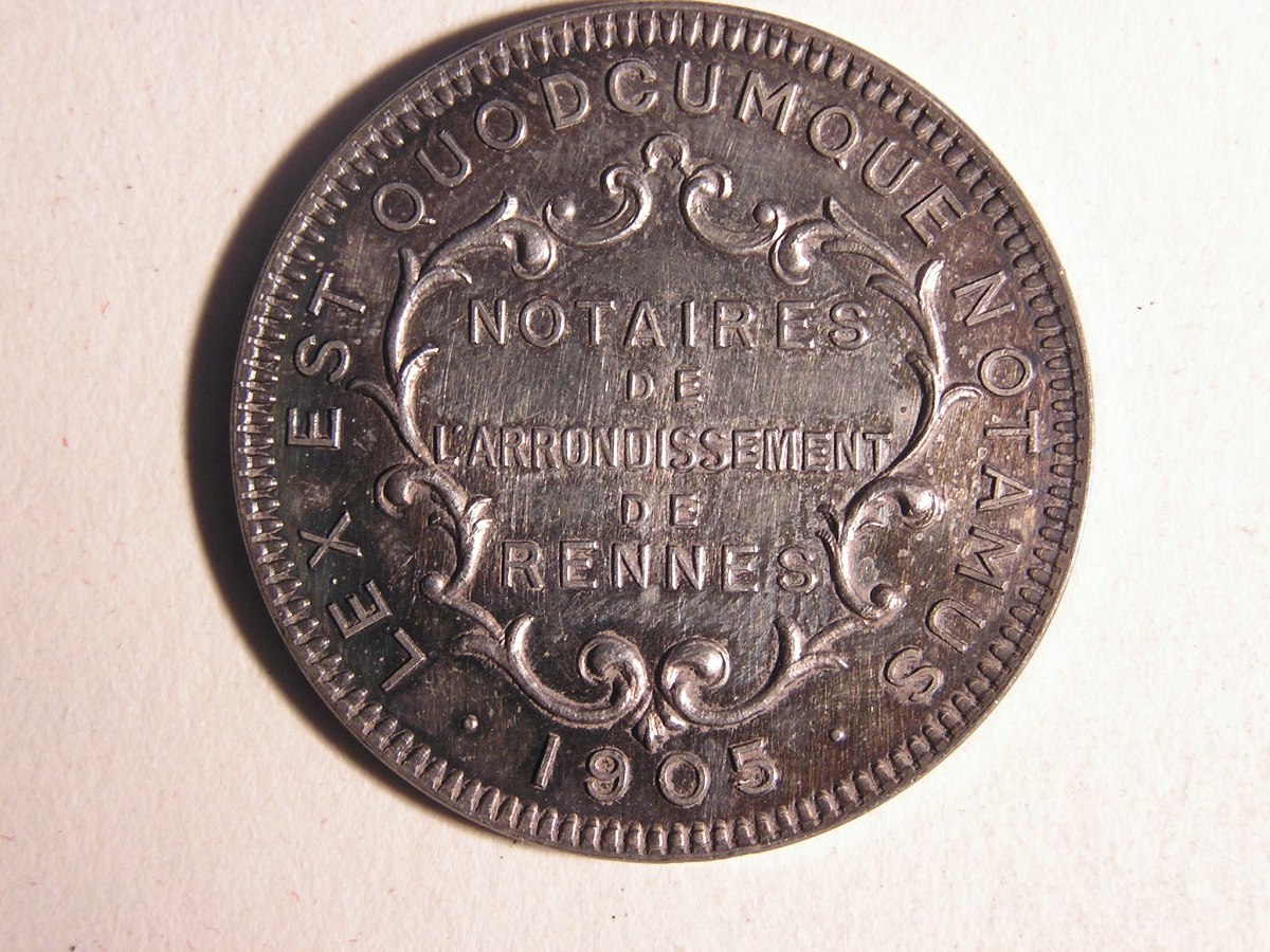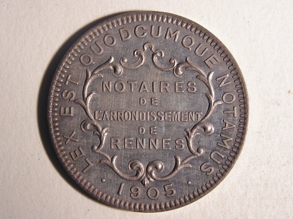 RENNES. 2 Jetons de notaires en argent, de forme ronde.