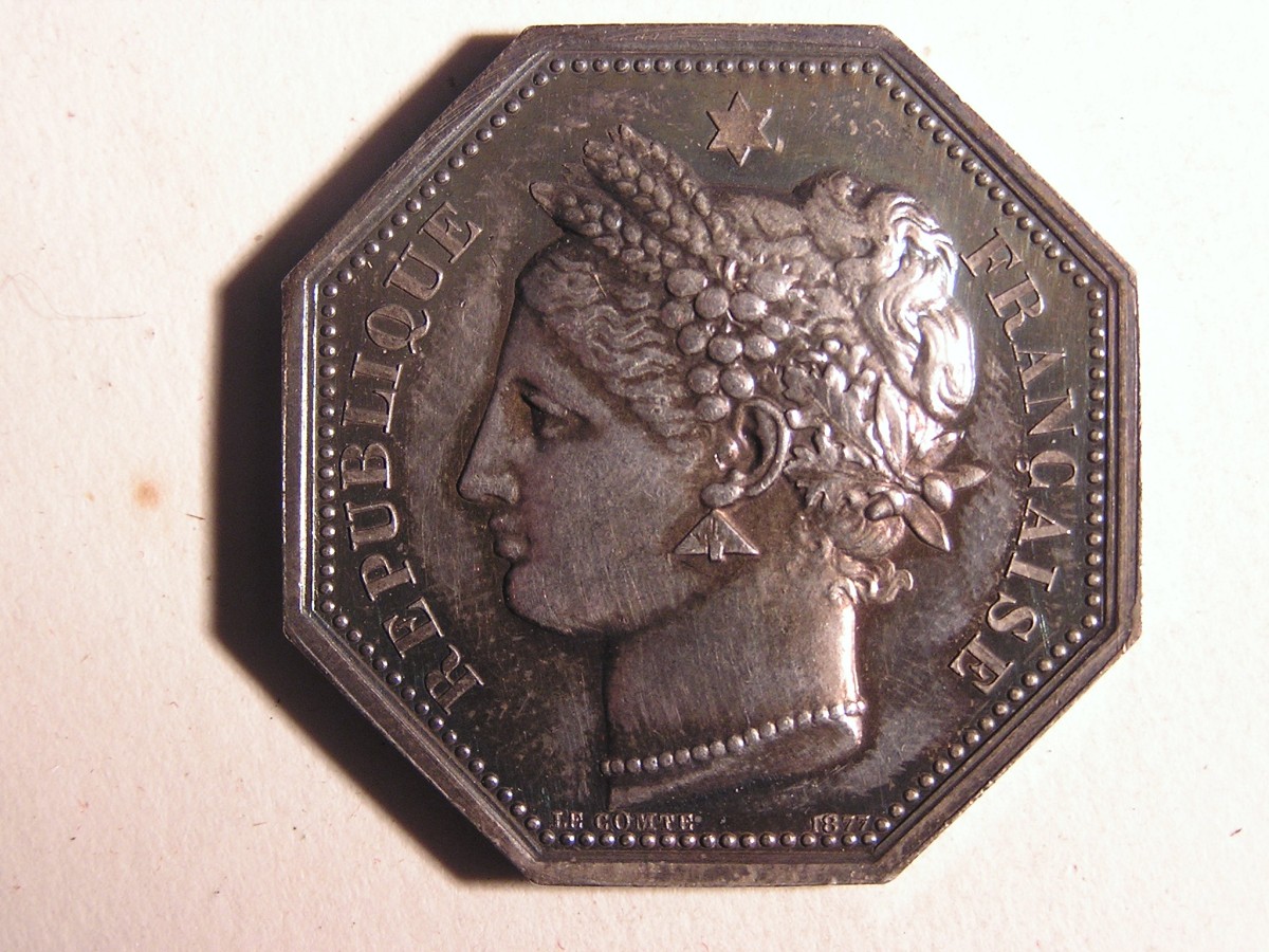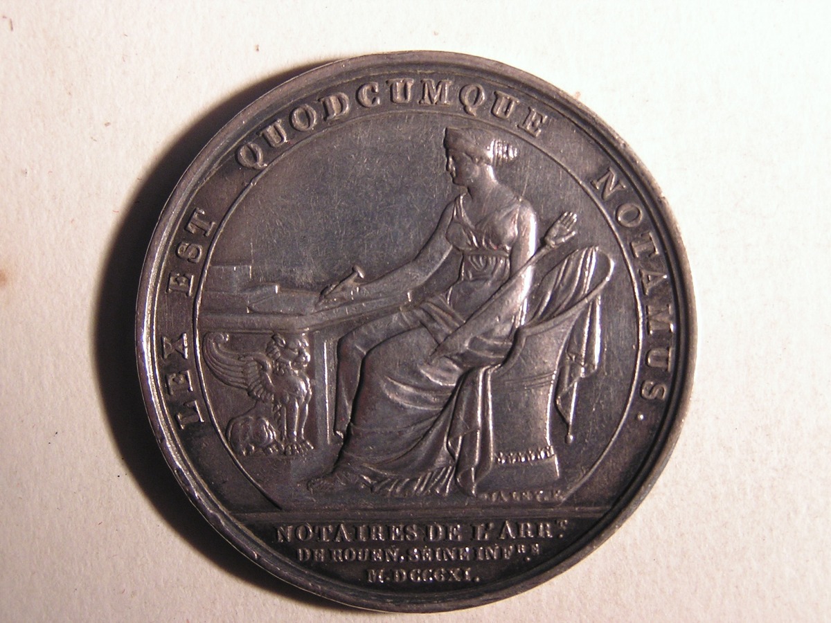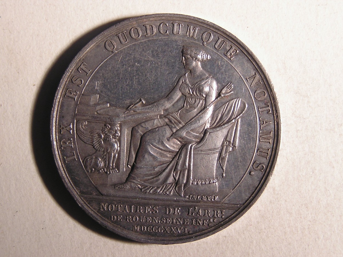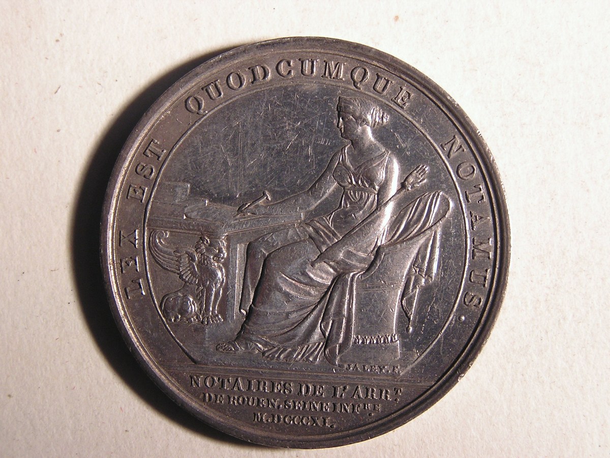 ROUEN. 7 Jetons de notaires en argent, de forme octogonale et ronde.