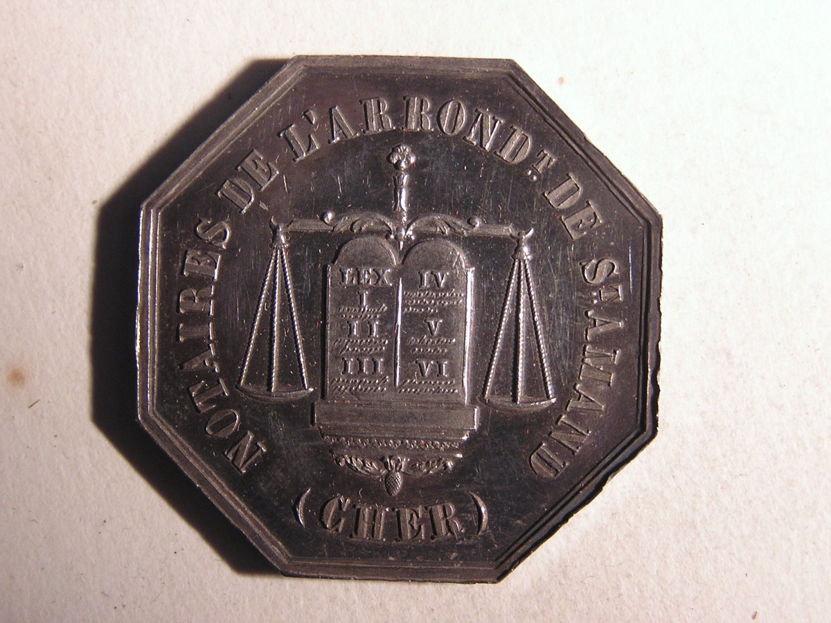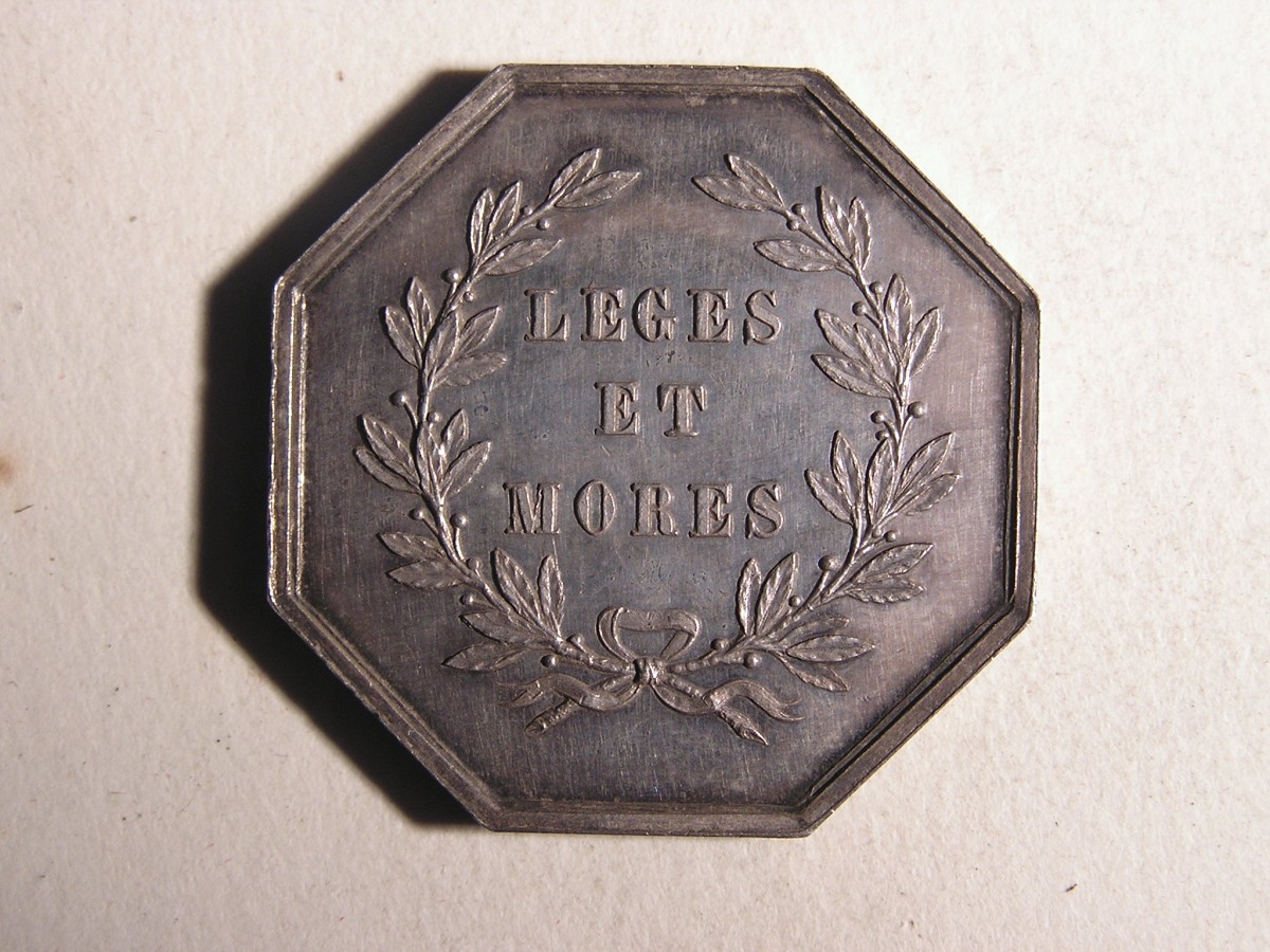 SAINT AMAND. 1 Jeton de notaire en argent, de forme octogonale.