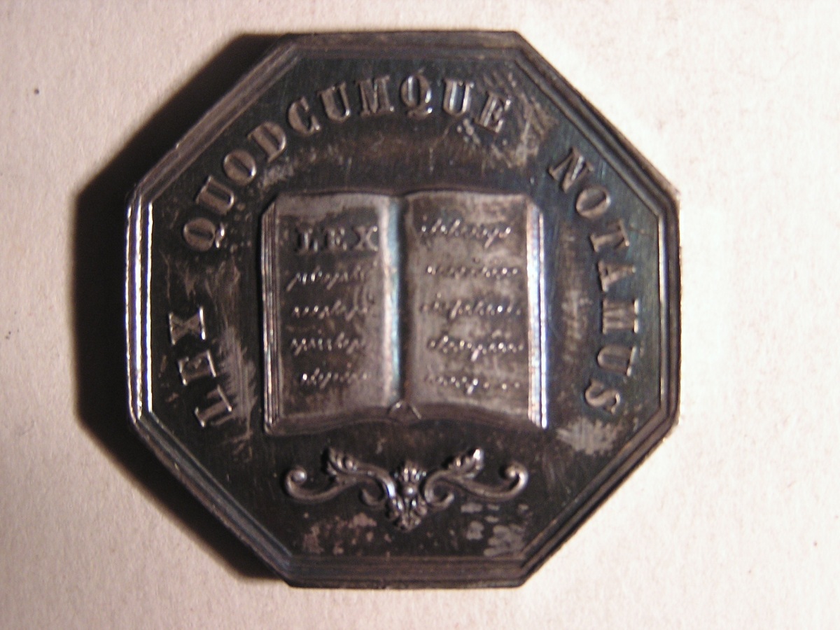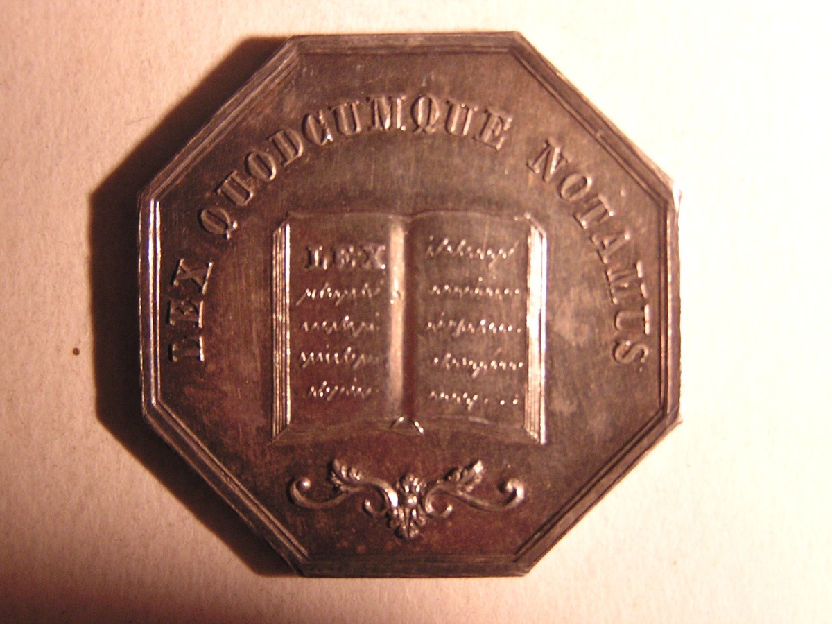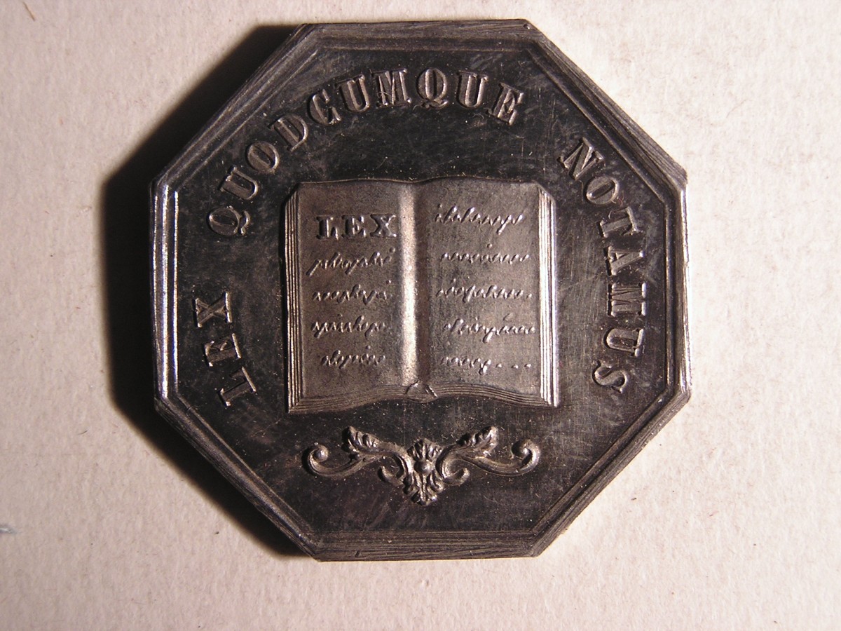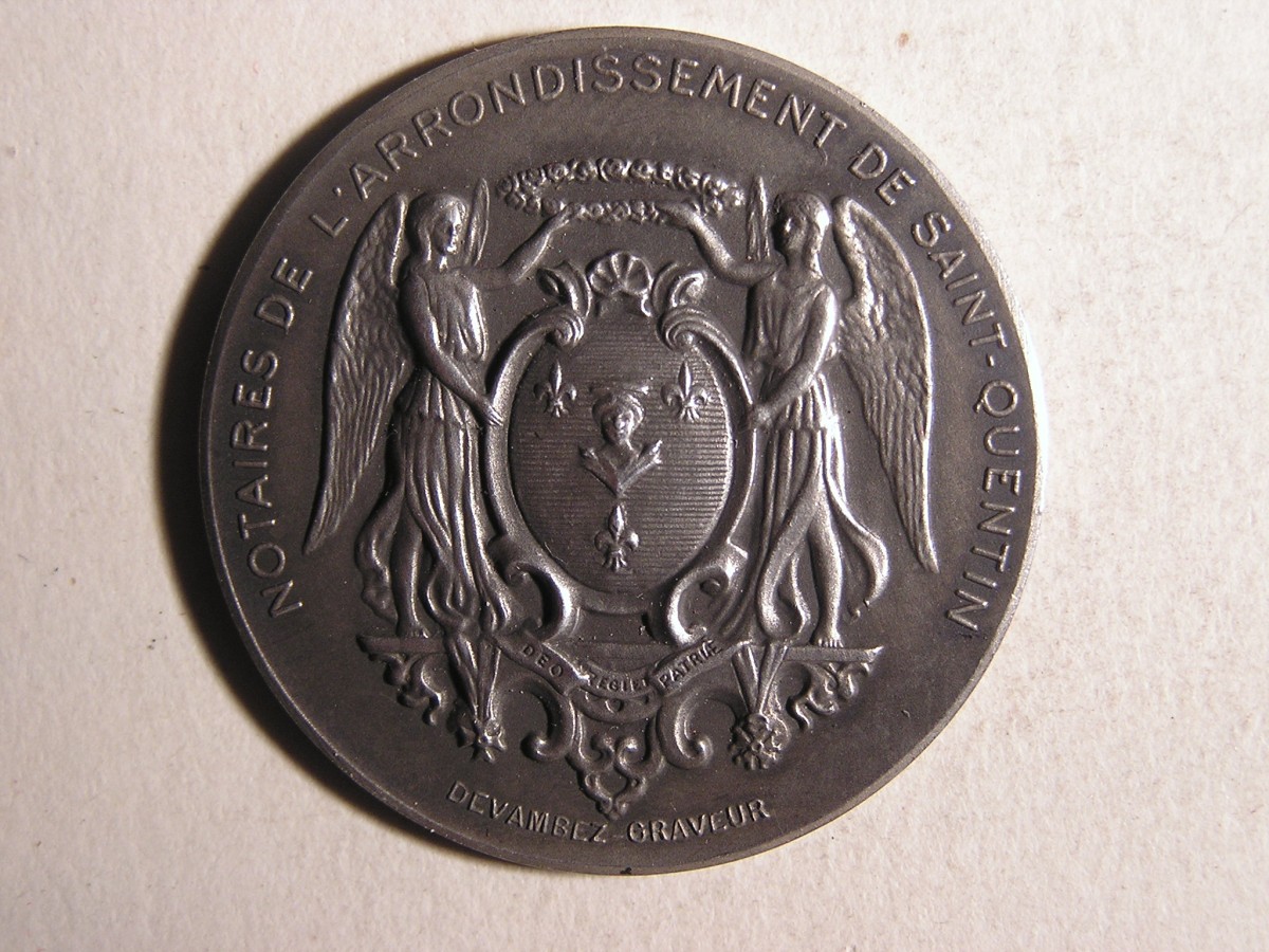 SAINT QUENTIN. 5 Jetons de notaires en argent, de forme octogonale et ronde.