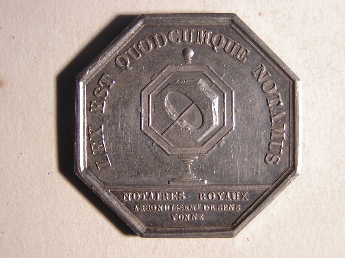 SENS. 2 Jetons de notaires en argent, de forme octogonale.
