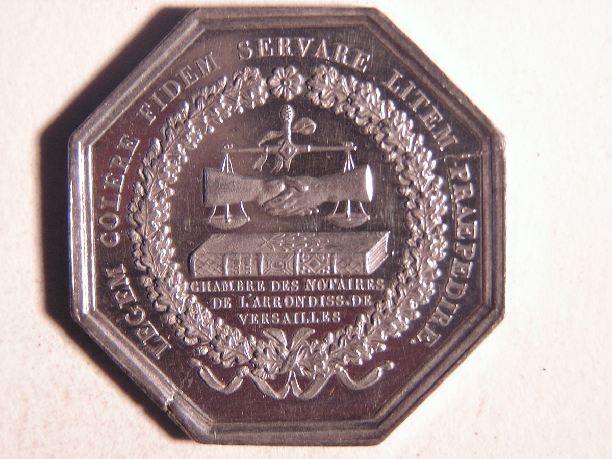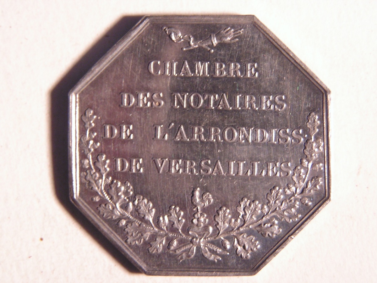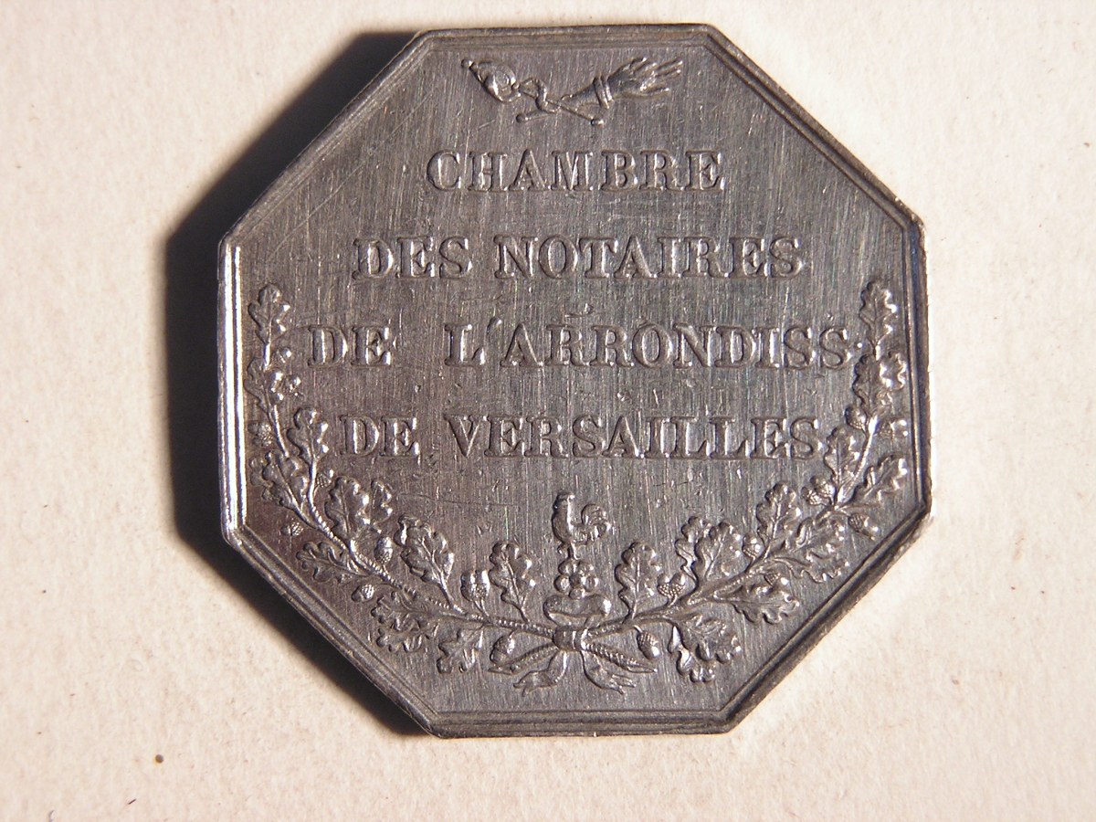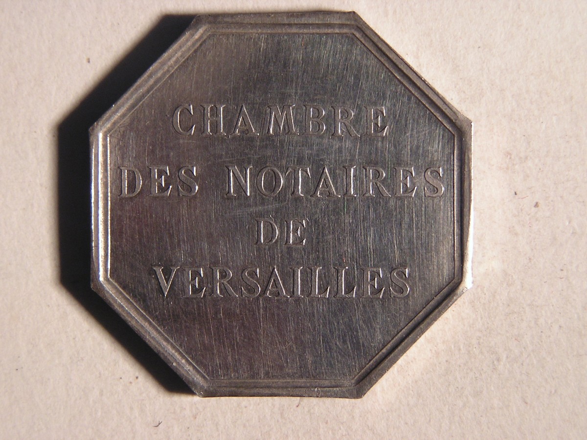VERSAILLES. 8 Jetons de notaires en argent, de forme octogonale et ronde.