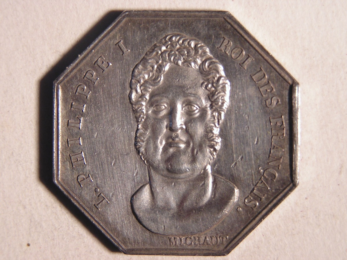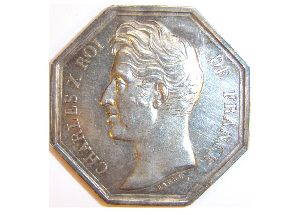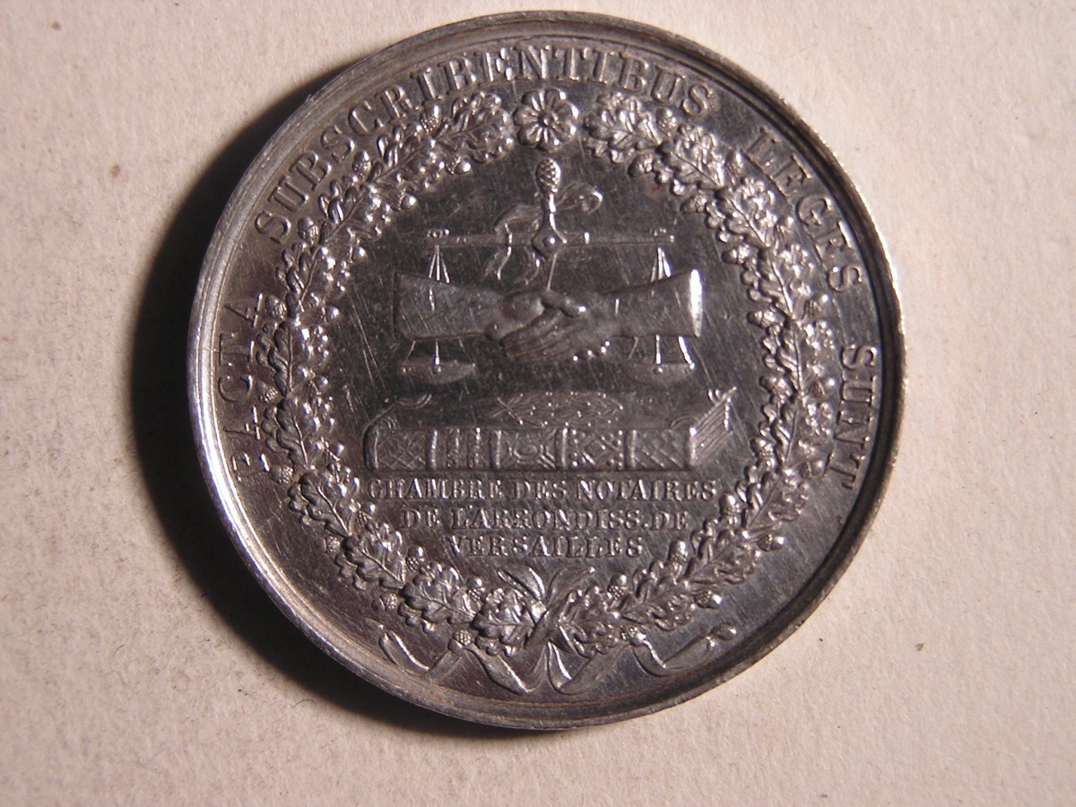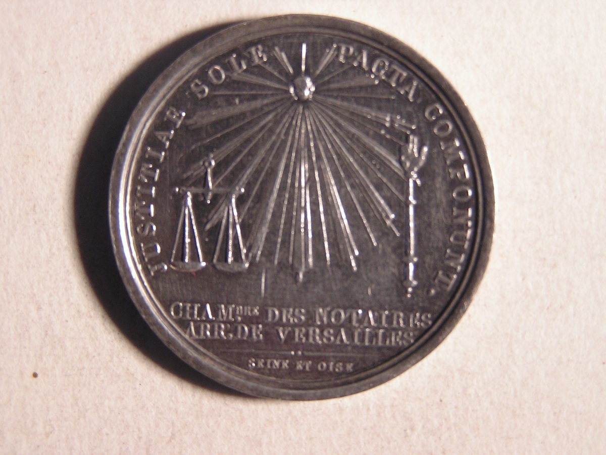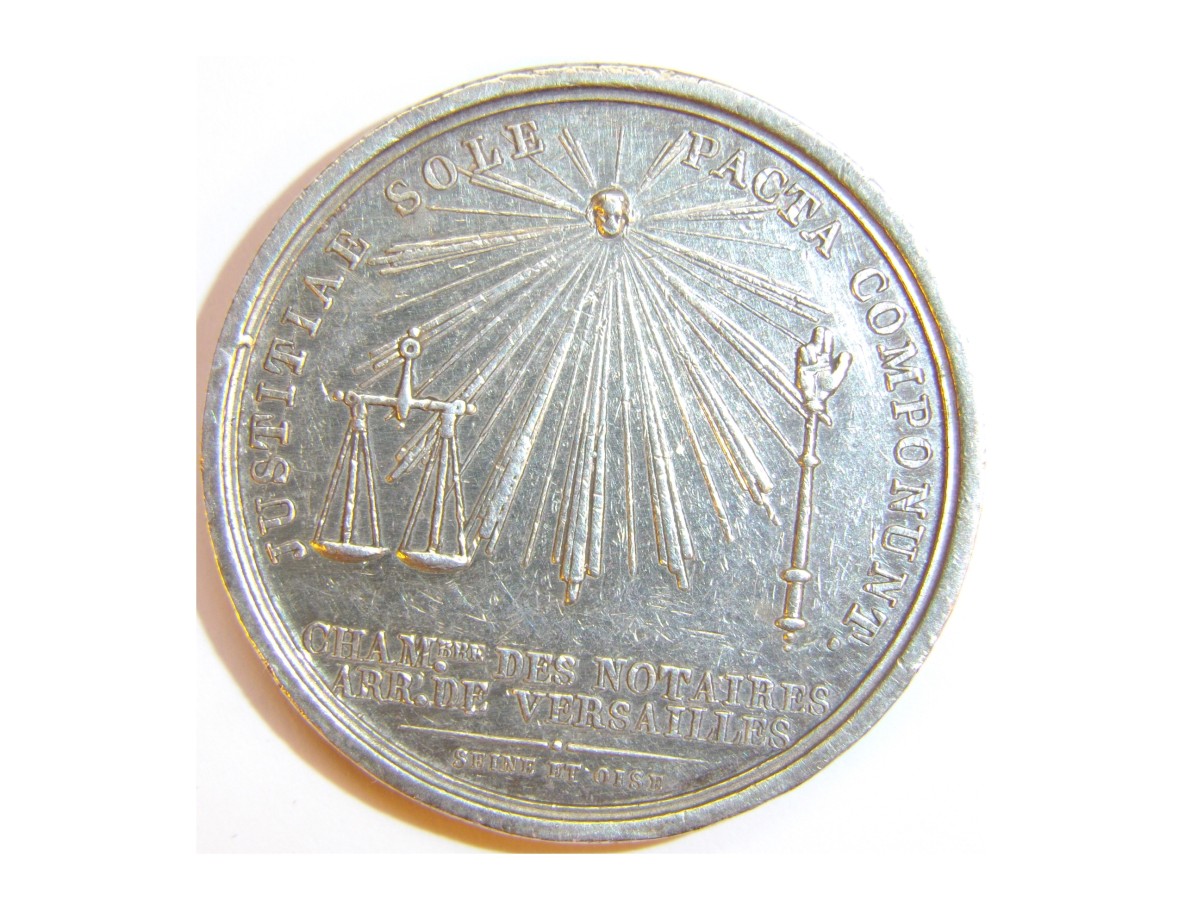 VERSAILLES. 8 Jetons de notaires en argent, de forme octogonale et ronde.